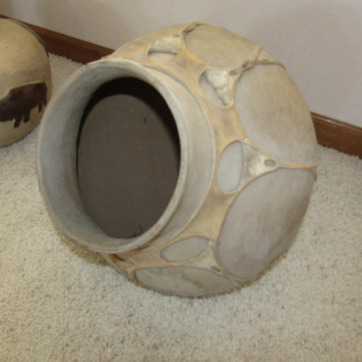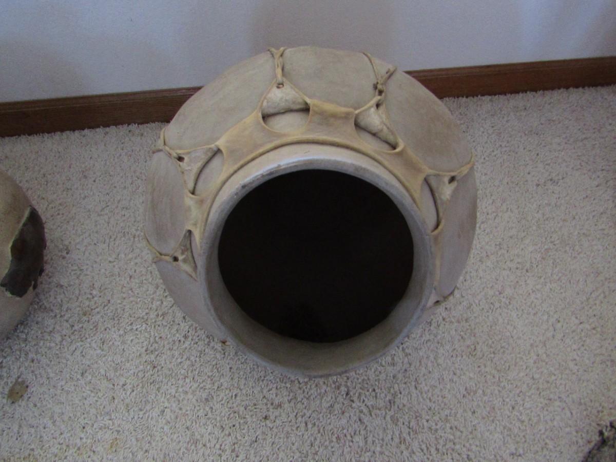 LOT 4 LARGE CLAY POT WRAPPED IN RAWHIDE (E)