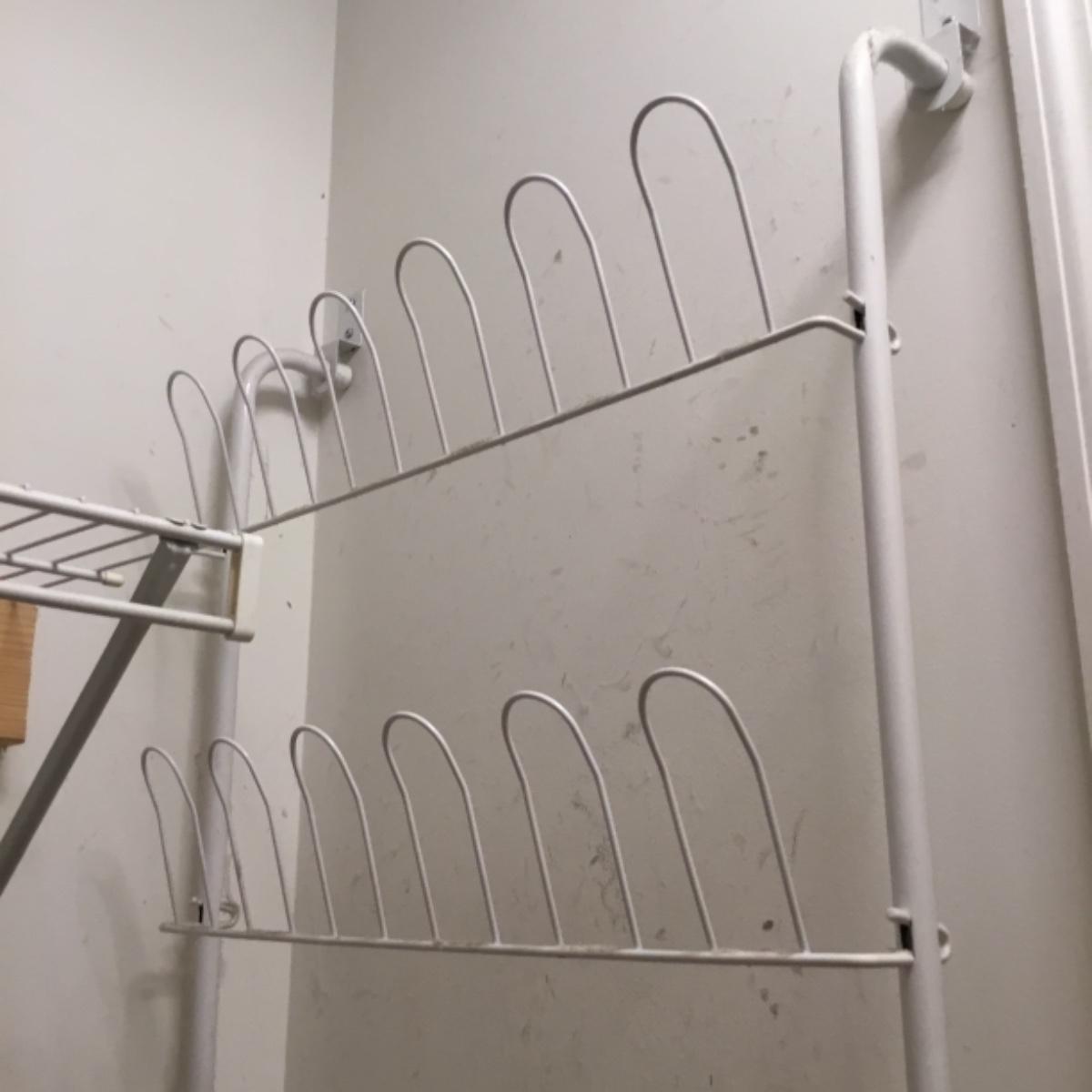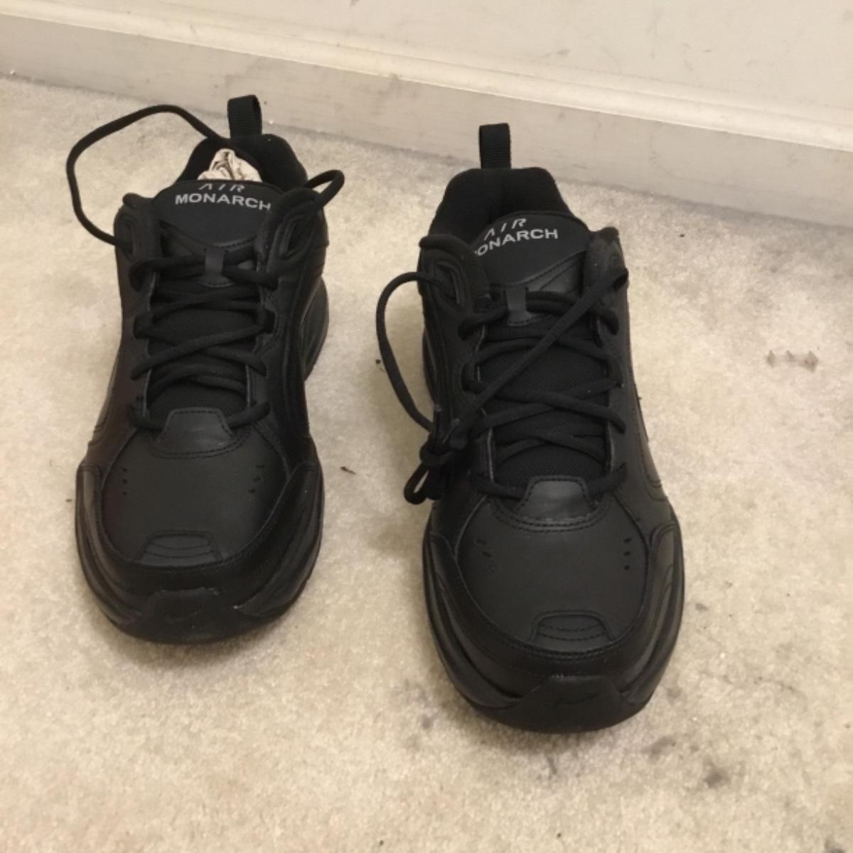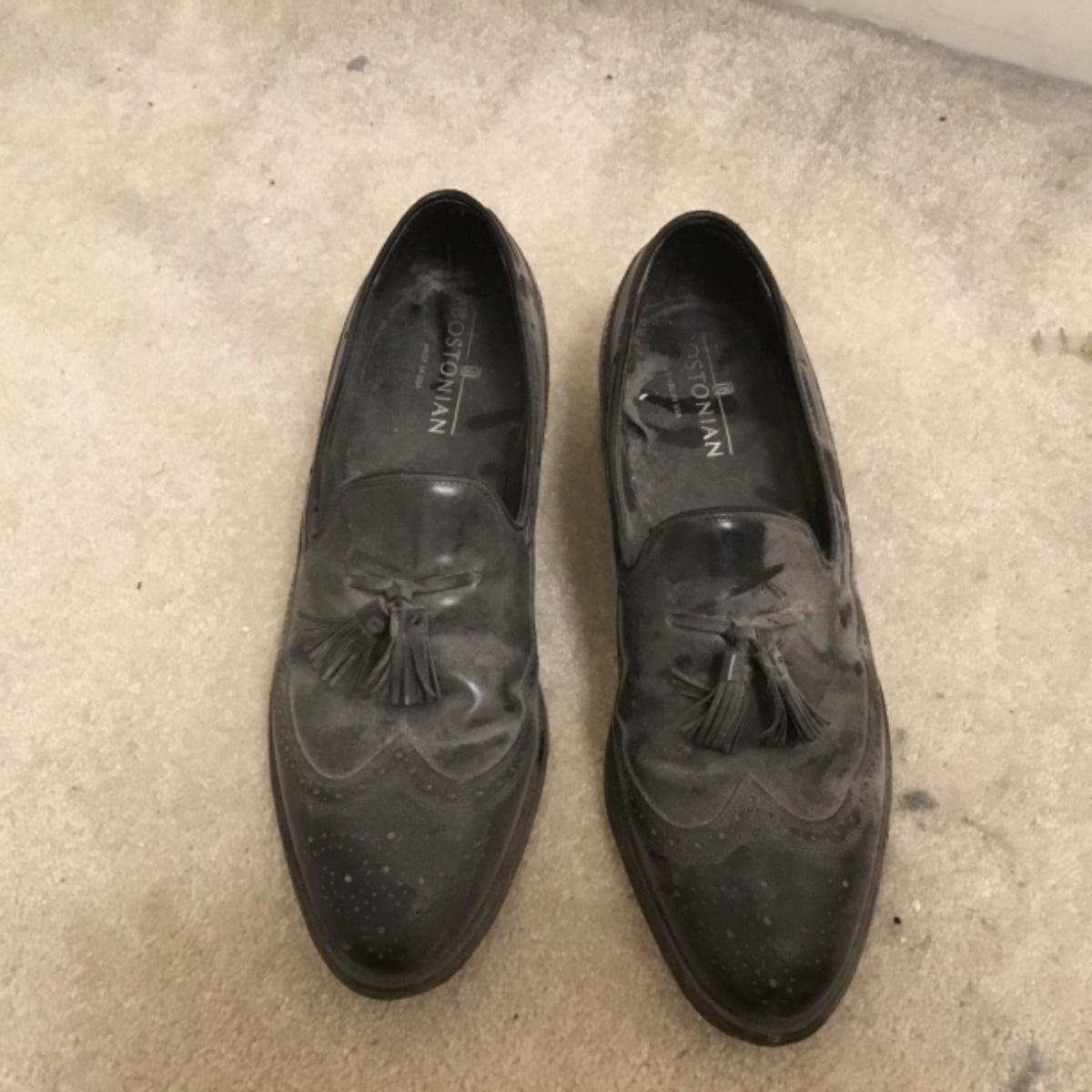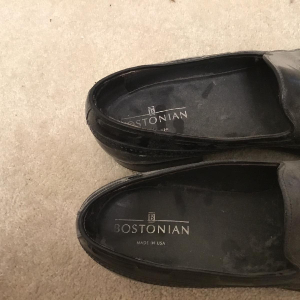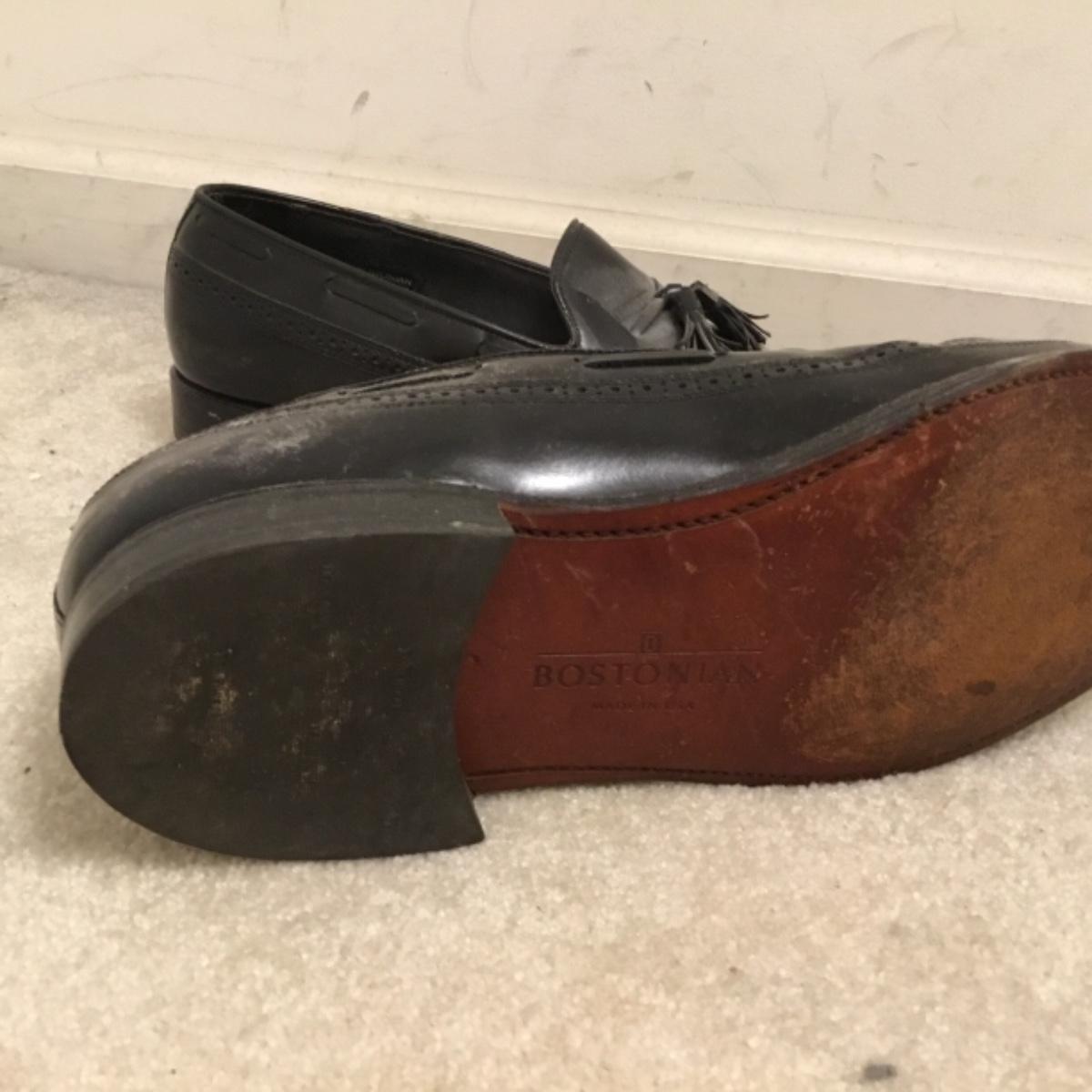 Eight pairs of men’s shoes primarily size 12. Some of the dressier shoes appear smaller and sizes are worn out so may be size 10. See photos of tags that are visible and brands such as Nike, Bostonian, and Timberland. Black Nikes are new in box. They don’t appear to be worn. Dressy shoes have some dust that can easily be wiped off. Also Included in the lot is a tie rack and shoe rack that measures 22”x62”. Shoe rack can hold eighteen pairs of shoes. See photos. Local pickup only.