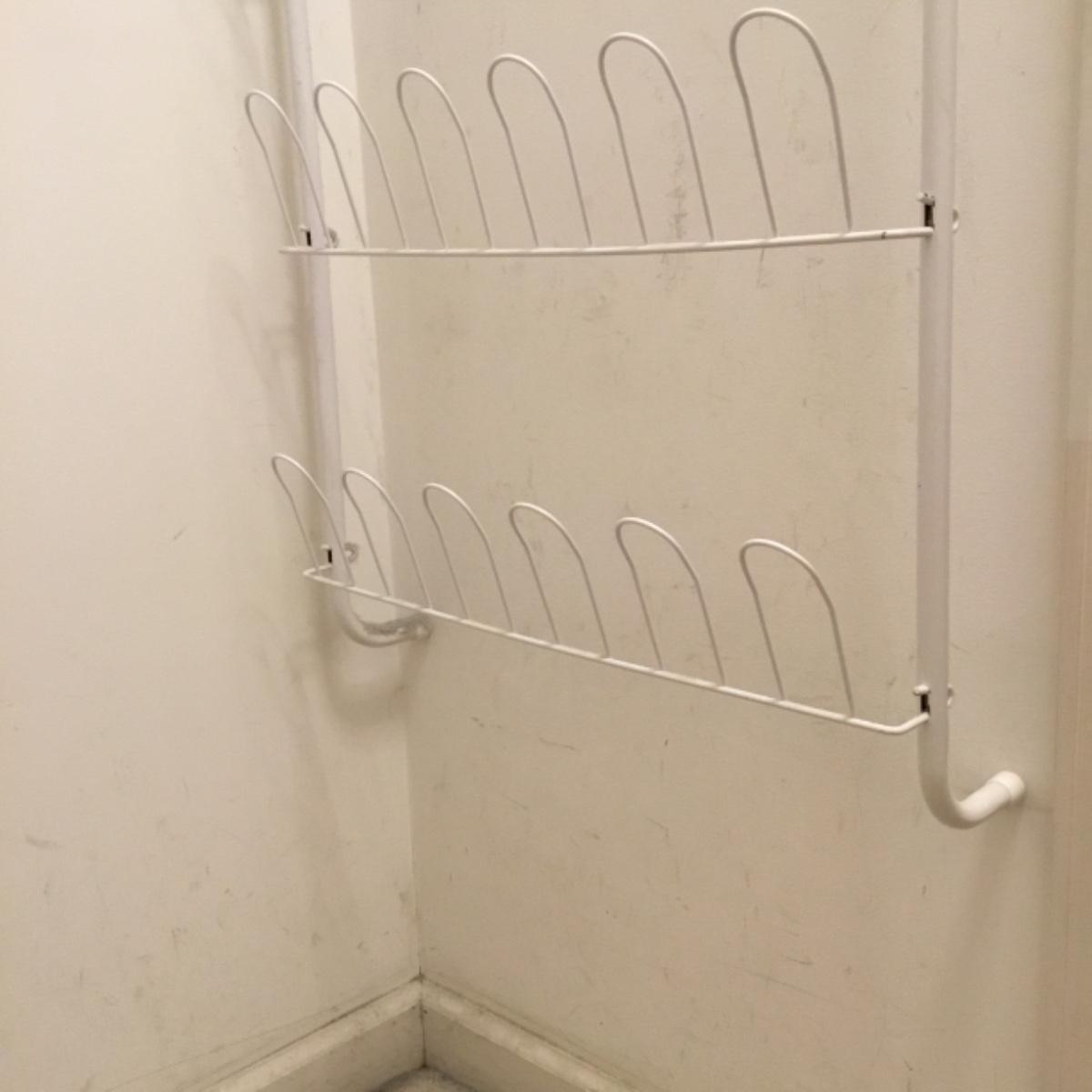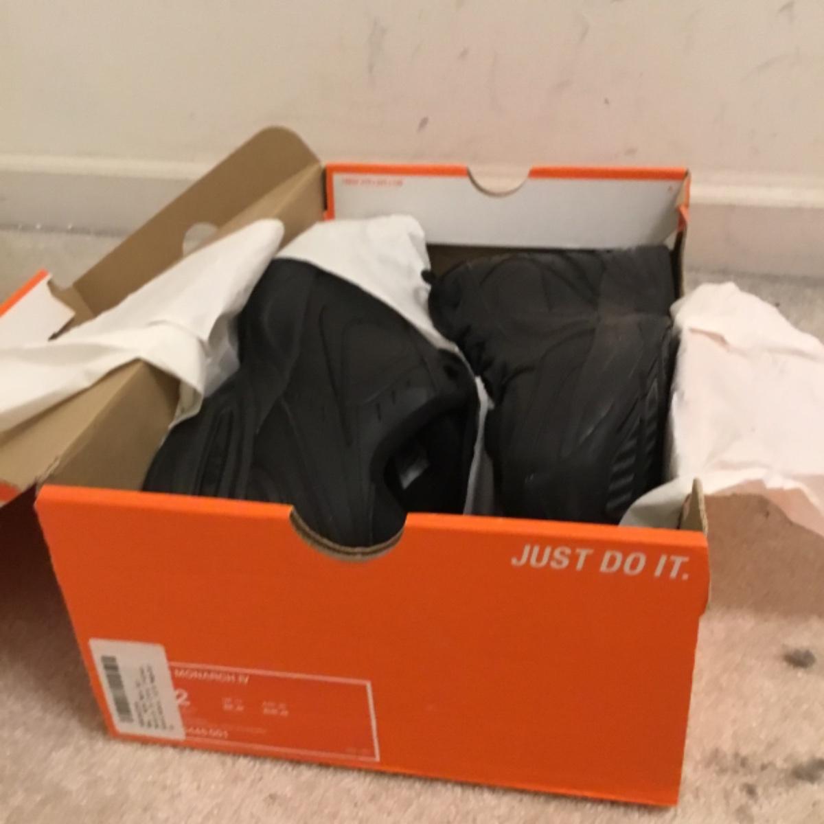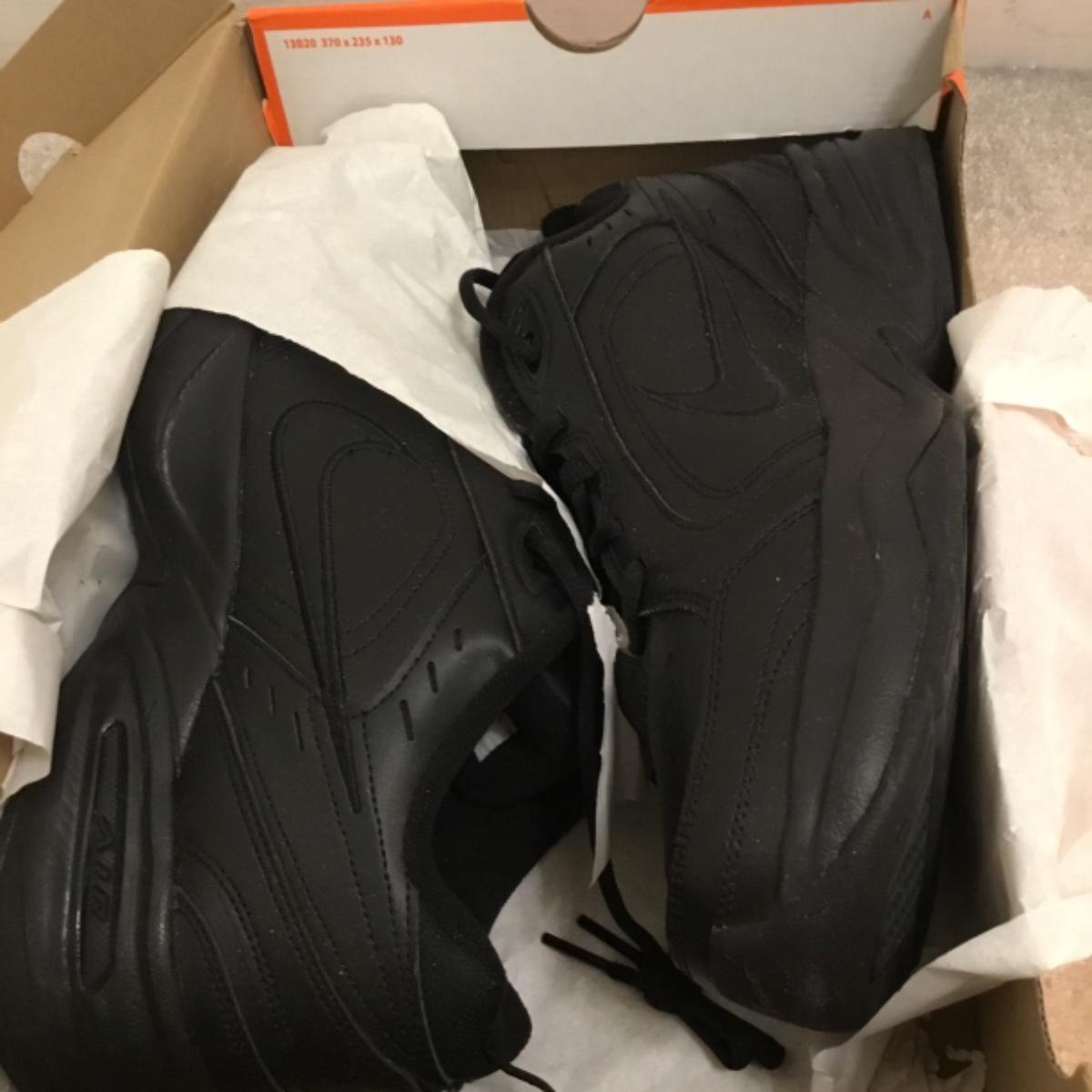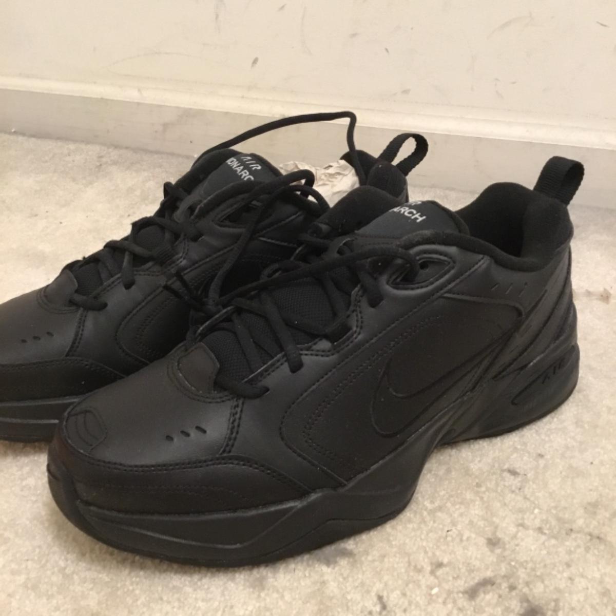 Eight pairs of men’s shoes primarily size 12. Some of the dressier shoes appear smaller and sizes are worn out so may be size 10. See photos of tags that are visible and brands such as Nike, Bostonian, and Timberland. Black Nikes are new in box. They don’t appear to be worn. Dressy shoes have some dust that can easily be wiped off. Also Included in the lot is a tie rack and shoe rack that measures 22”x62”. Shoe rack can hold eighteen pairs of shoes. See photos. Local pickup only.