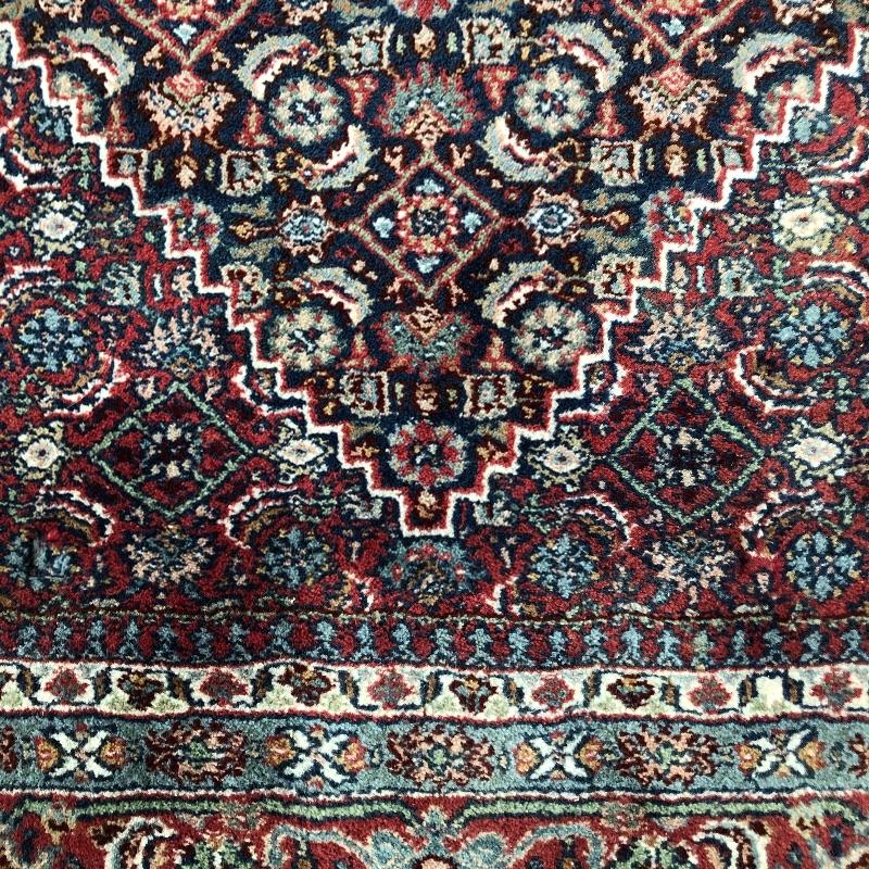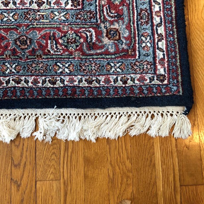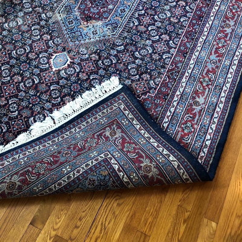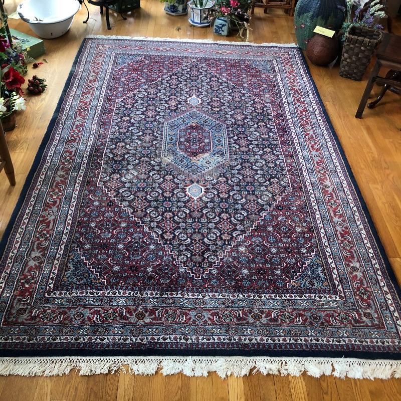 This large oriental rug was made locally here in Hendersonville. Measuring 70” x 108”, it’s a great size. A combination of blues and reds this rug is in good condition with no obvious signs of any damage.