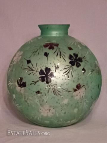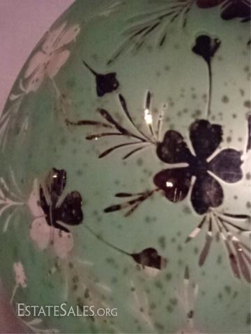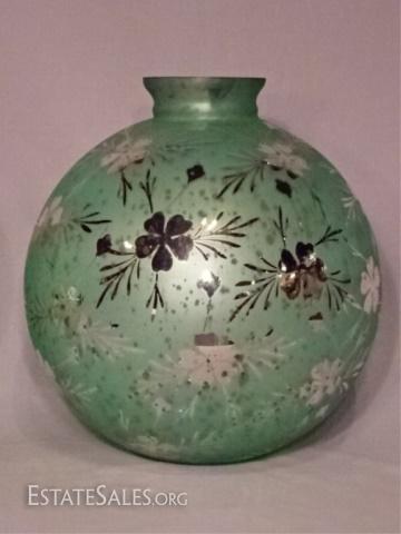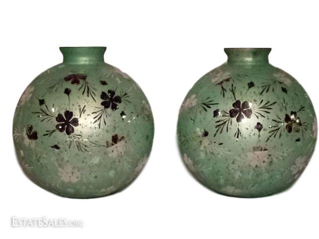 LOT 4: PAIR LARGE MERCURY GLASS VASES, CELEDON GREEN AND SILVERED GLASS, VERY GOOD CONDITION WITH NO CHIPS, 14"H X 12"W, SKU387.12