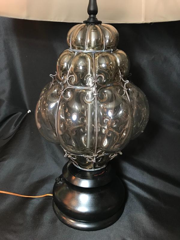 Lot 4- Pair of MCM Caged Smoked Glass Lamps
