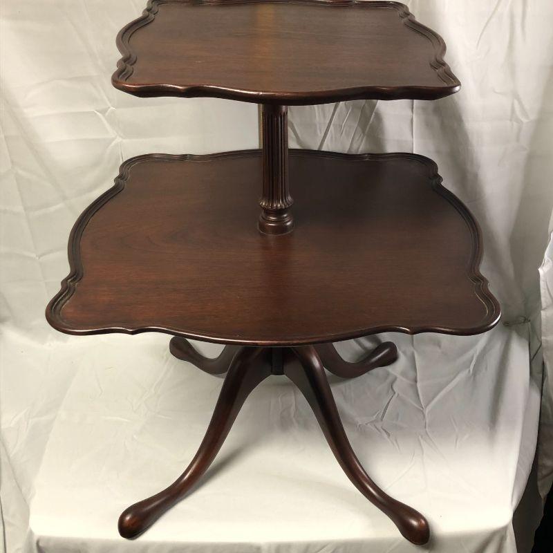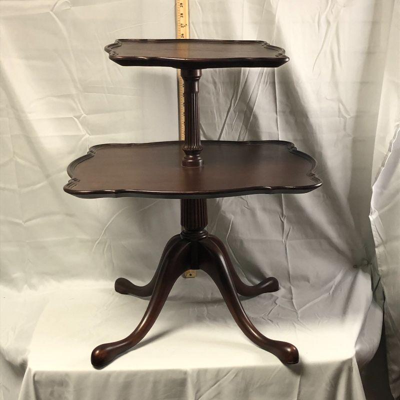 Lot 4 - Pie Crust Edge Two Tier Wood Table LOCAL PICKUP ONLY