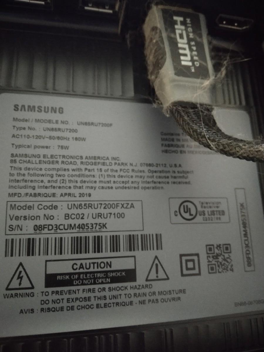 SAMSUNG 7 SERIES 65" UHD TELEVISION WITH REMOTE MODEL NUMBER UN65RU7200F