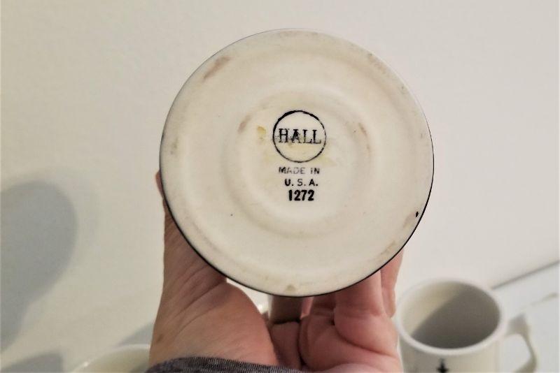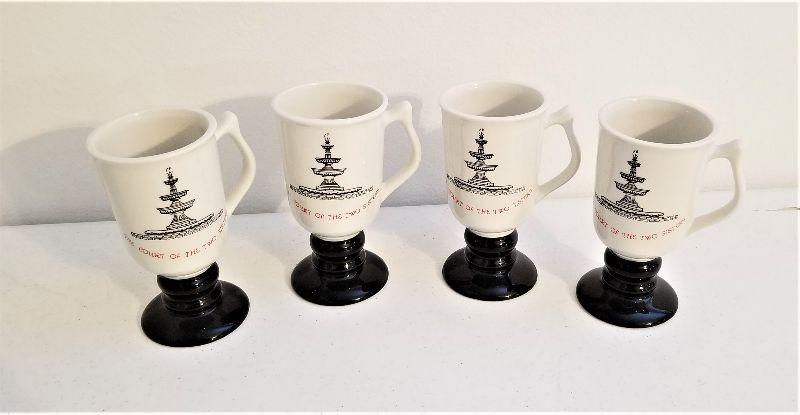 Blast from the past - set of 4 vintage Hall China Irish Coffee mugs from the Court of Two Sisters Restaurant. Good condition - each stands 5.5" tall.