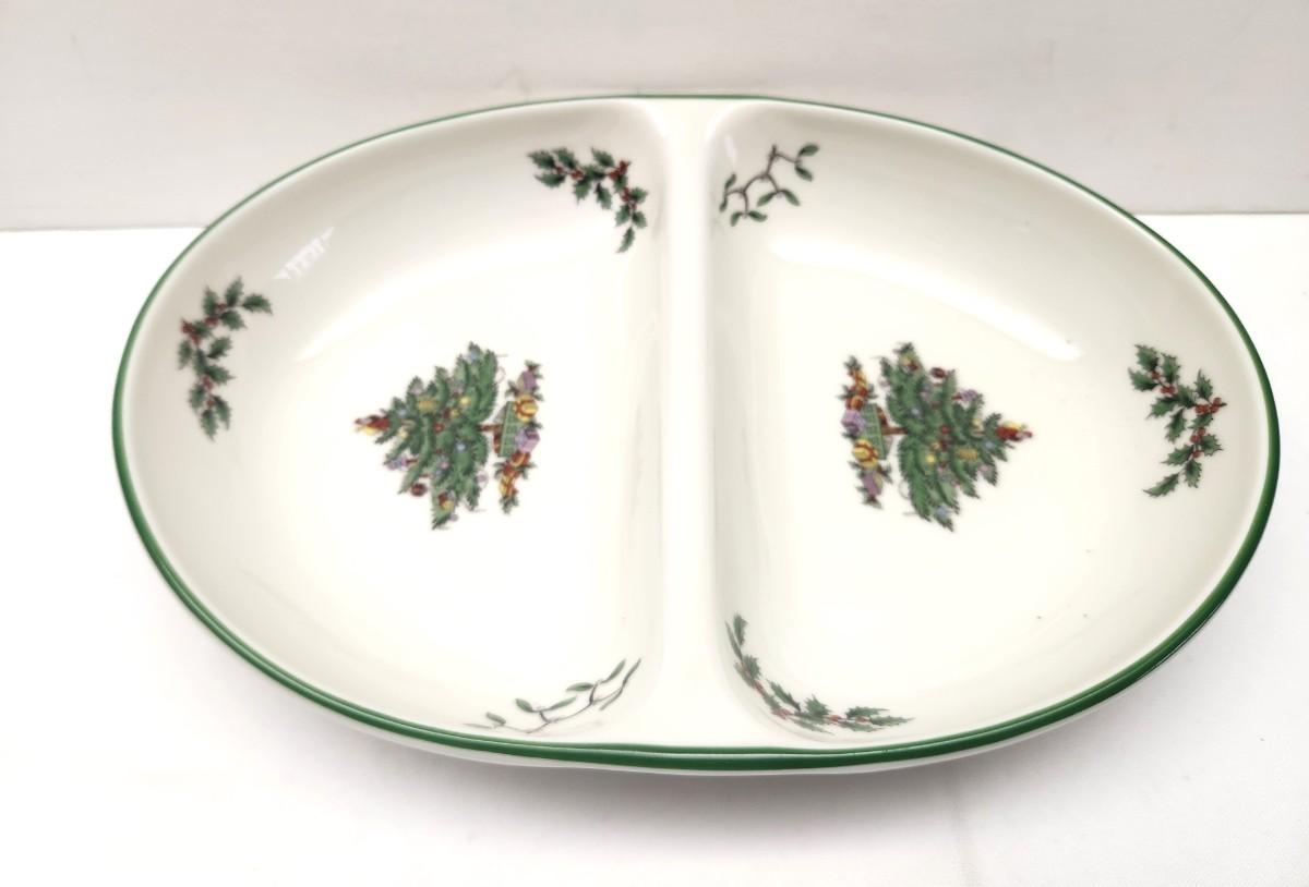Nice Spode "Christmas Tree" divided serving bowl - 2" tall, 11.5" x 8.5". Good condition. Oven to table.