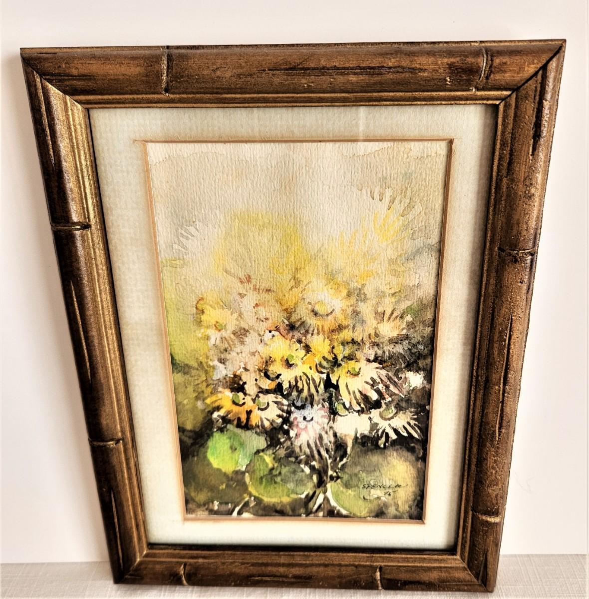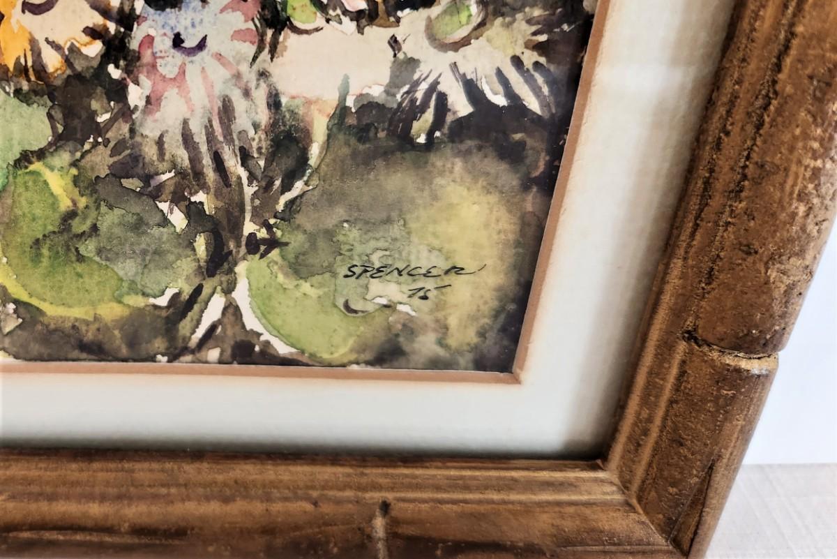 Sweet original watercolor, floral design, signed "Spencer, '78".