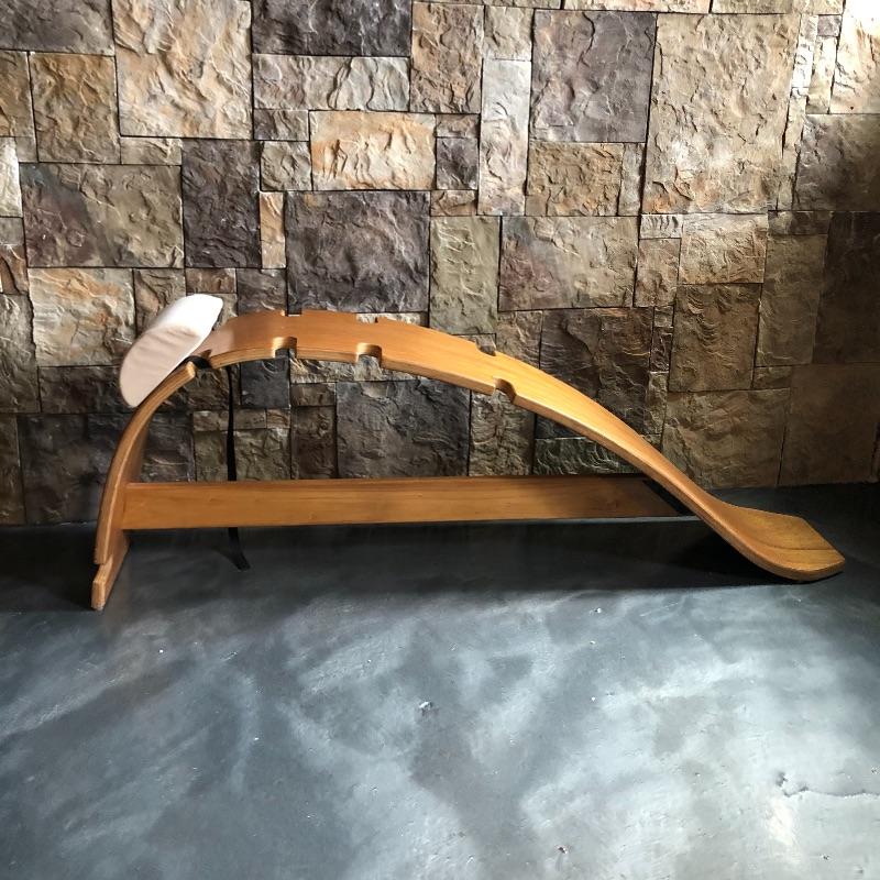 Get all the kinks out with this awesome therapeutic back stretching bench. Bench is made of wood and has a small moveable pillow.