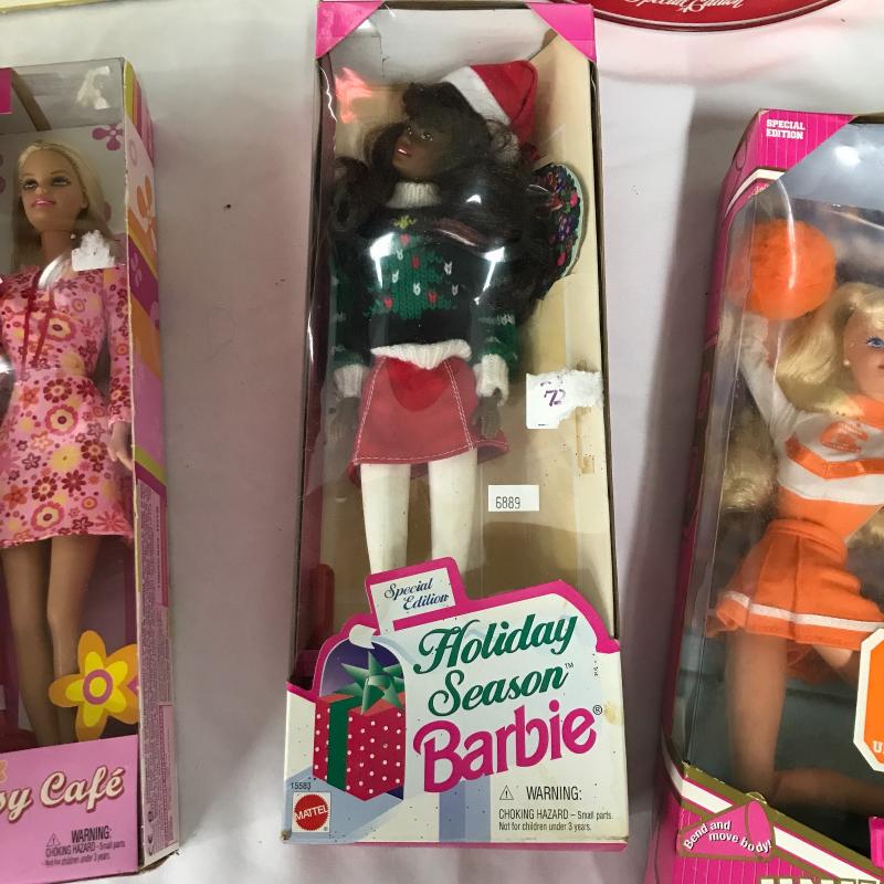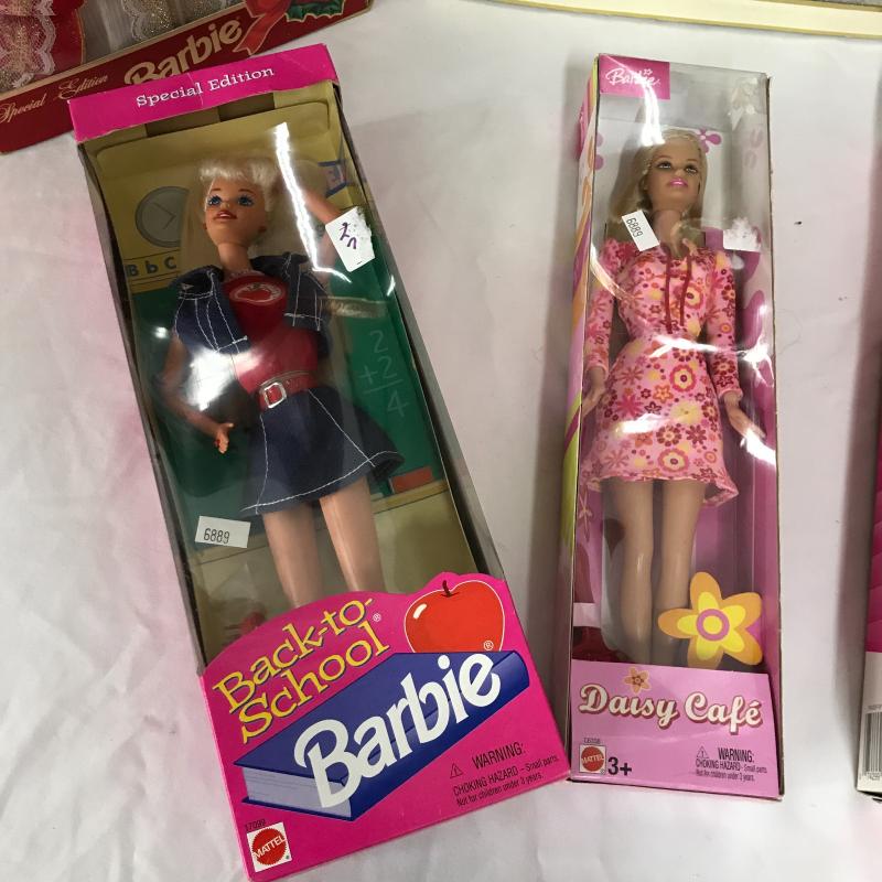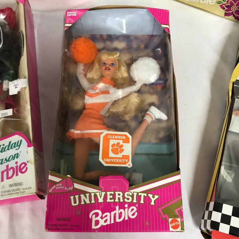 Twelve collectible new-in-box Barbies. See photos for details. Shipping or local pick up in Maggie Valley.