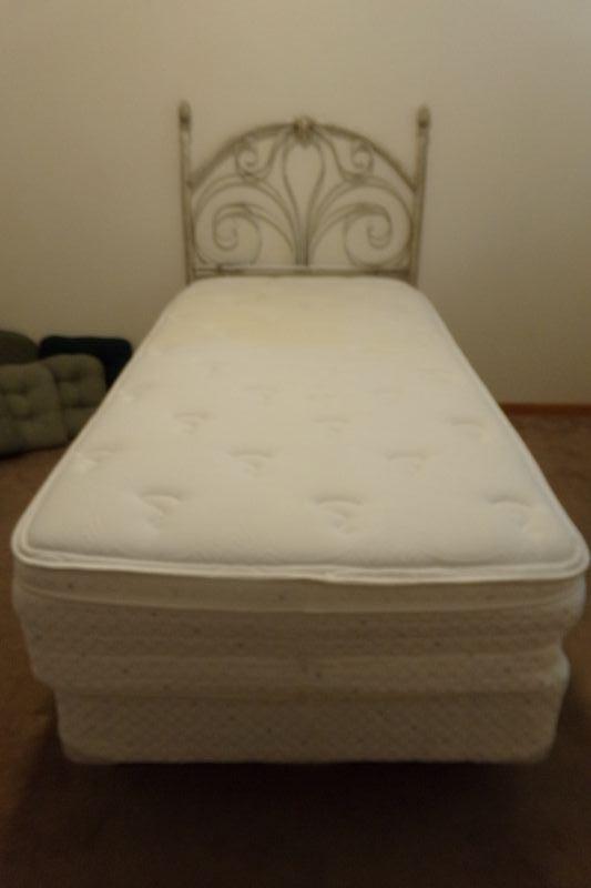 NEWER MATTRESS THAT HAS A STAIN FROM AN EGG CRATE CUSHION THAT WAS USED. IT IS MOST LIKELY CLEANABLE BUT WE DIDN'T HAVE THE TIME TO DO IT. MEASURES 73"x38"