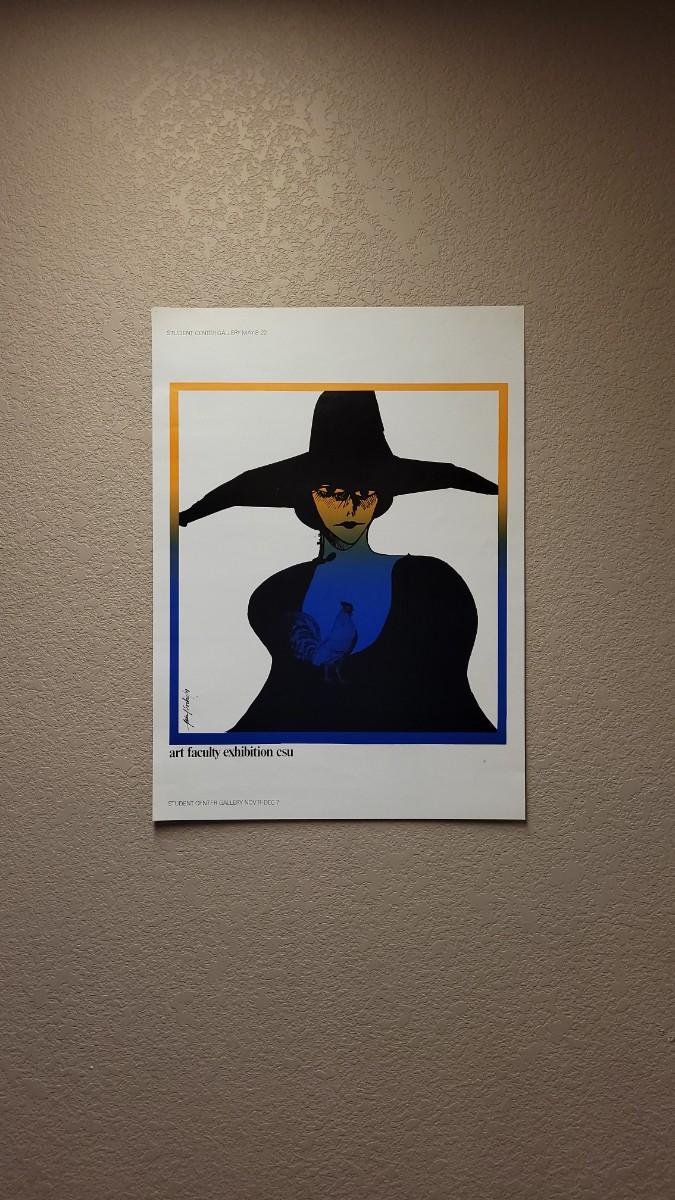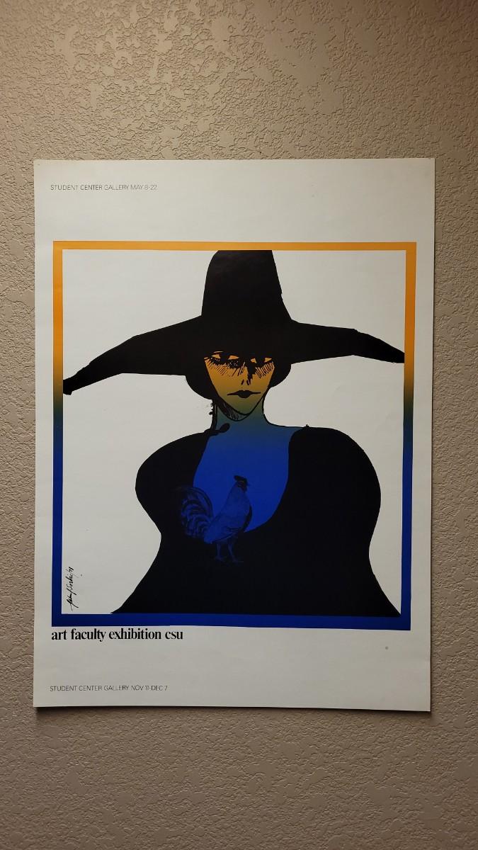 This lot features a Vintage 1978 Signed poster by faculty artist and professor JOHN SORBIE from CSU. 24.5" x 18". This graphic shows a colorful bordered Witch with rooster.