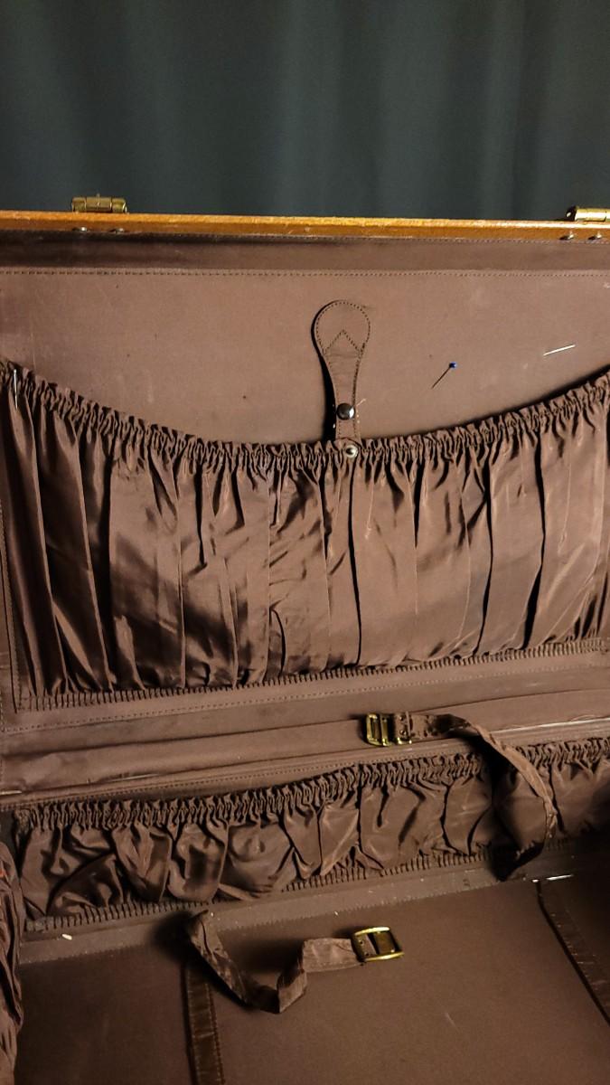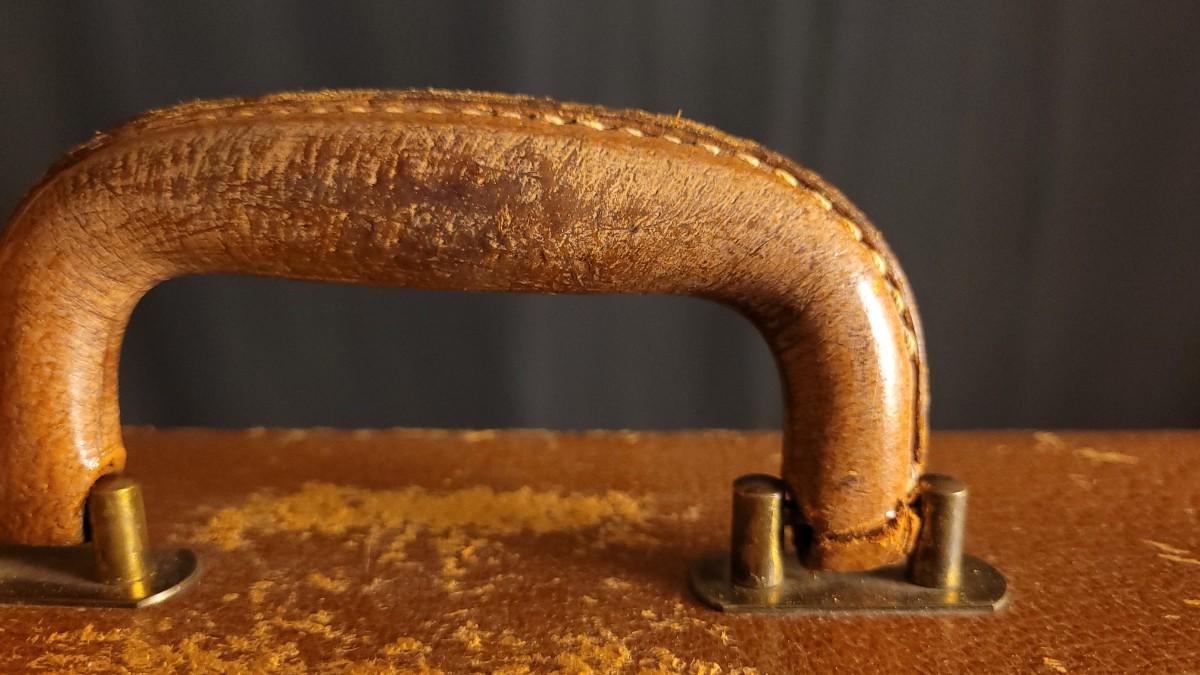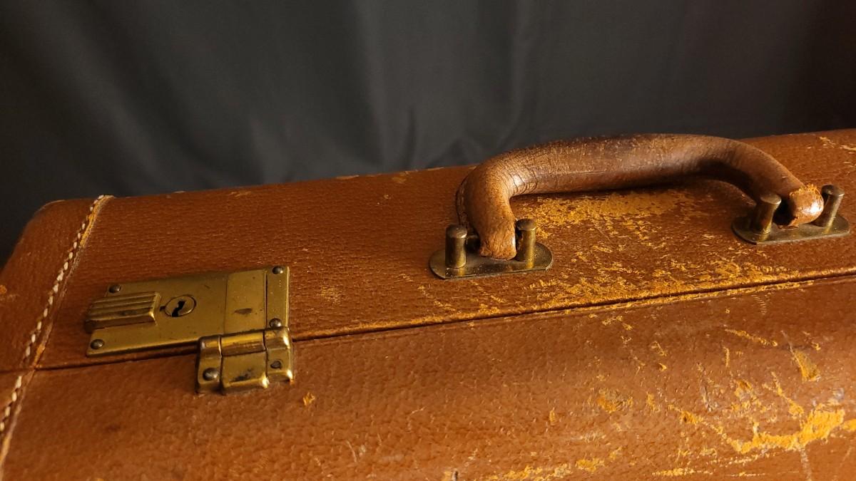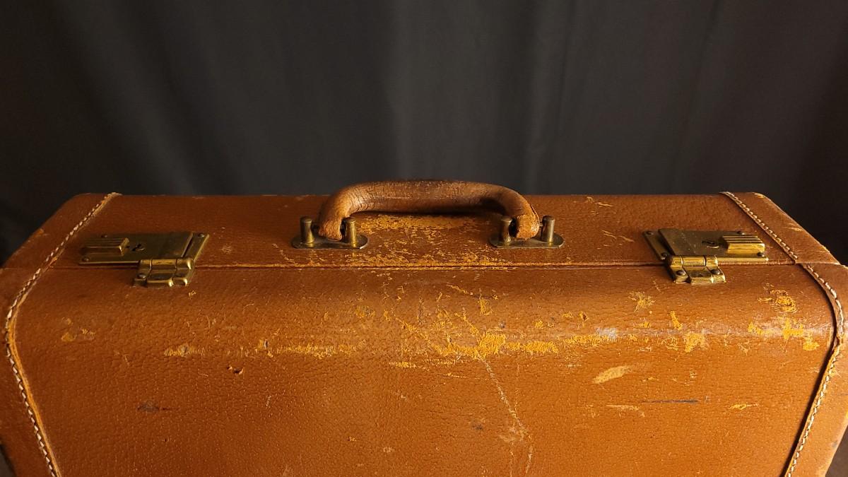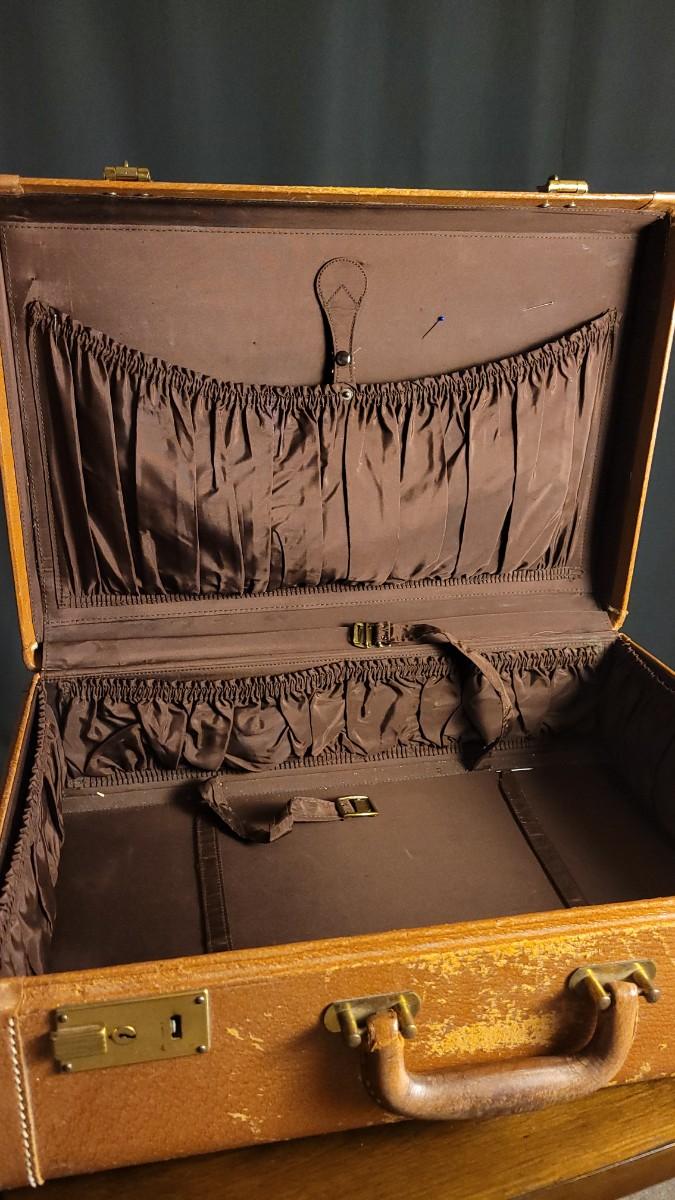 This lot features a stylish Vintage leather Suitcase with the original silky soft interior intact. Although it does not have the original key, the Suitcase still has lots of life left. Measures 18" x 13" x 6".