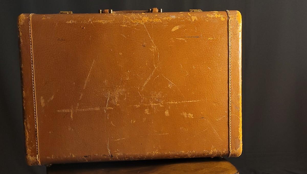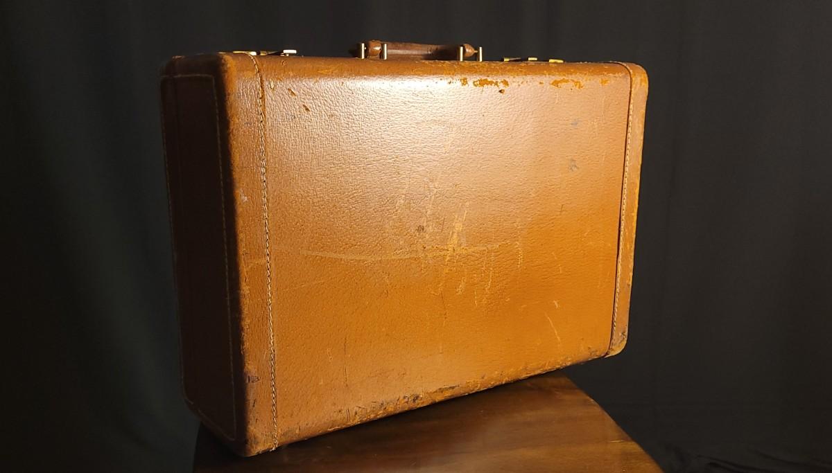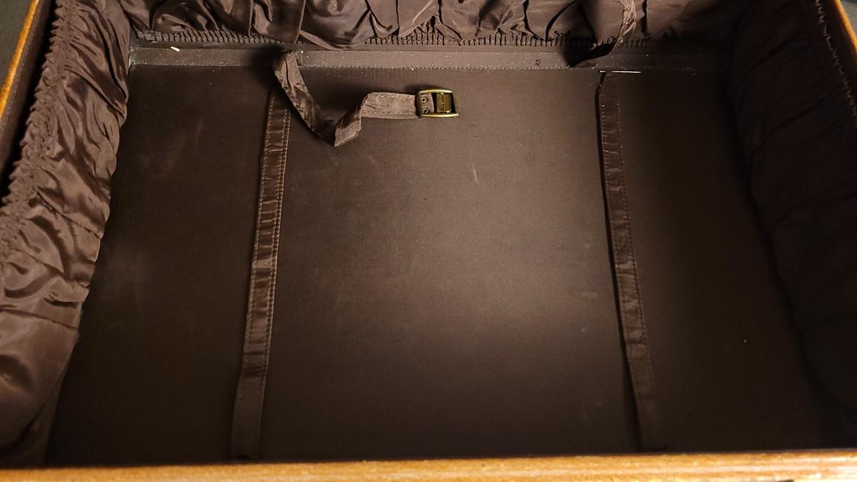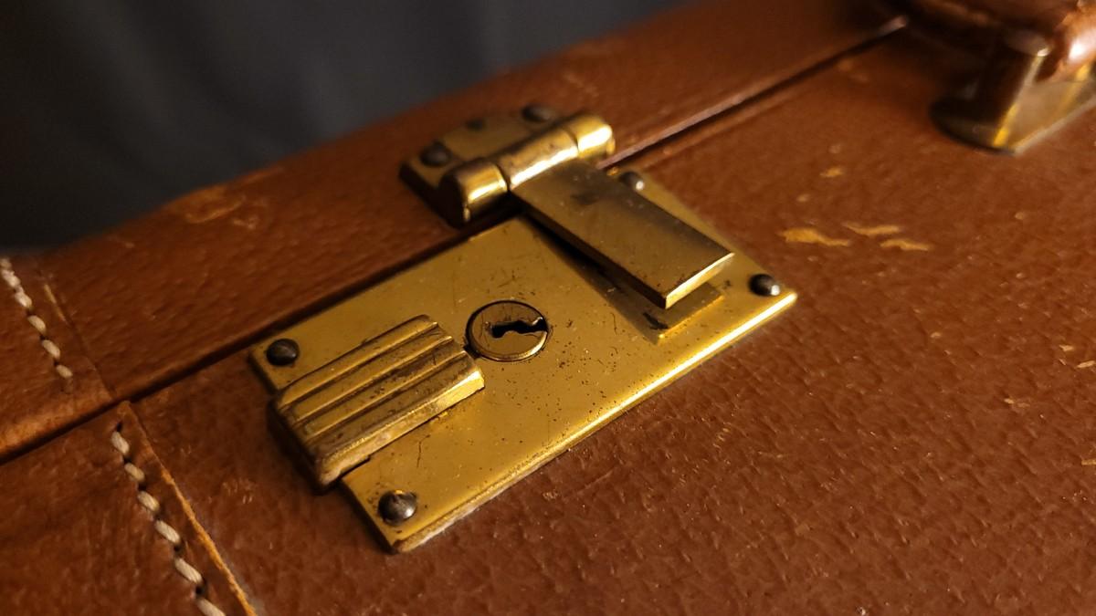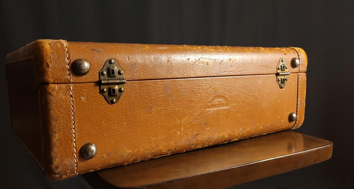 This lot features a stylish Vintage leather Suitcase with the original silky soft interior intact. Although it does not have the original key, the Suitcase still has lots of life left. Measures 18" x 13" x 6".
