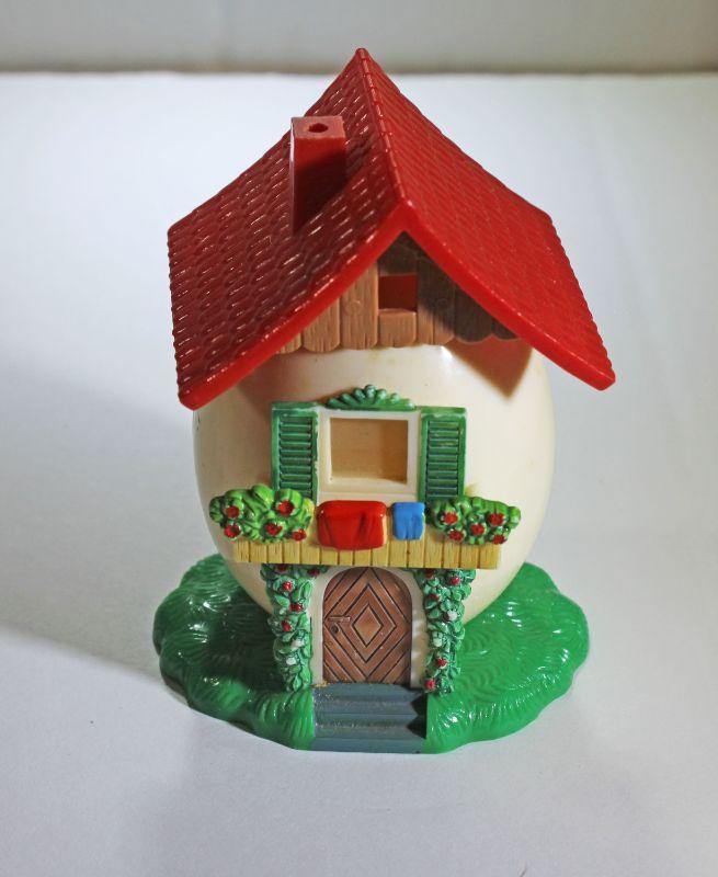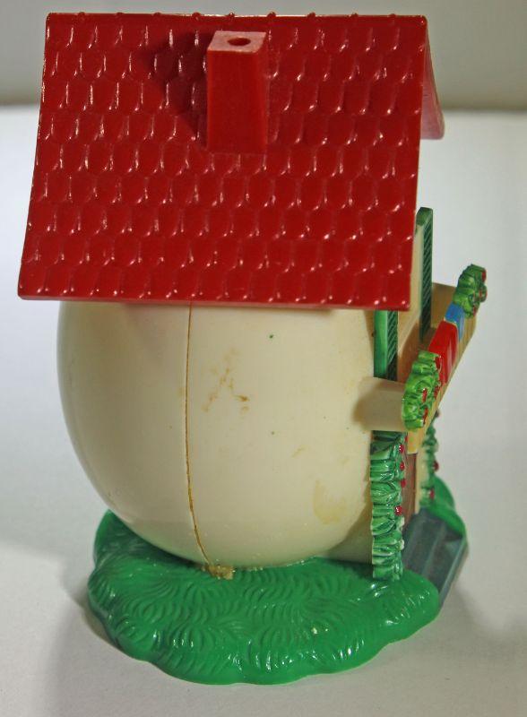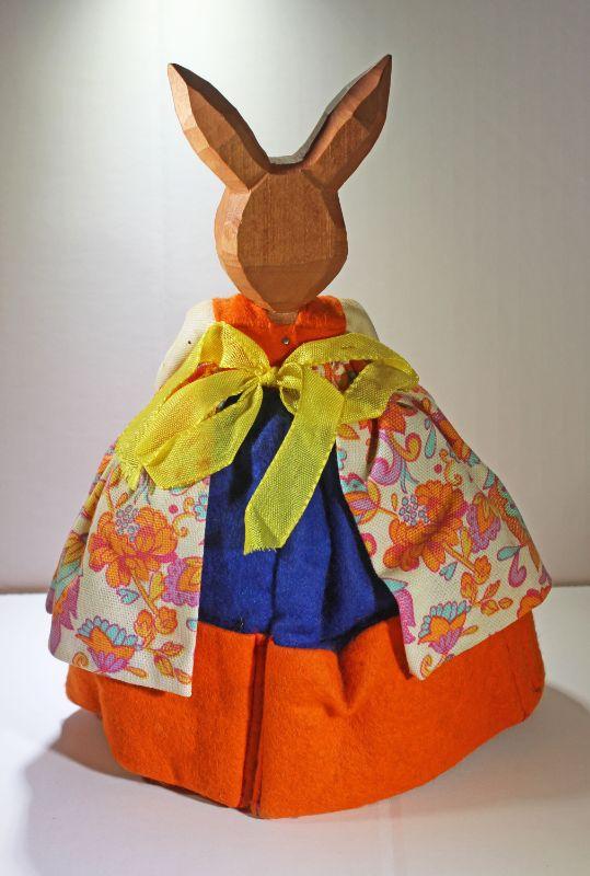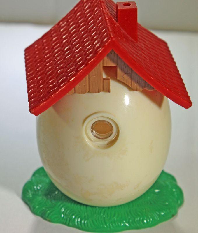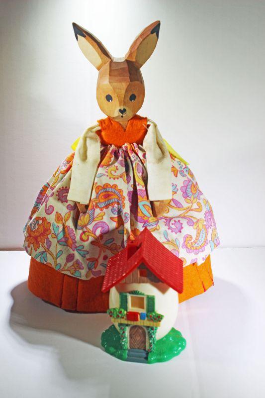 8" carved bunny and 3" plastic egg picture viewer. Viewer is from the 1960s and has slight scars from age.