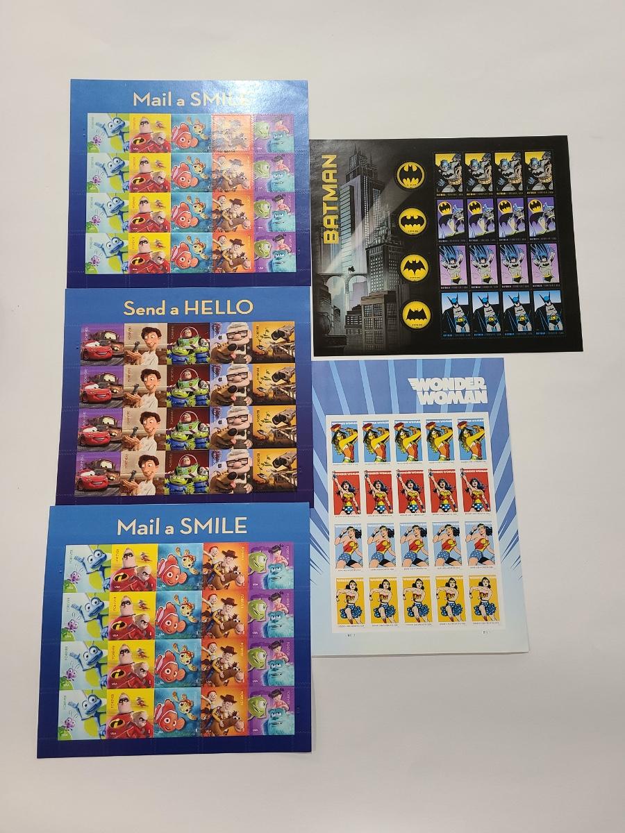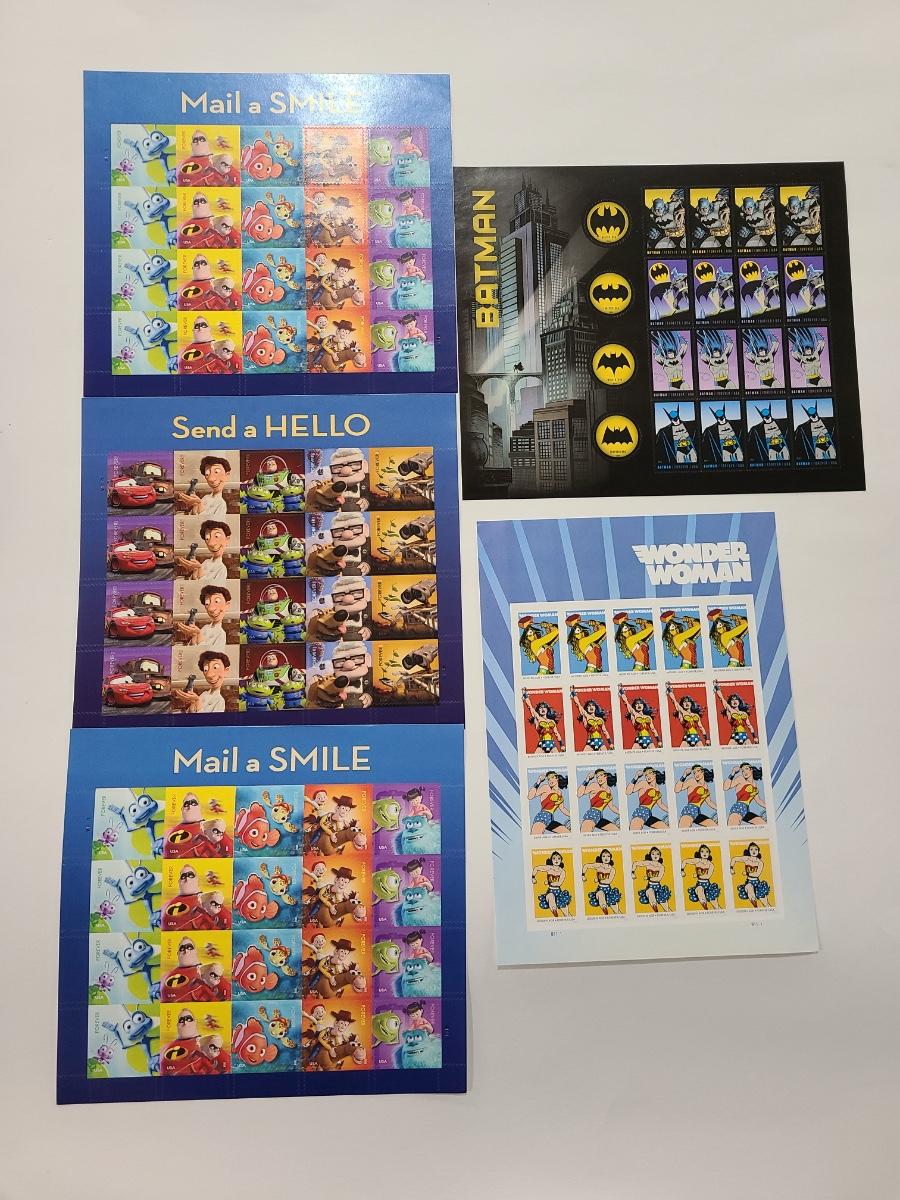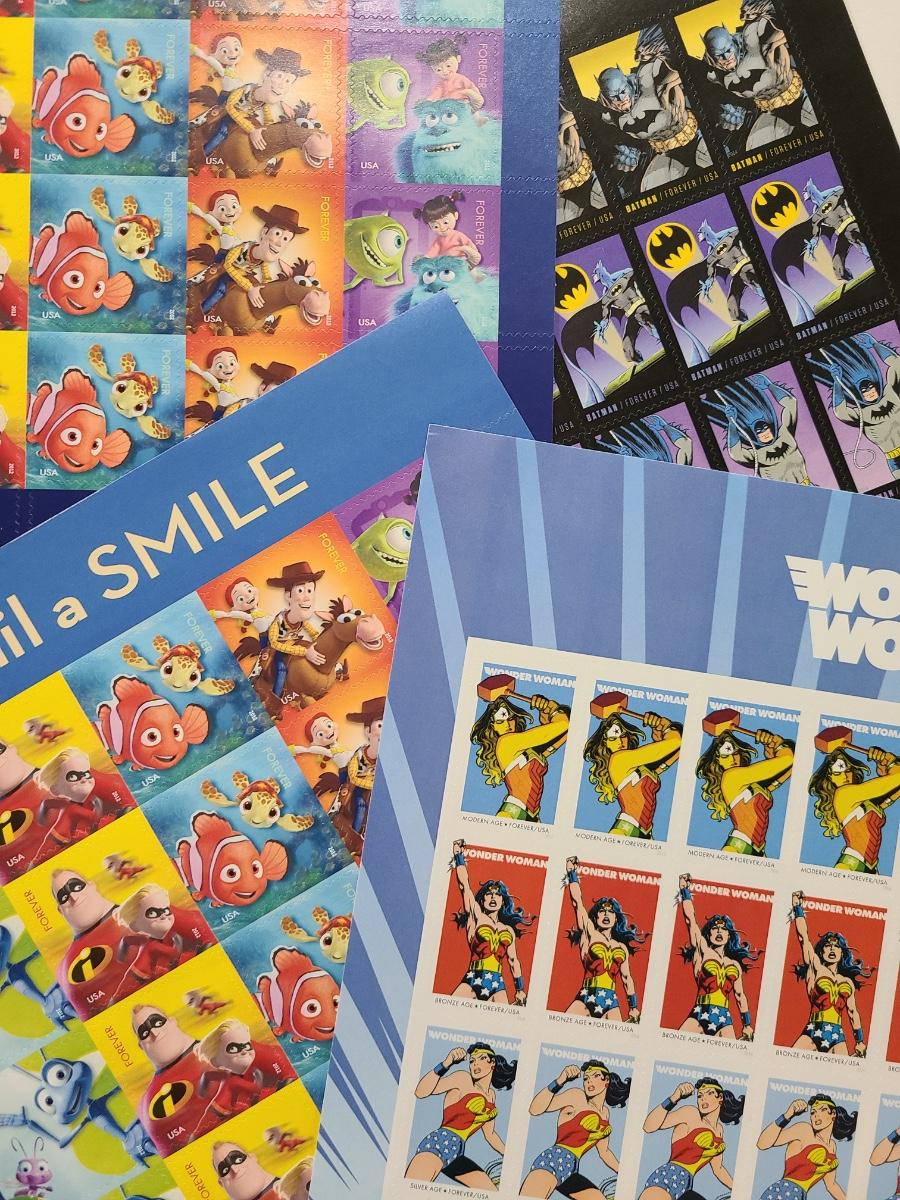 Lot 40: 100 Forever Stamps: Batman, Wonder Woman, Disney (Retail $58.00)