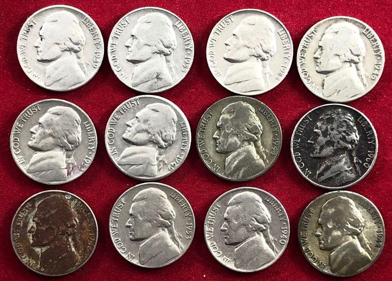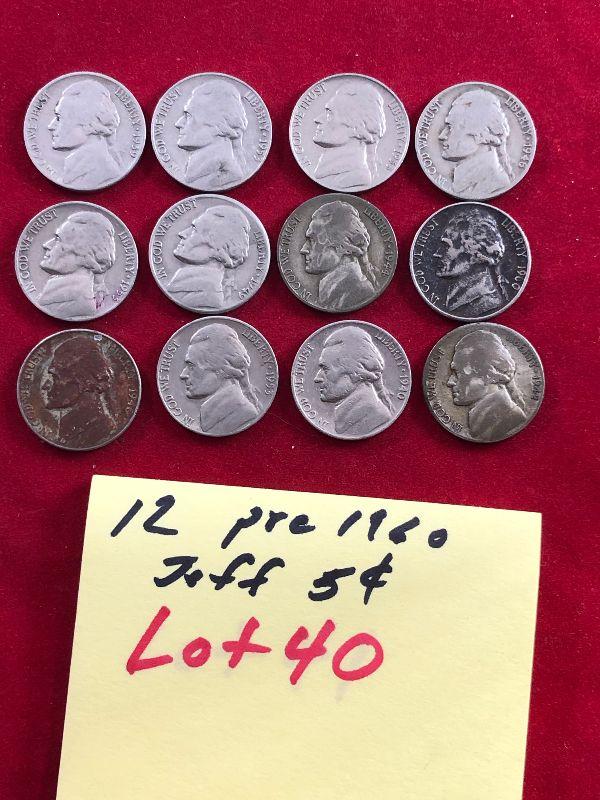 Lot #40- 12 Pre 1960 Jefferson Nickels