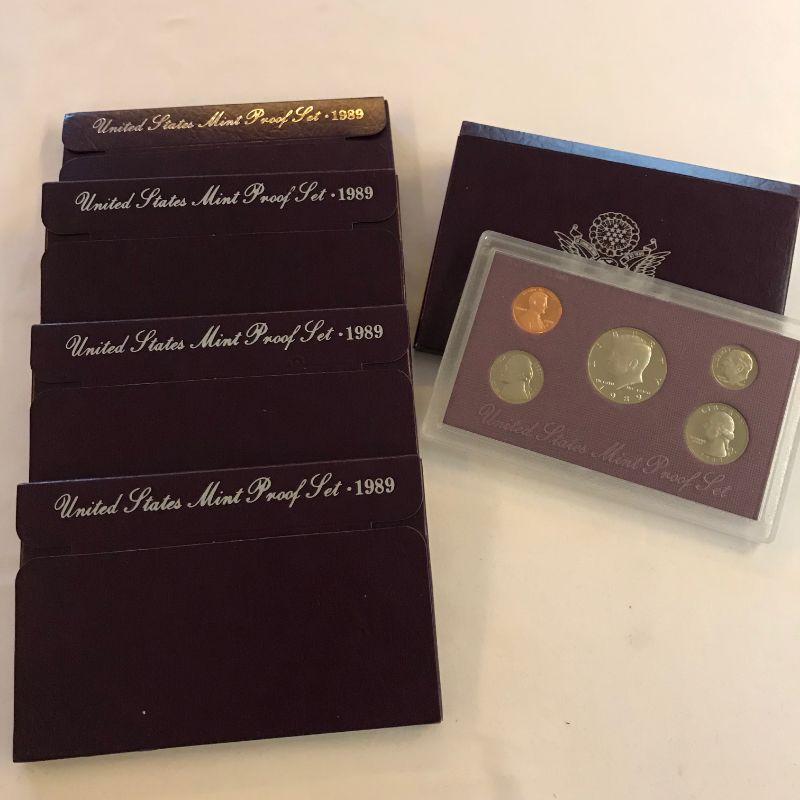 Five 1989 Proof Set. Toning is present on some, see photos.