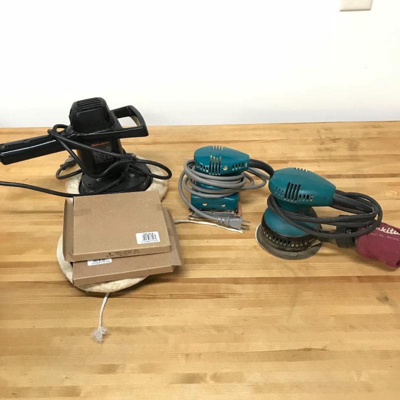 Mikita palm sander and orbital sander with a few attachments, B&D buffer has a few extras also. All work and are available for local pick up in Asheville, NC only.
