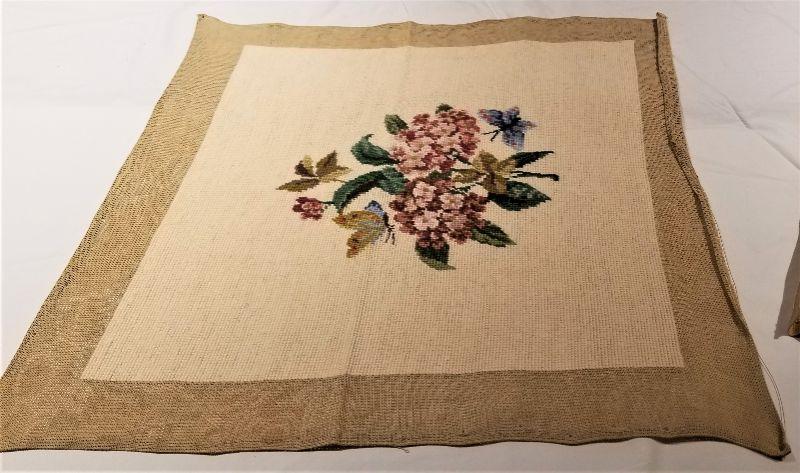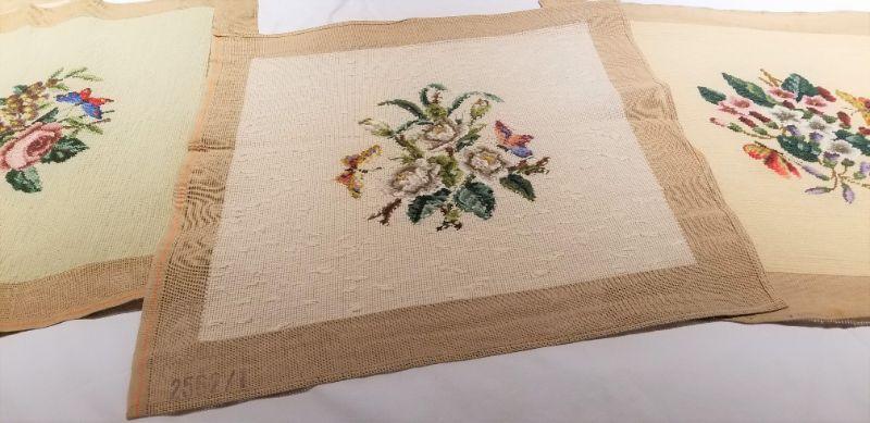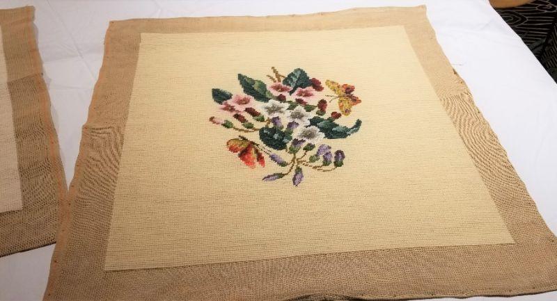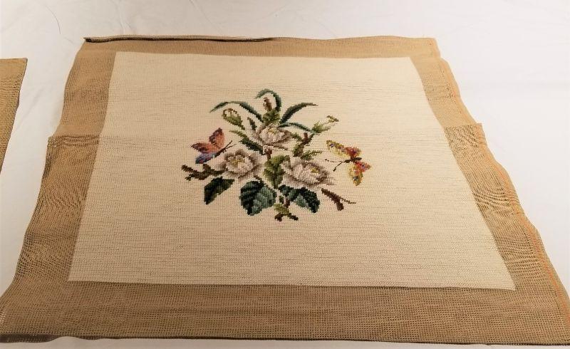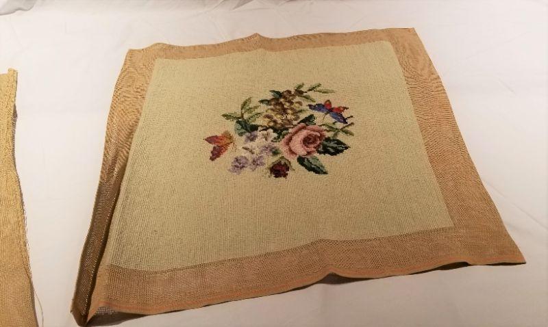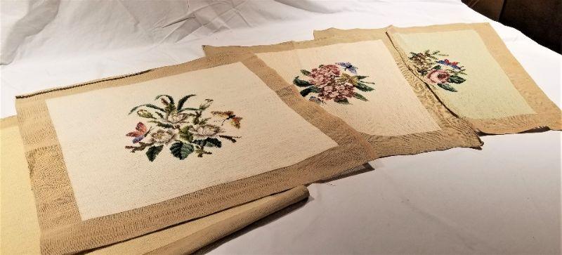 Lot #40 4 Completed Needlepoint Seat Covers - Floral Scenes