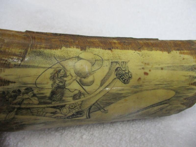 Lot 40 - Whale Tooth Scrimshaw with Whaling Scene 8" Whaling event