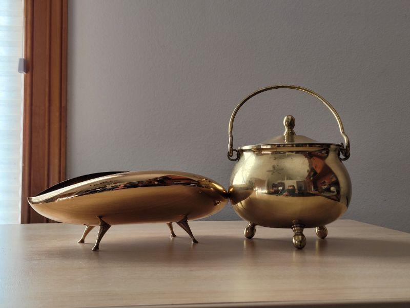 Lot #40: Pair of Vintage Mid Century Modern Brass Creations 9" Dish & 5" Pot w/ Lid