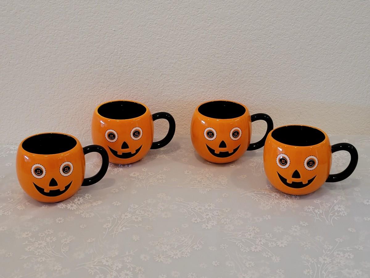 Lot 40: (4) Jack-O-Lantern Coffee Mugs