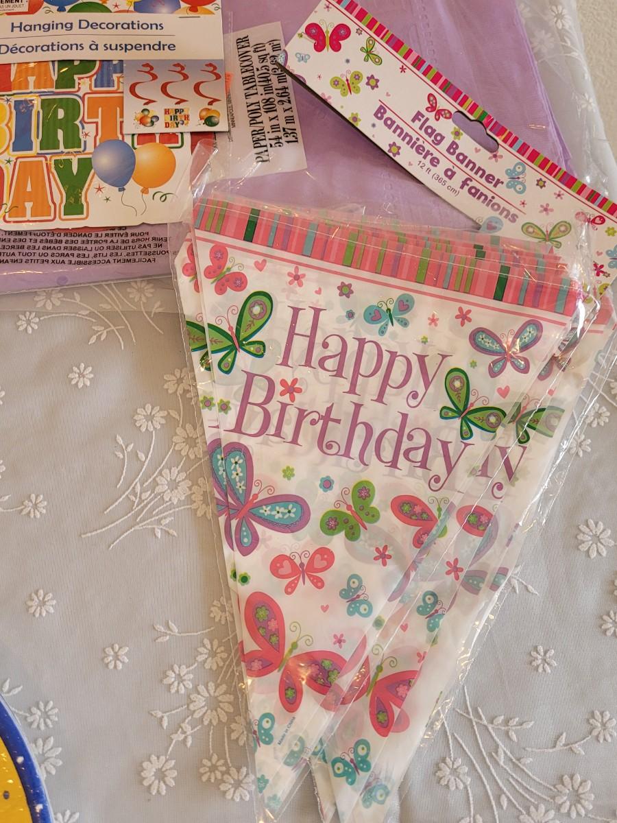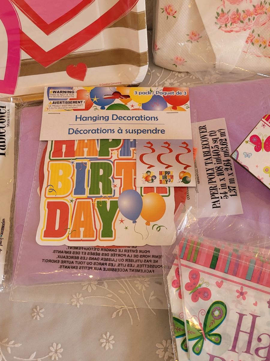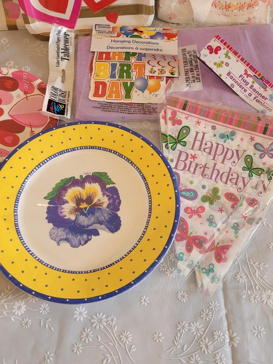 Lot 40: Disposable Tablecloths, Plates, Napkins and Birthday Decorations
