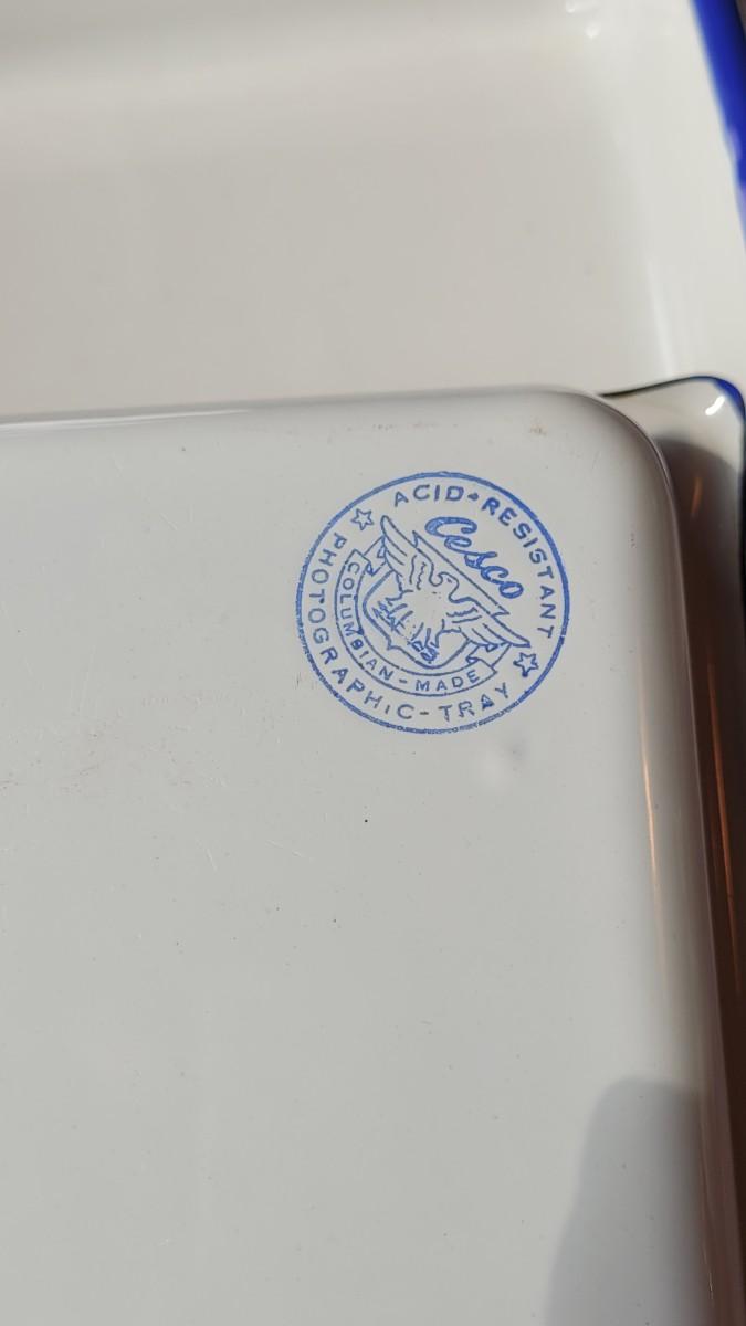 Lot 40: (2) White & Blue Cisco Acid Resistant Photographic Tray made in Columbia