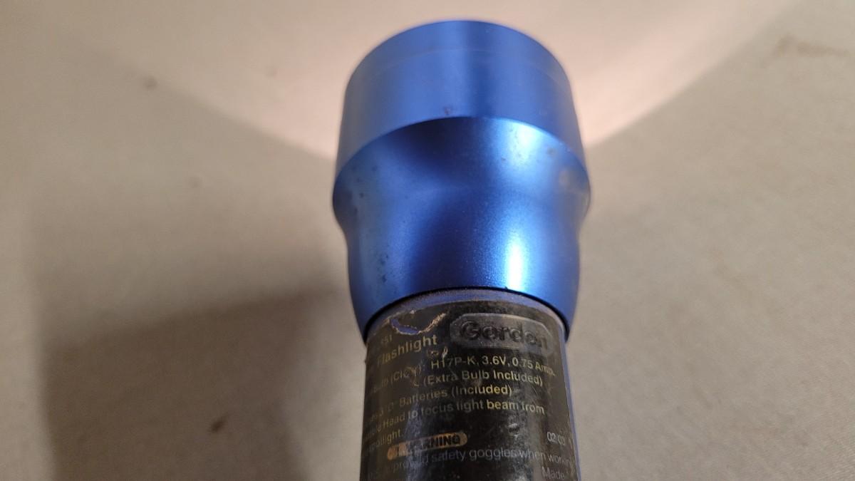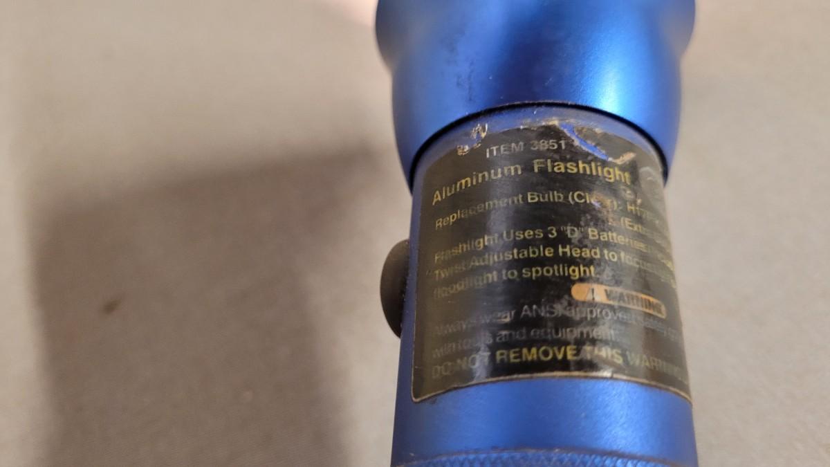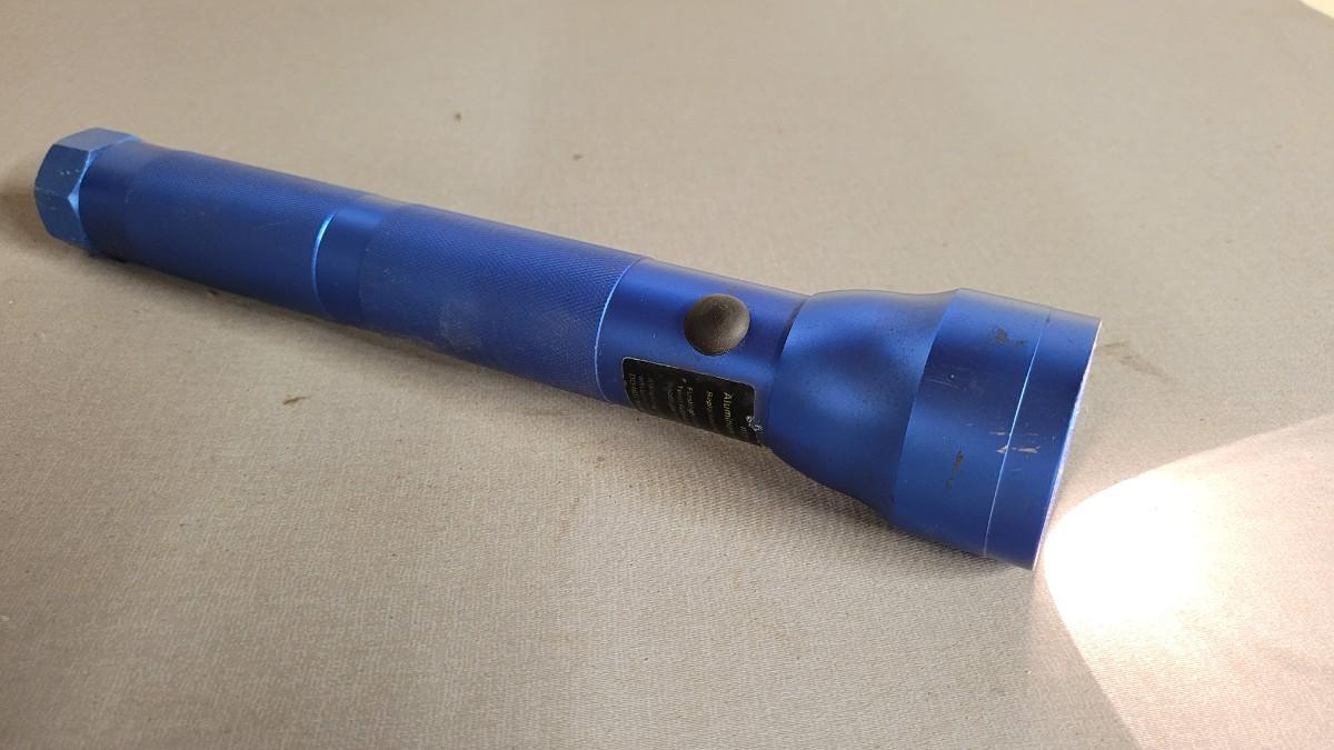 Lot 40: Large Aluminum Blue Flashlight WORKS
