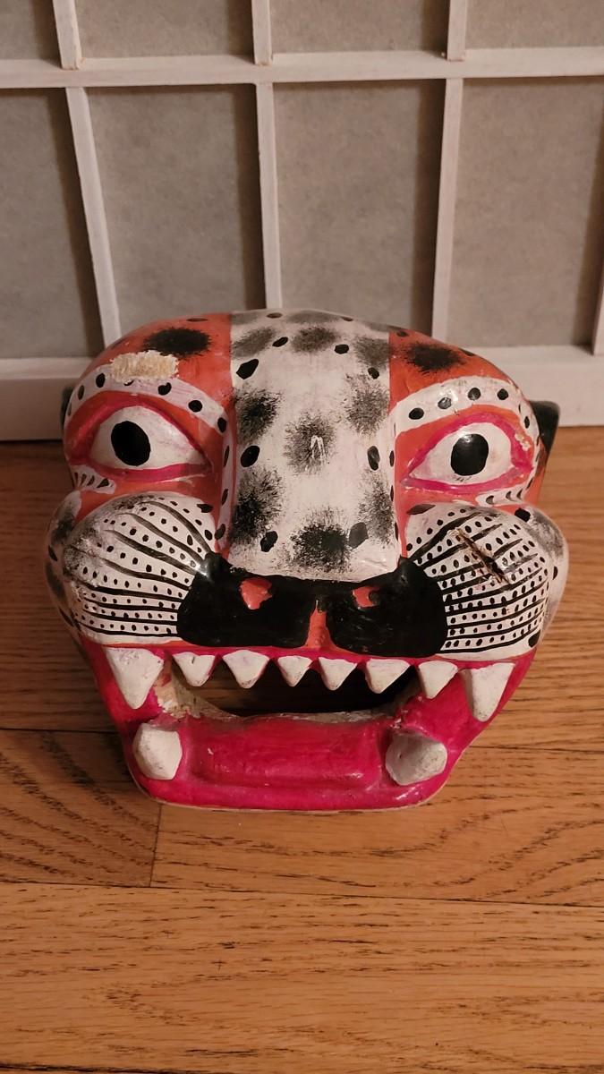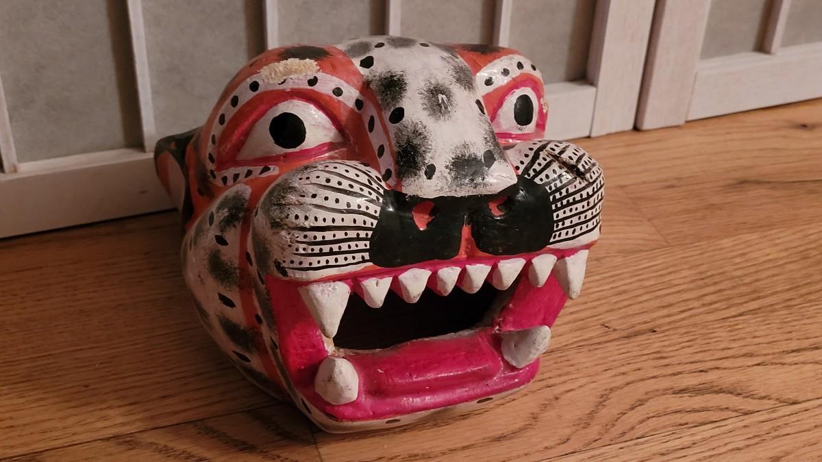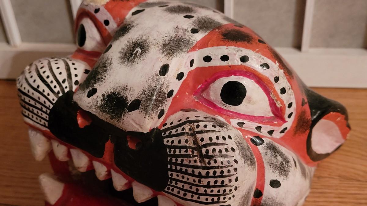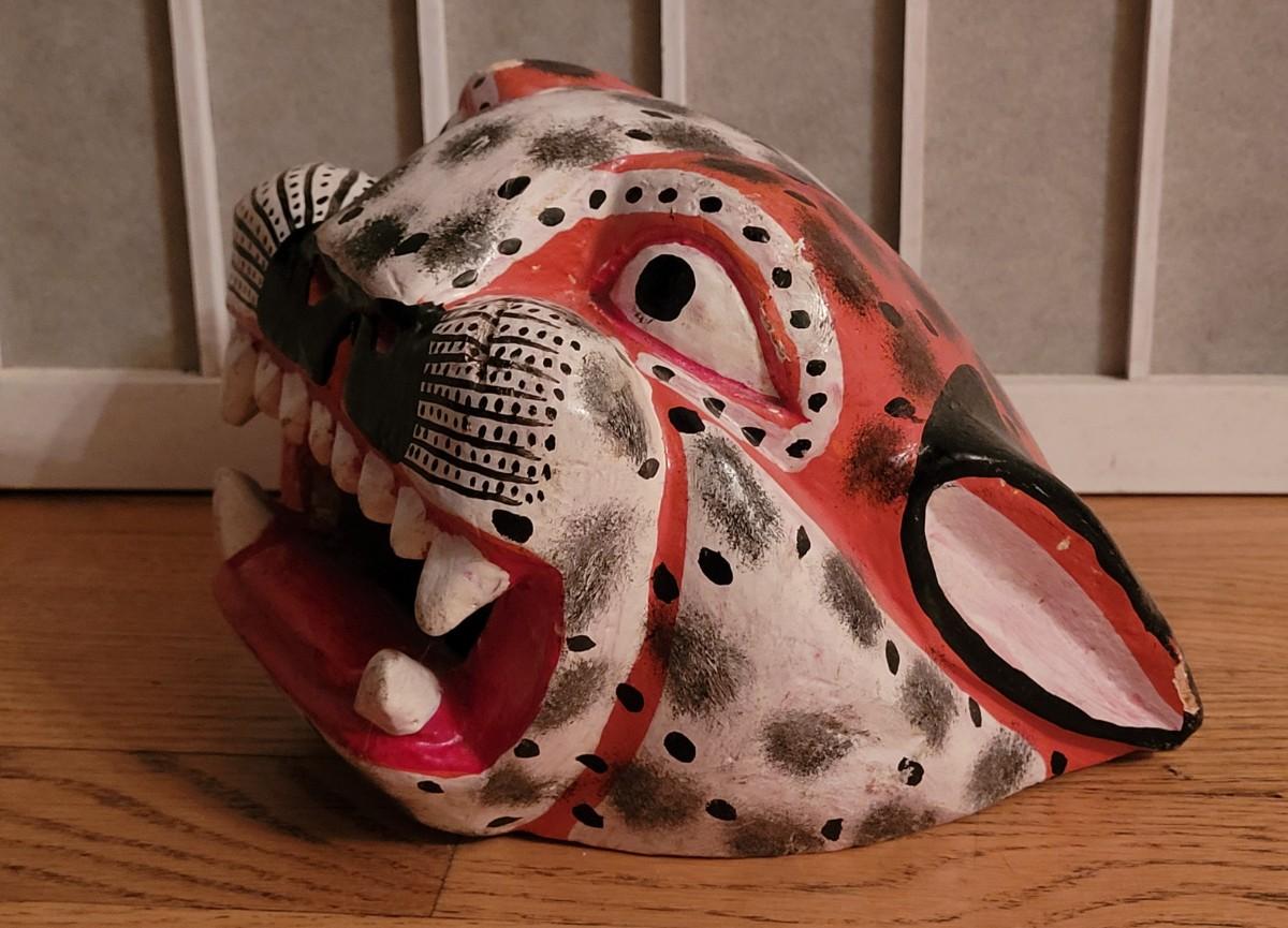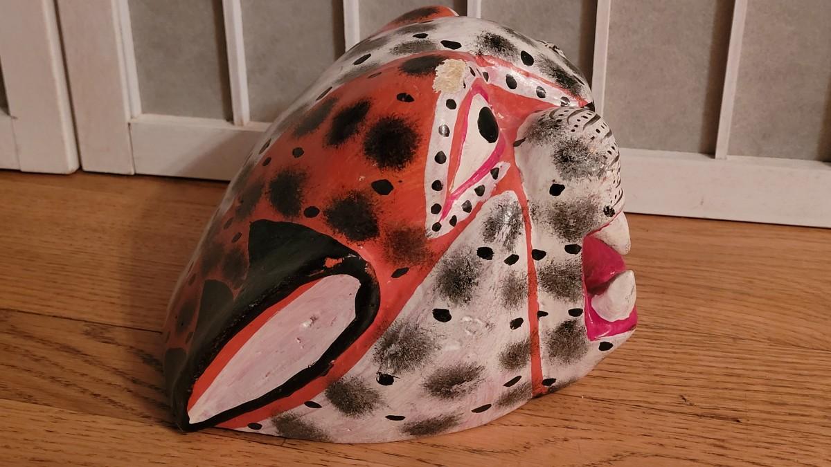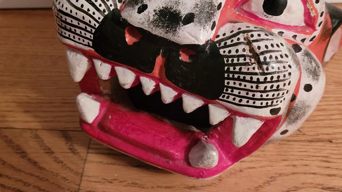 Lot 40: Oaxaca Folk Art Handpainted & Carved Wood Alejibre Mask #2 (red)