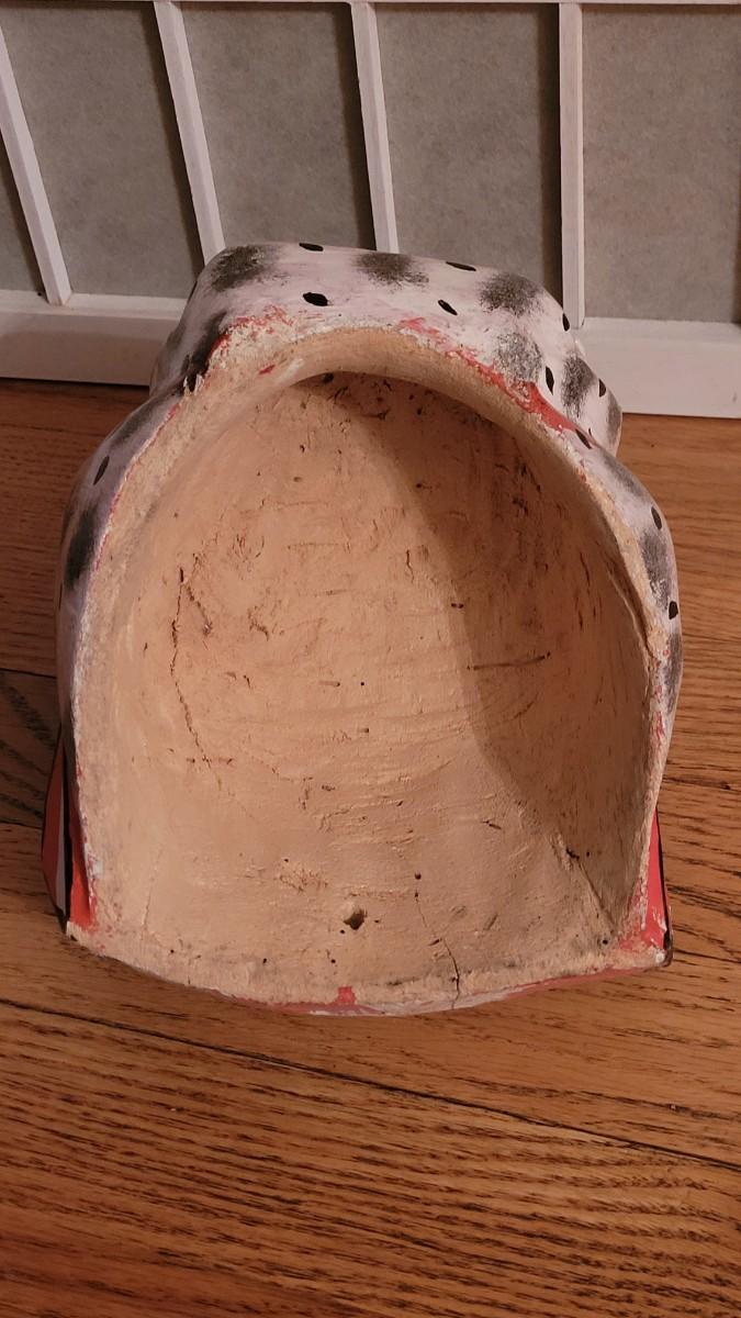This mask is decorative and can hang or sit on a shelf.