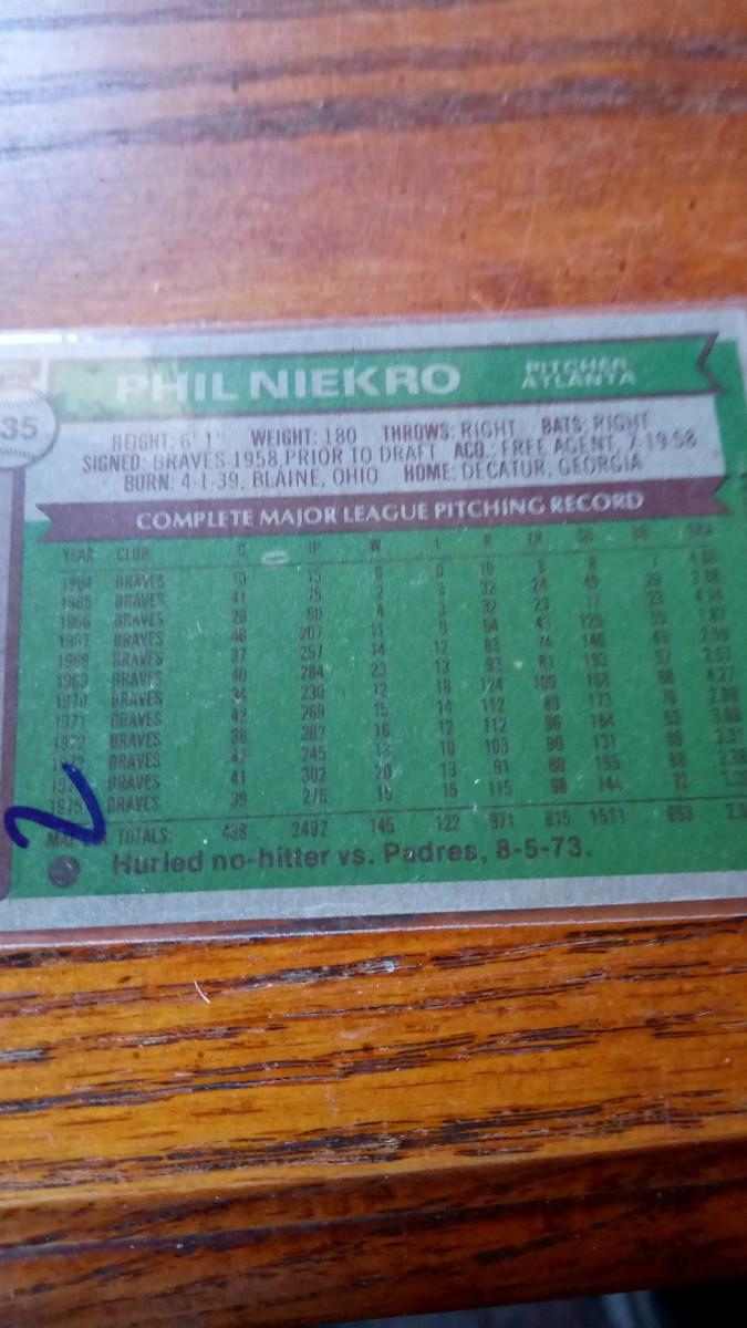LOT 40 TWO VINTAGE PHIL NIEKRO BASEBALL CARDS