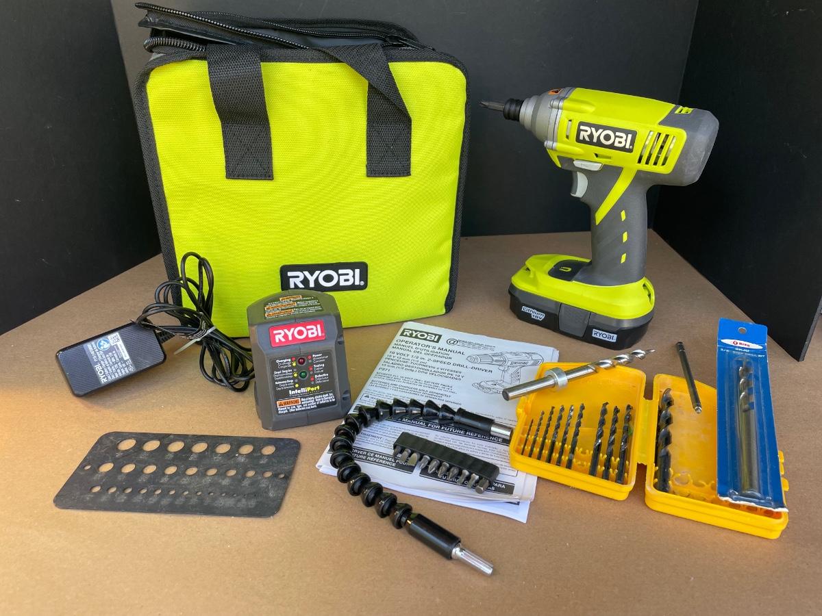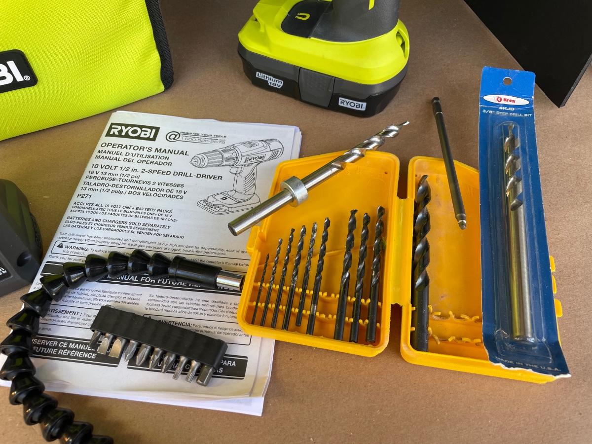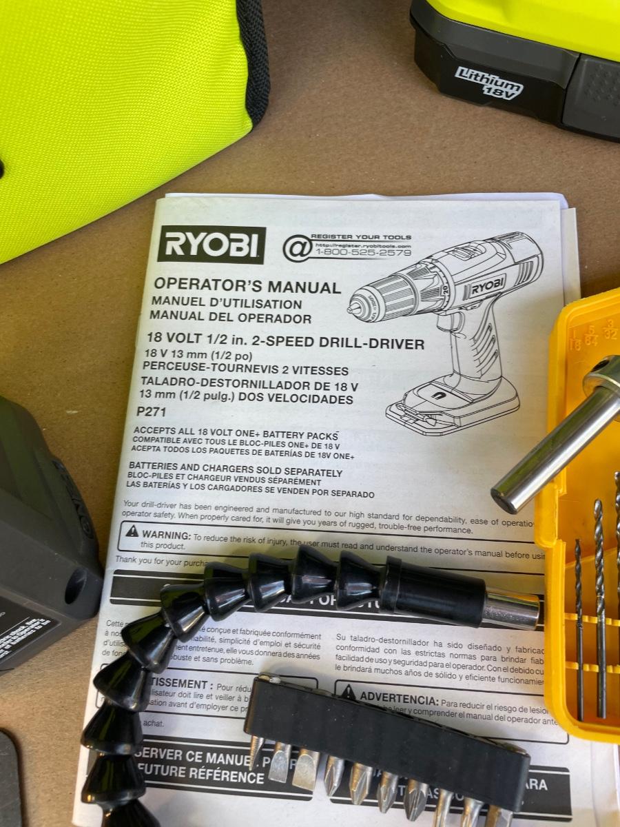 Lot 40 Ryobi 18v Cordless Drill with Charger and Bits