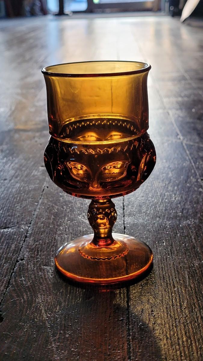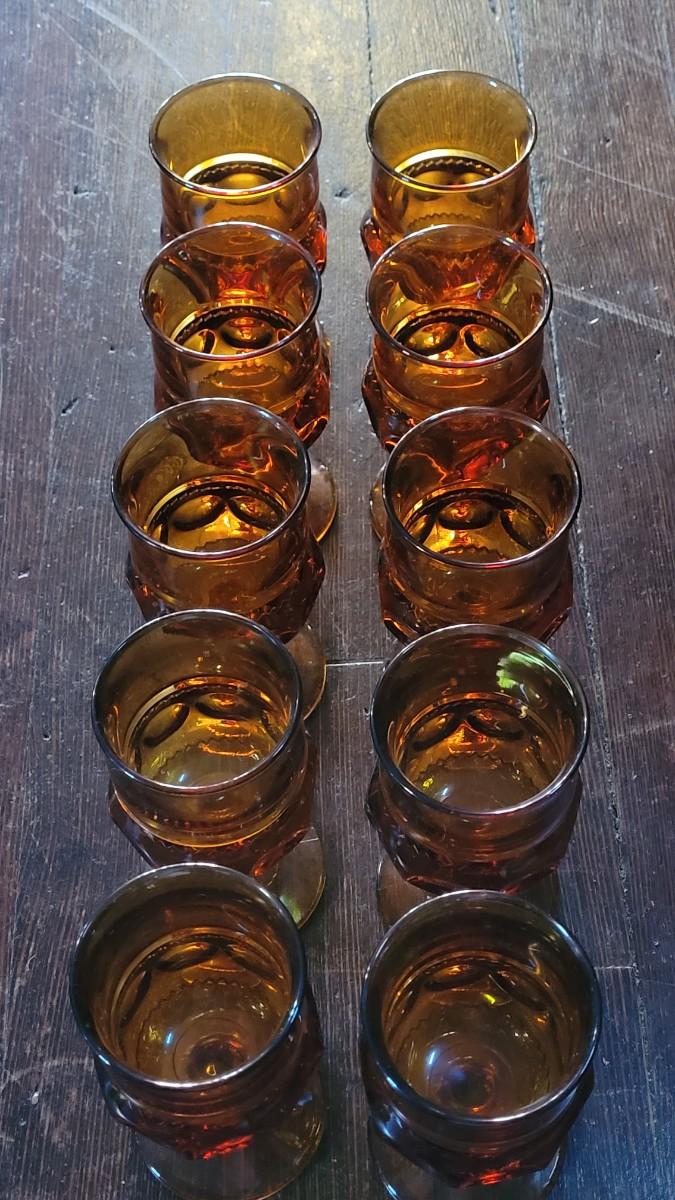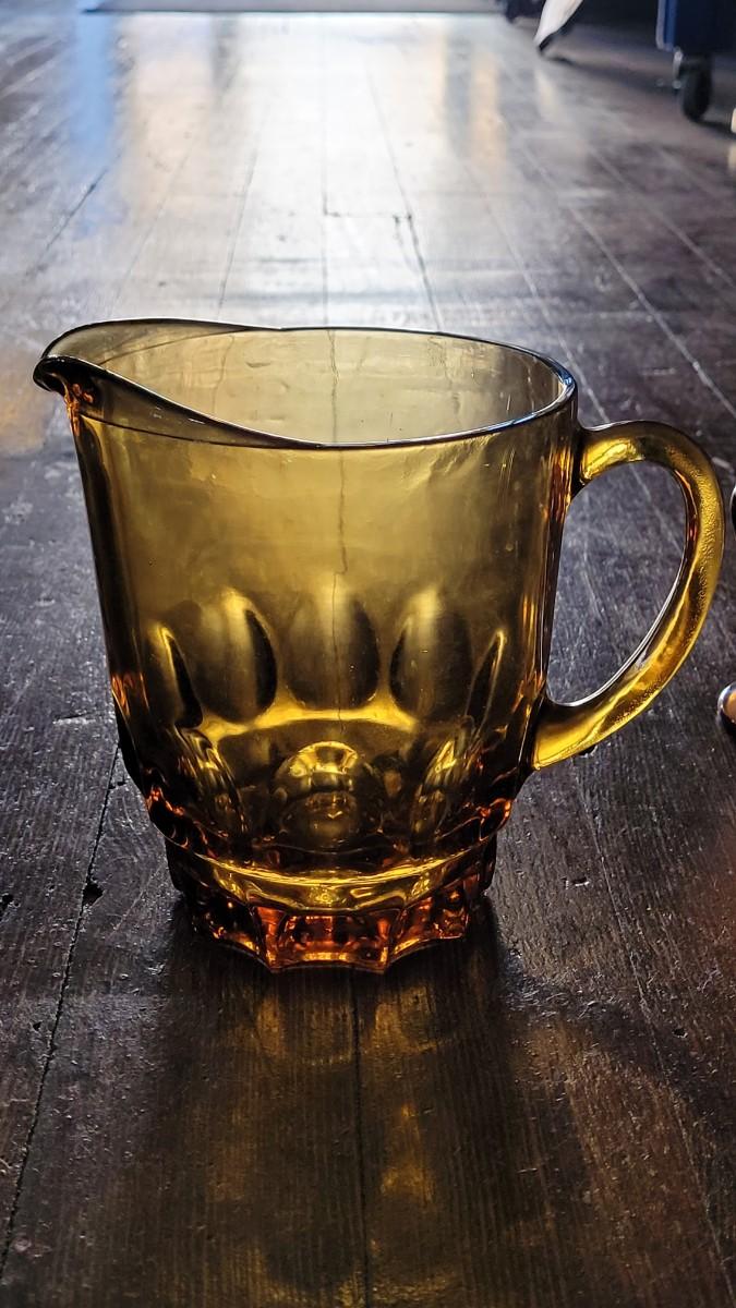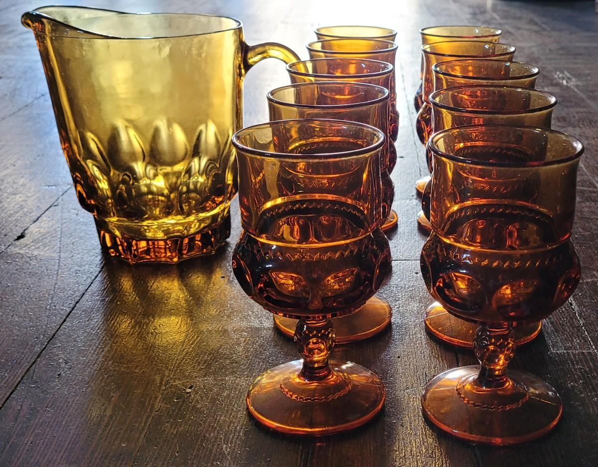 Lot 40: Vintage Amber Glass Pitcher & Goblets