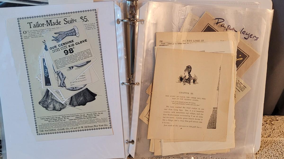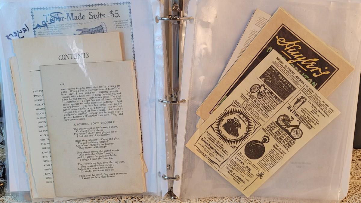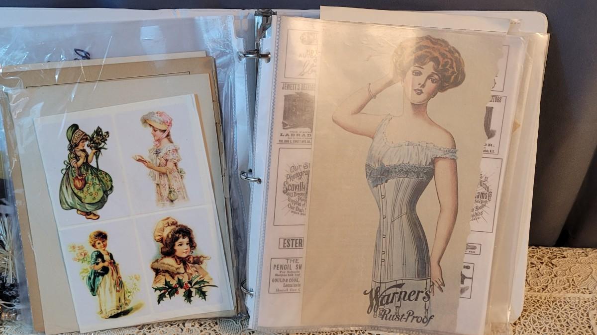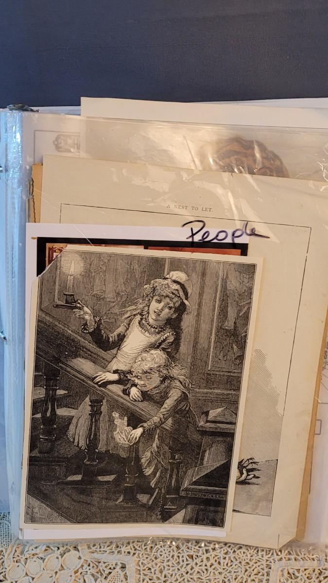 Lot 40: Binder Filled with Antique & Vintage Paper Ephemera of People, Book Pages and Some Advertising