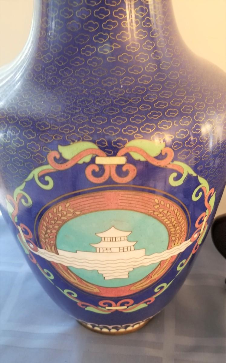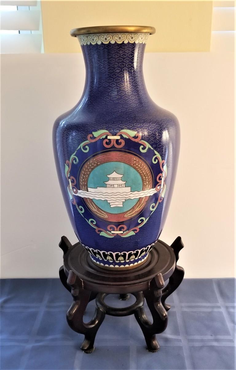 Lot #40  Asian Style Cloisonne/Enamel Vase on Stand