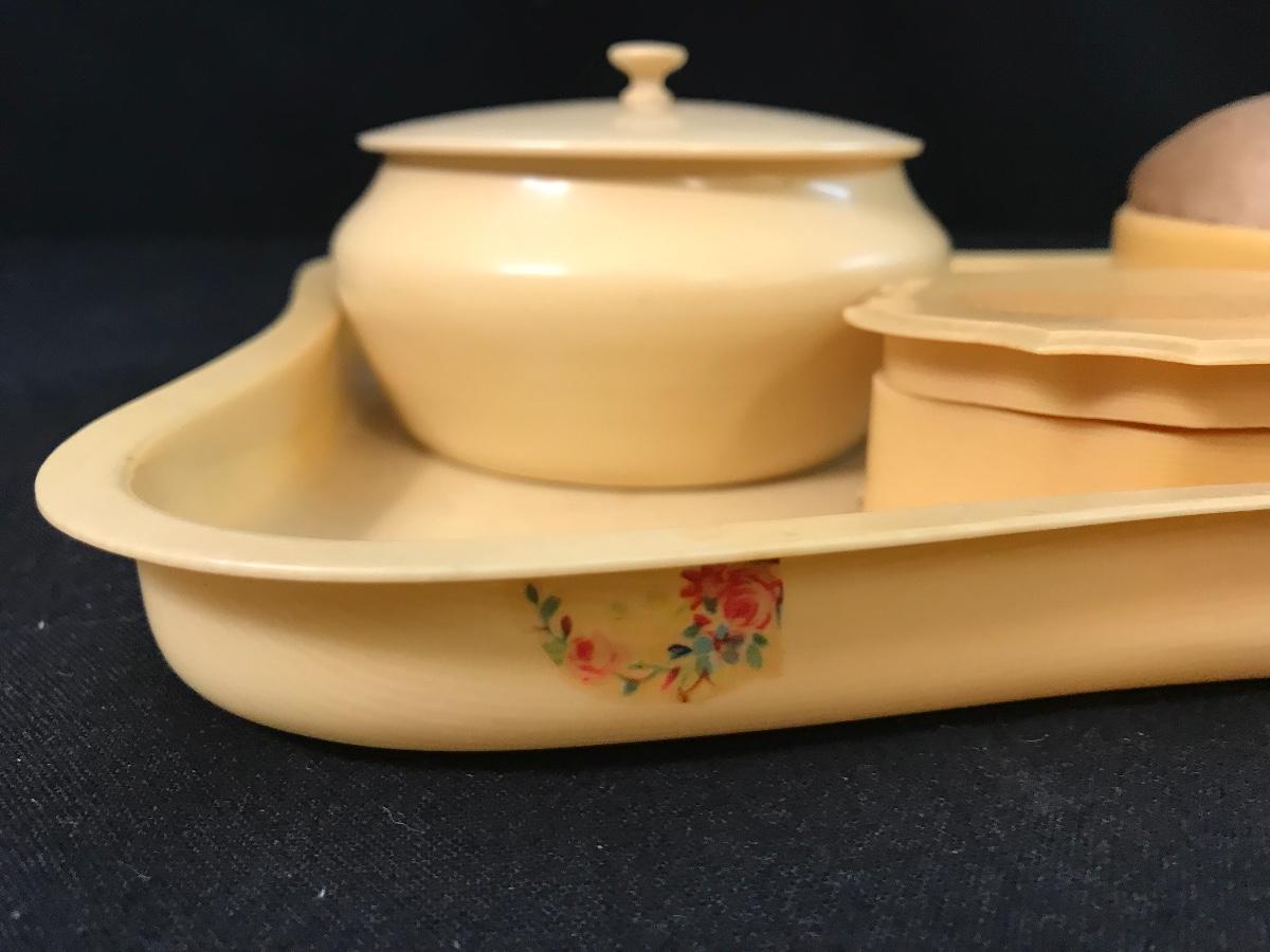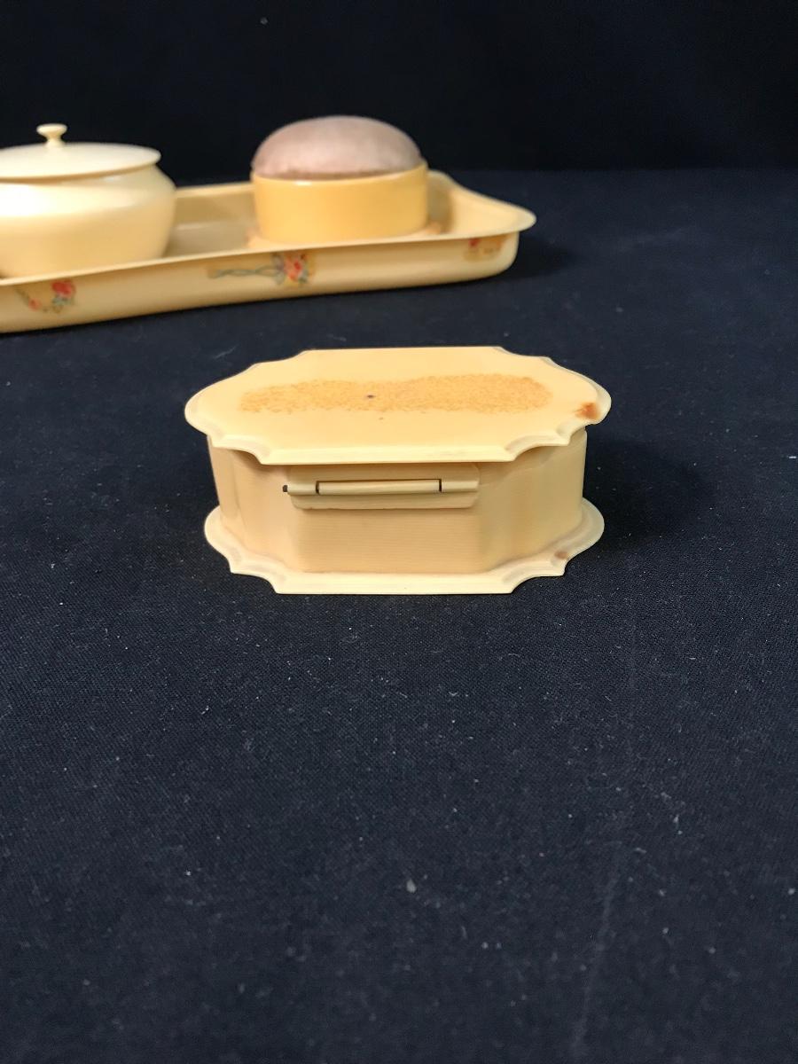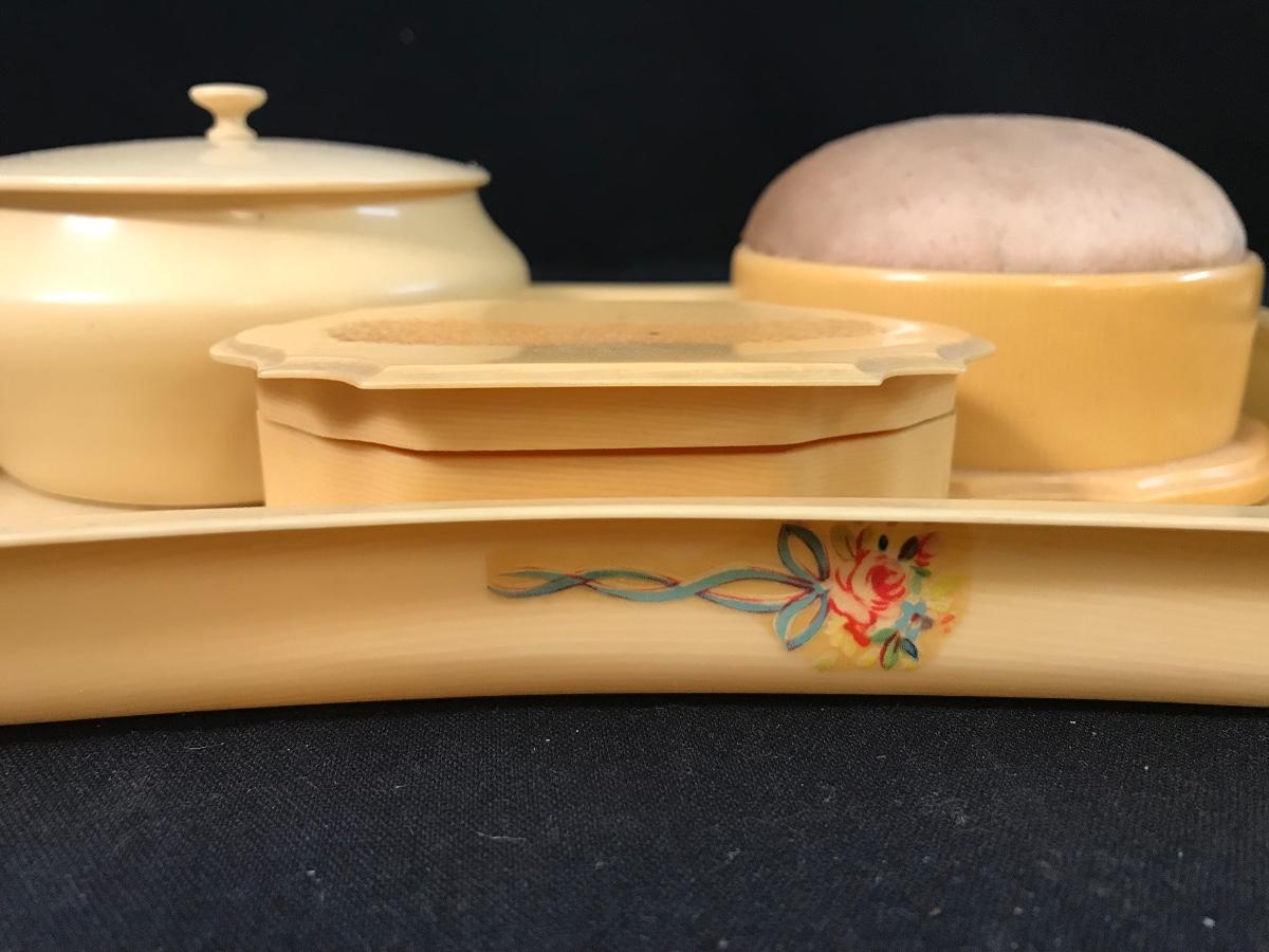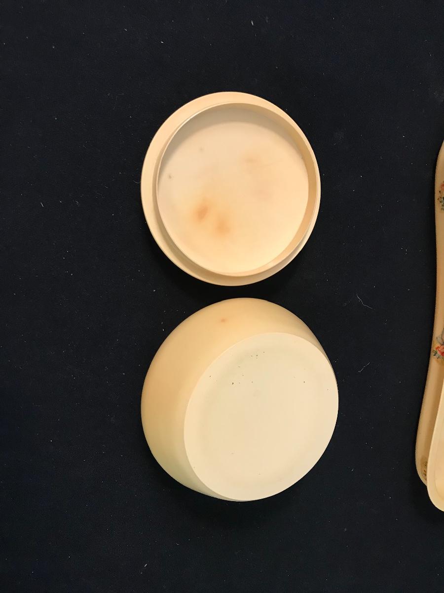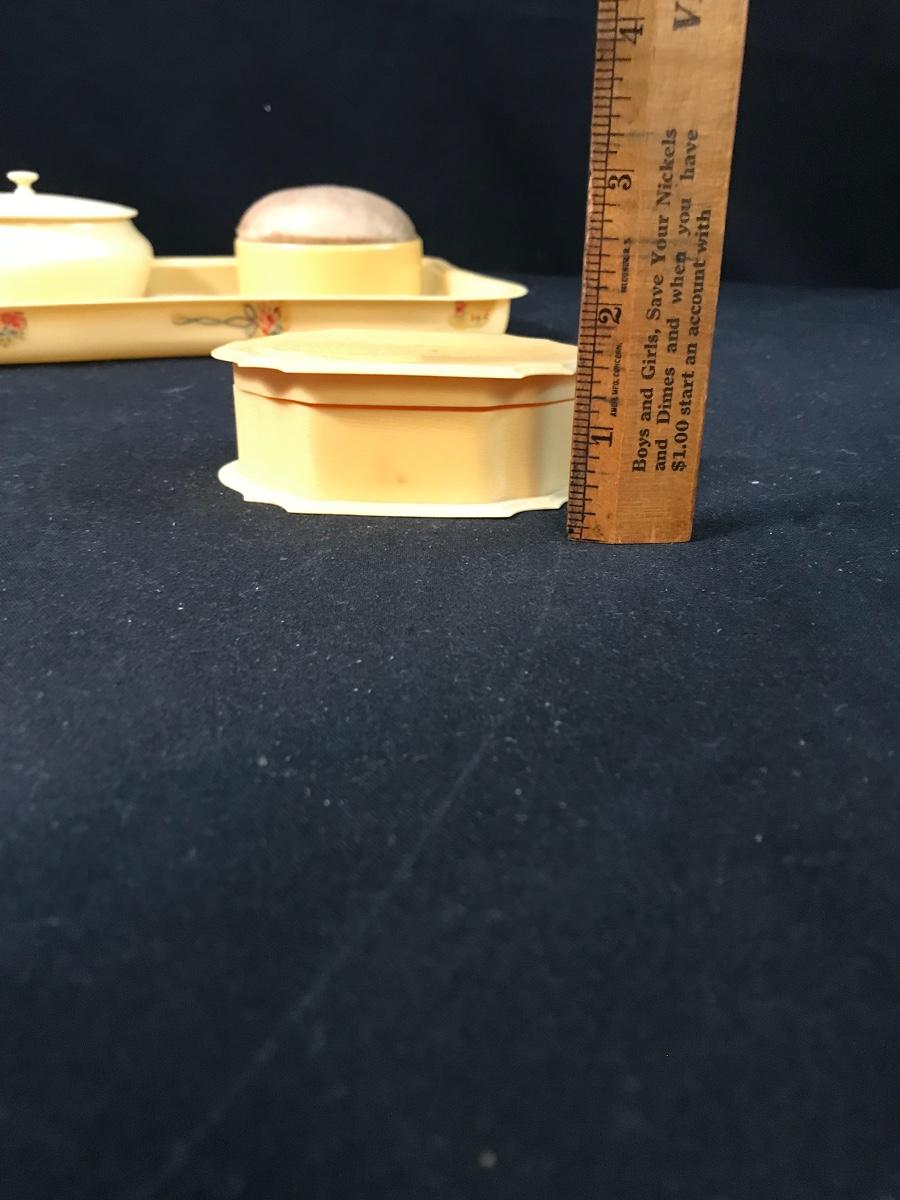 Celluloid Vanity Sets. Please see all pictures as they are the best representation of the items. The pictures show condition, measurements if taken, and what is included in the lot. Due to the large amount that we photograph and the time frame, we are not always able to take measurements. All items unless noted, are pre-owned and have been used. If you purchased furniture, you must bring help. We do not allow one person to carry large furniture out on their own. Bring help, tools and a truck for the safety of our client’s homes, and your personal safety. Company policy. Thank you.