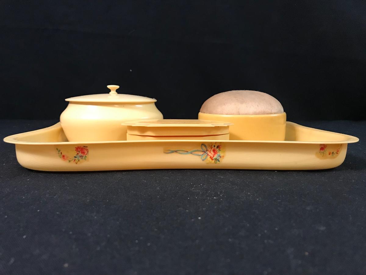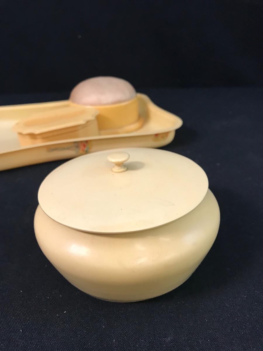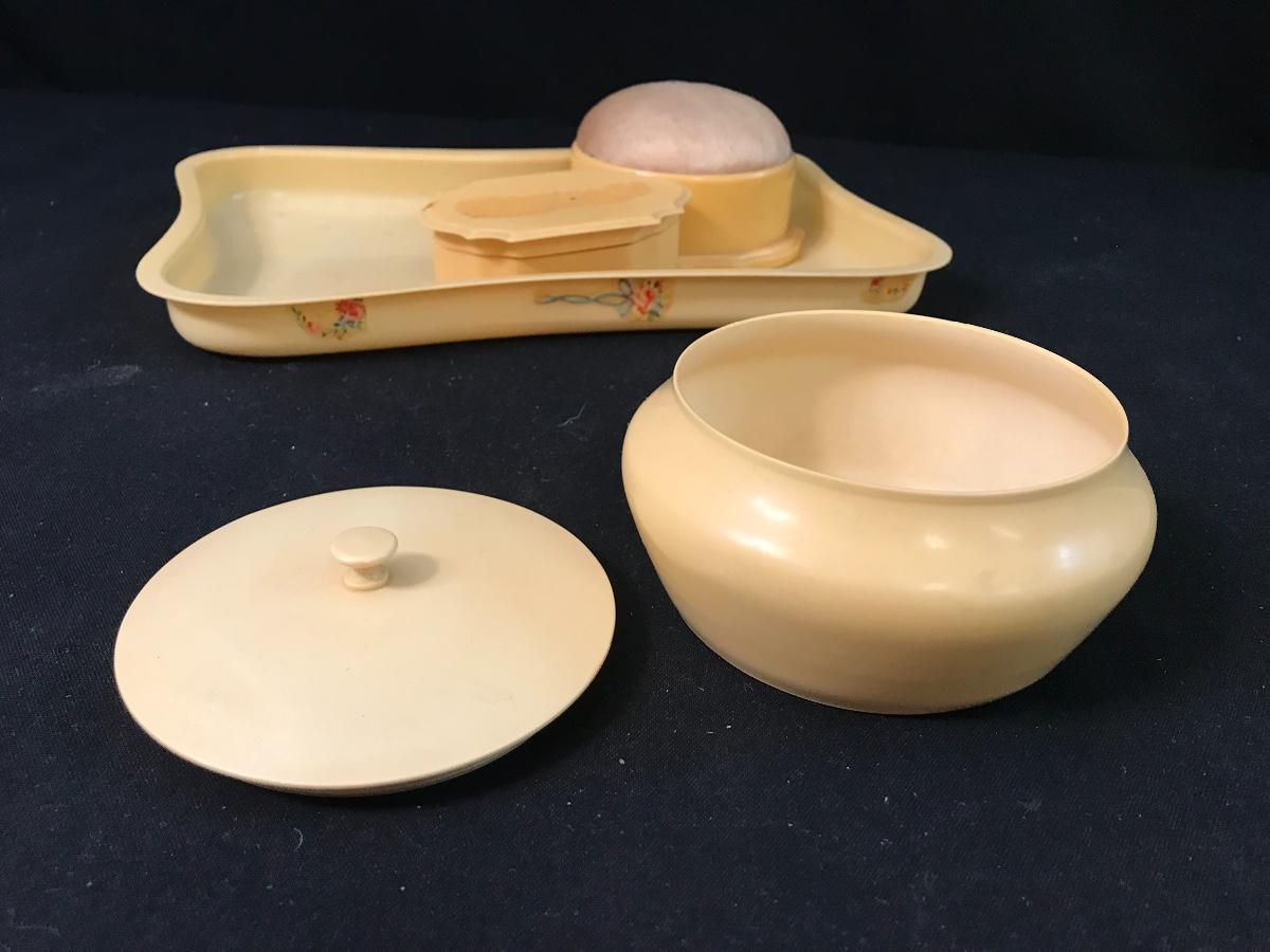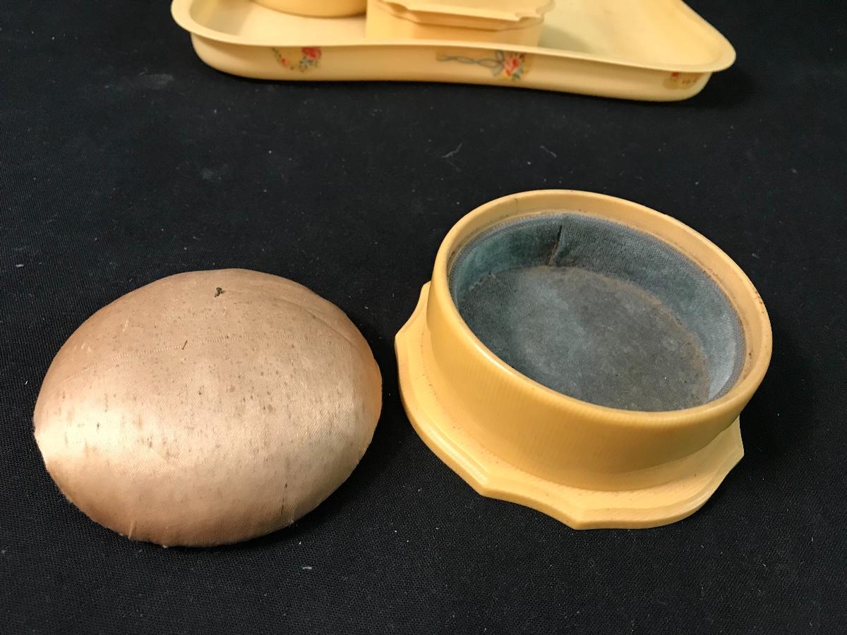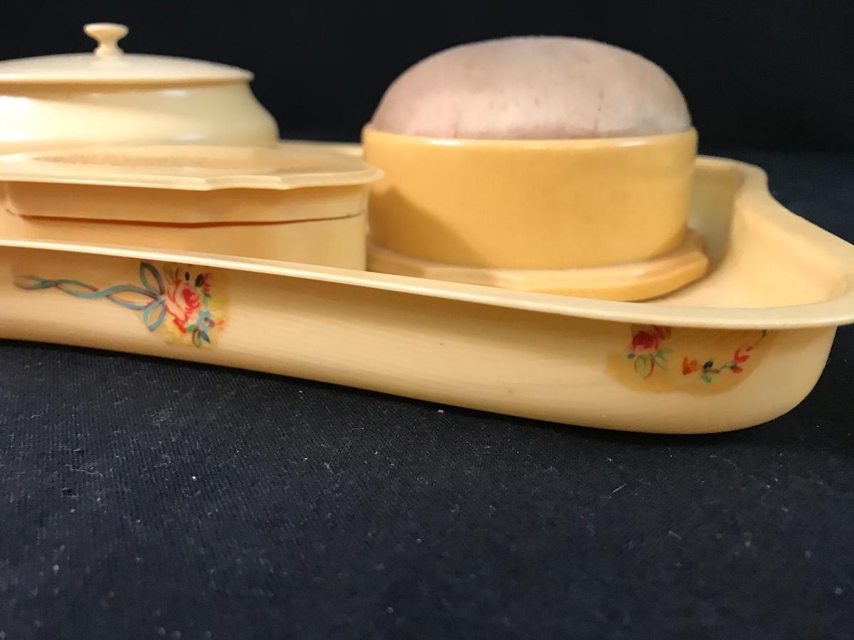 Celluloid Vanity Sets. Please see all pictures as they are the best representation of the items. The pictures show condition, measurements if taken, and what is included in the lot. Due to the large amount that we photograph and the time frame, we are not always able to take measurements. All items unless noted, are pre-owned and have been used. If you purchased furniture, you must bring help. We do not allow one person to carry large furniture out on their own. Bring help, tools and a truck for the safety of our client’s homes, and your personal safety. Company policy. Thank you.