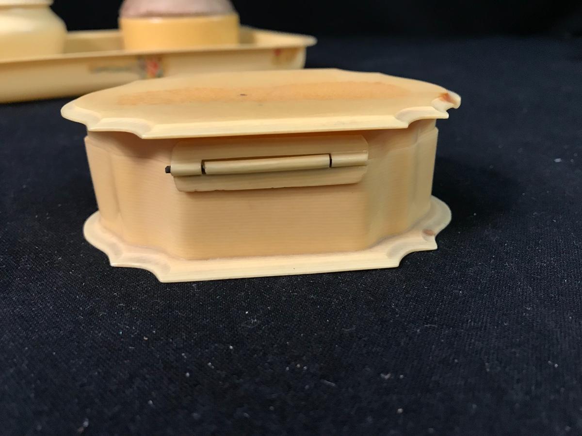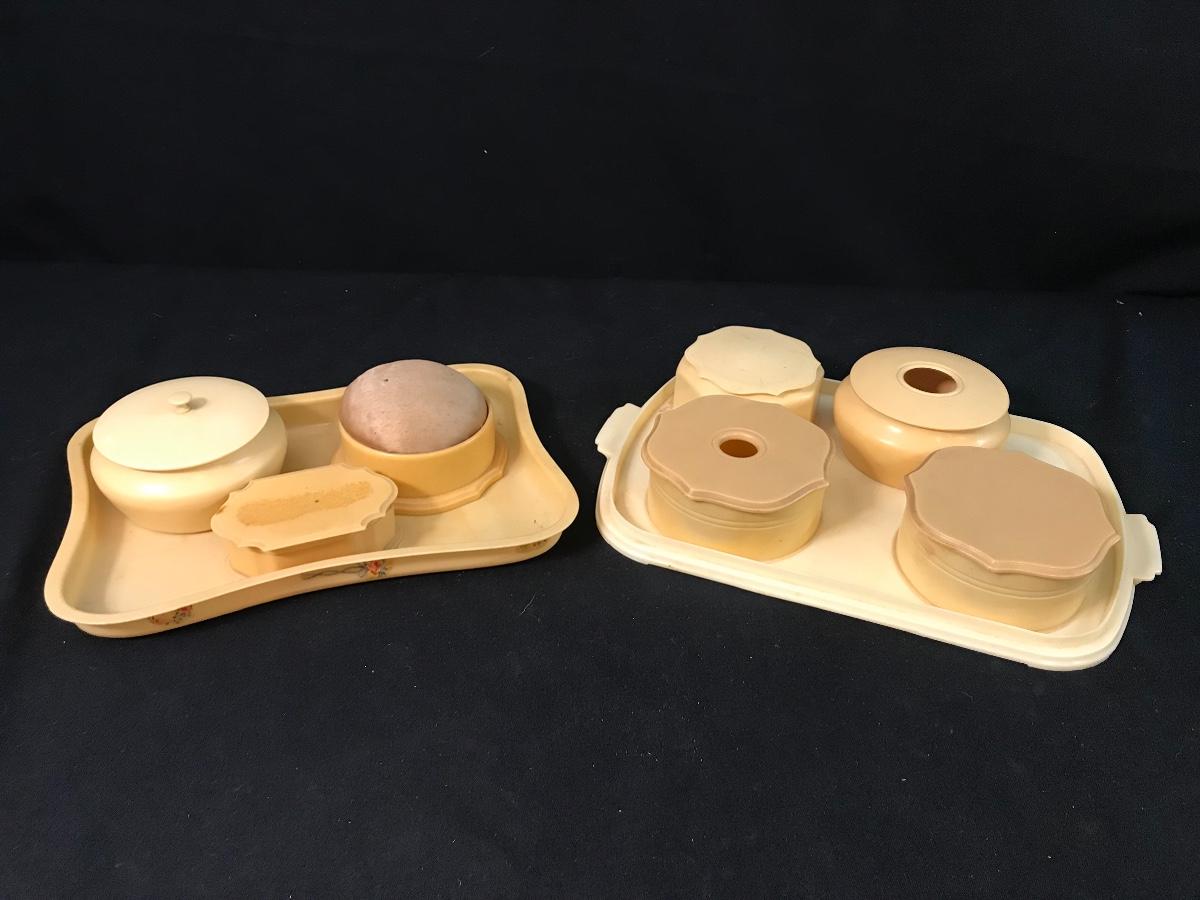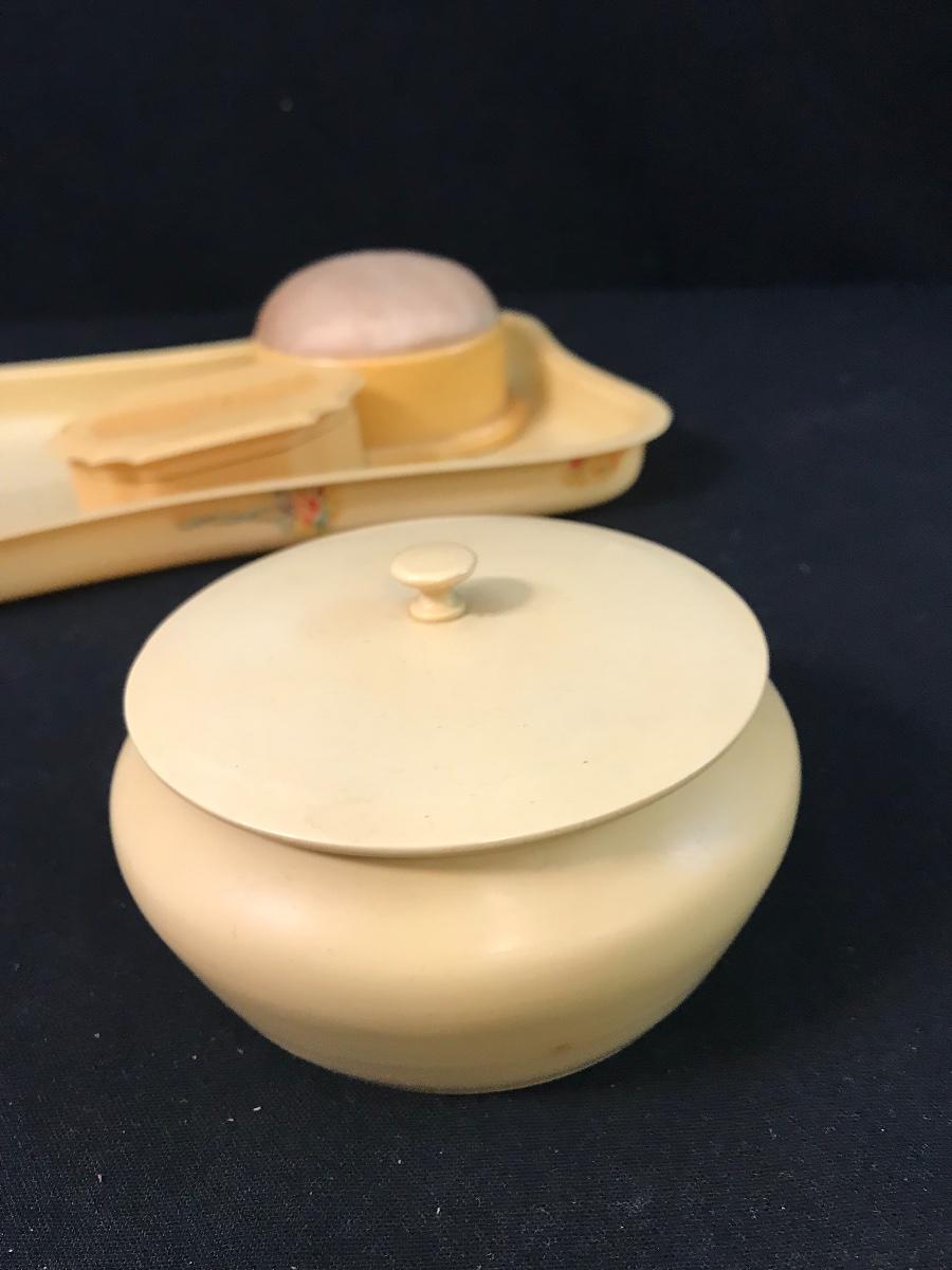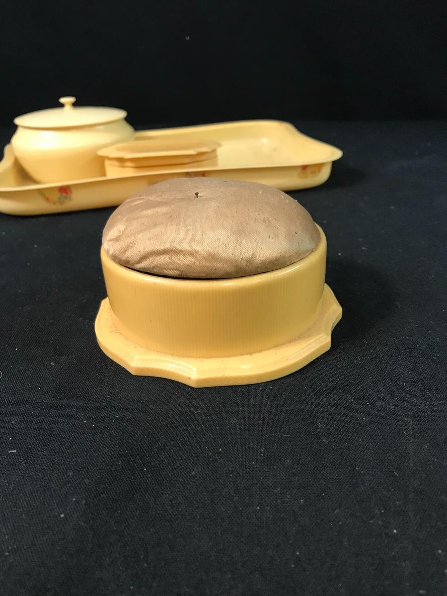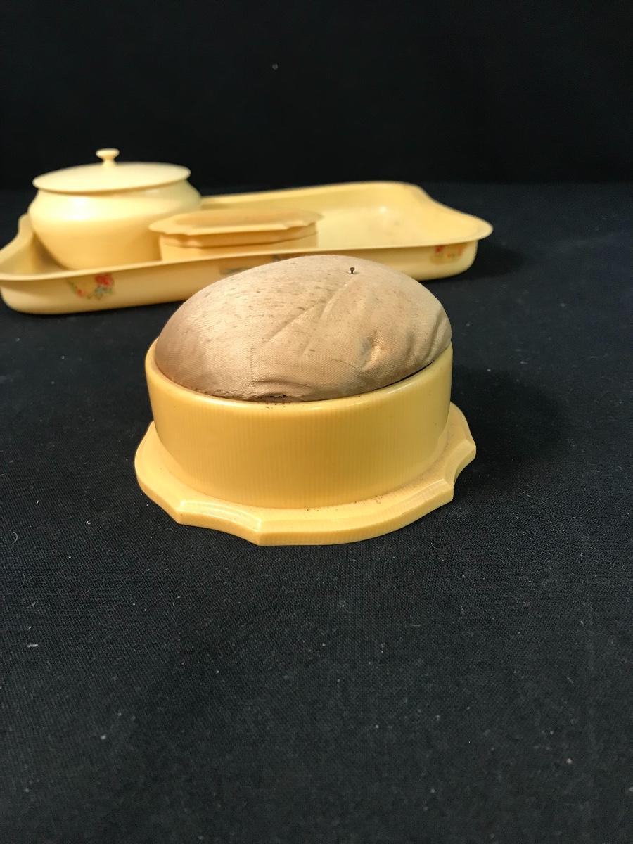 Celluloid Vanity Sets. Please see all pictures as they are the best representation of the items. The pictures show condition, measurements if taken, and what is included in the lot. Due to the large amount that we photograph and the time frame, we are not always able to take measurements. All items unless noted, are pre-owned and have been used. If you purchased furniture, you must bring help. We do not allow one person to carry large furniture out on their own. Bring help, tools and a truck for the safety of our client’s homes, and your personal safety. Company policy. Thank you.