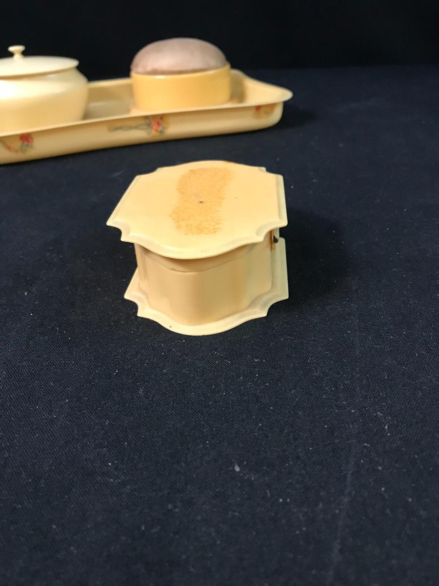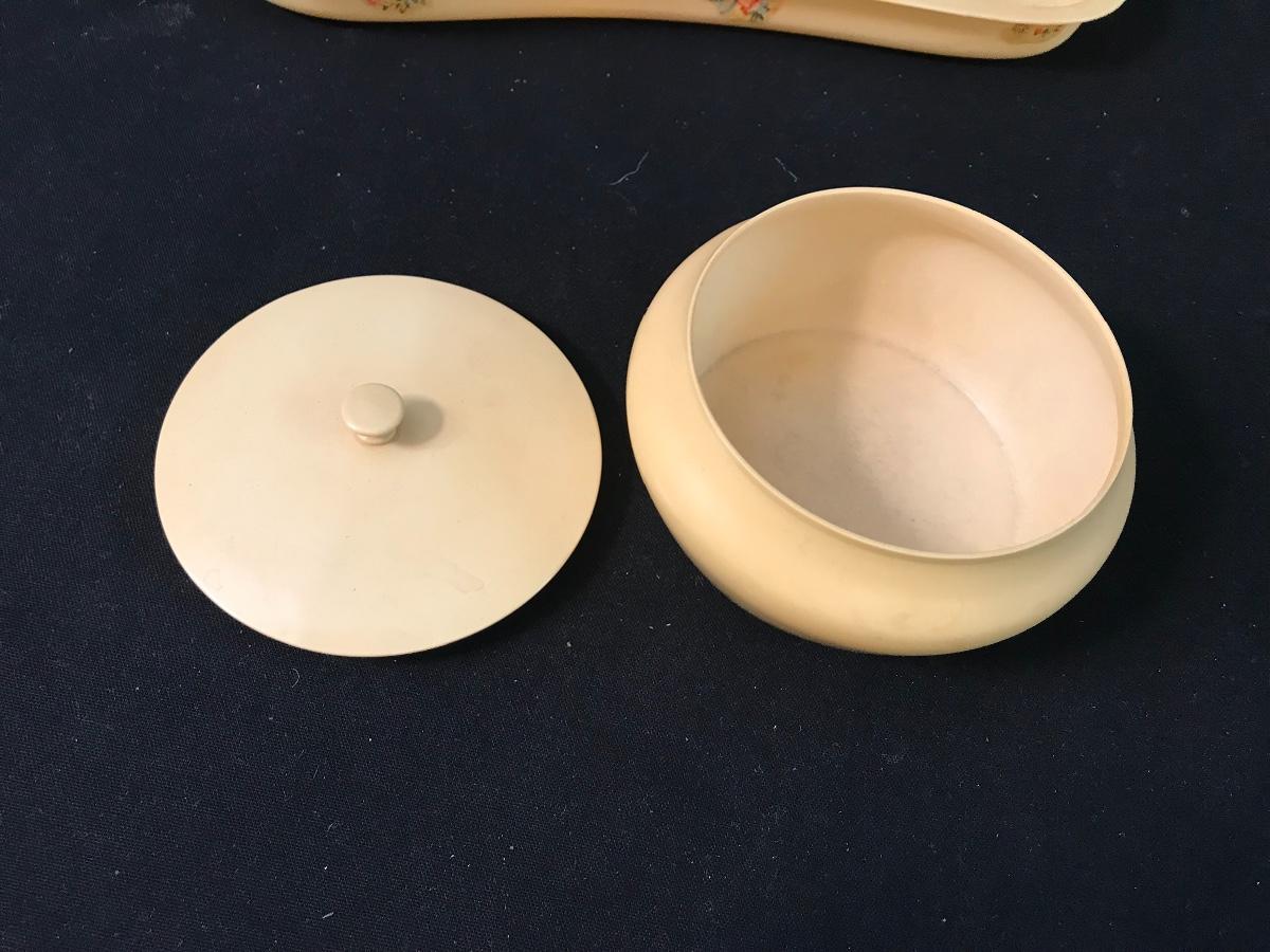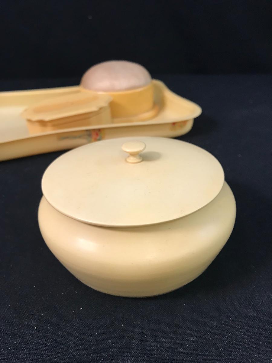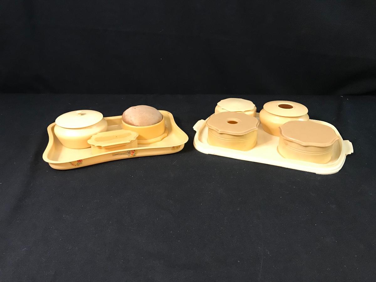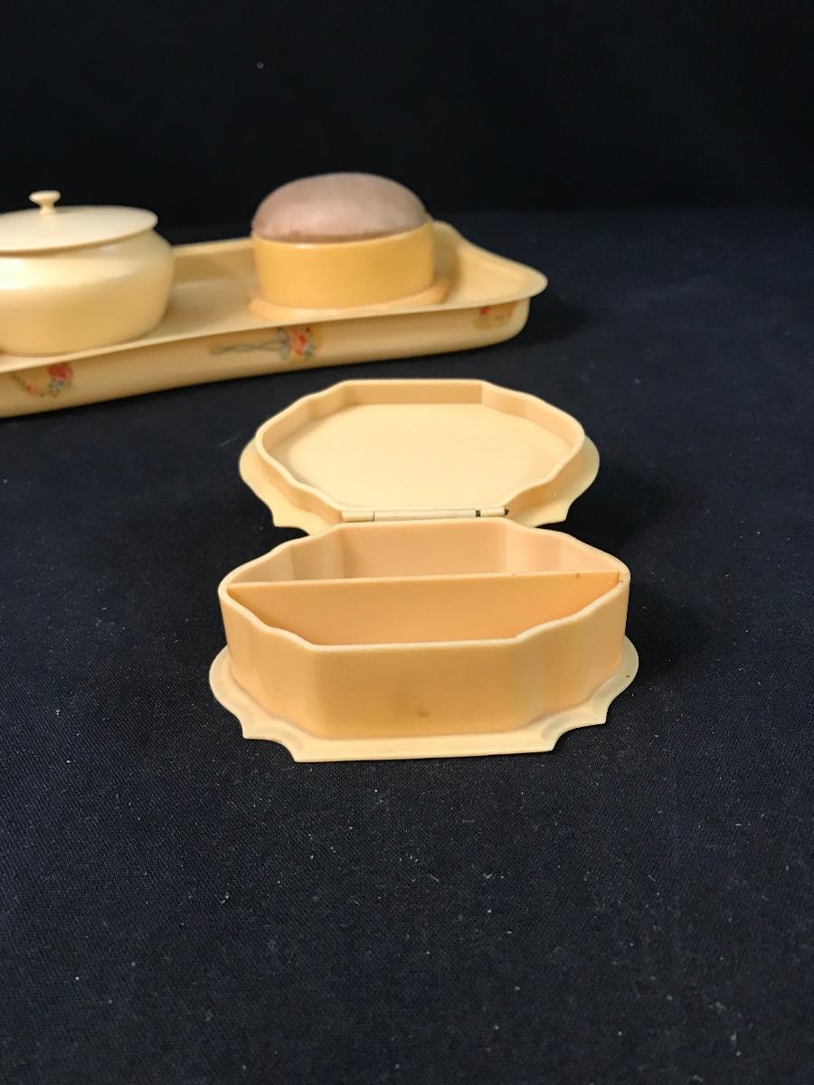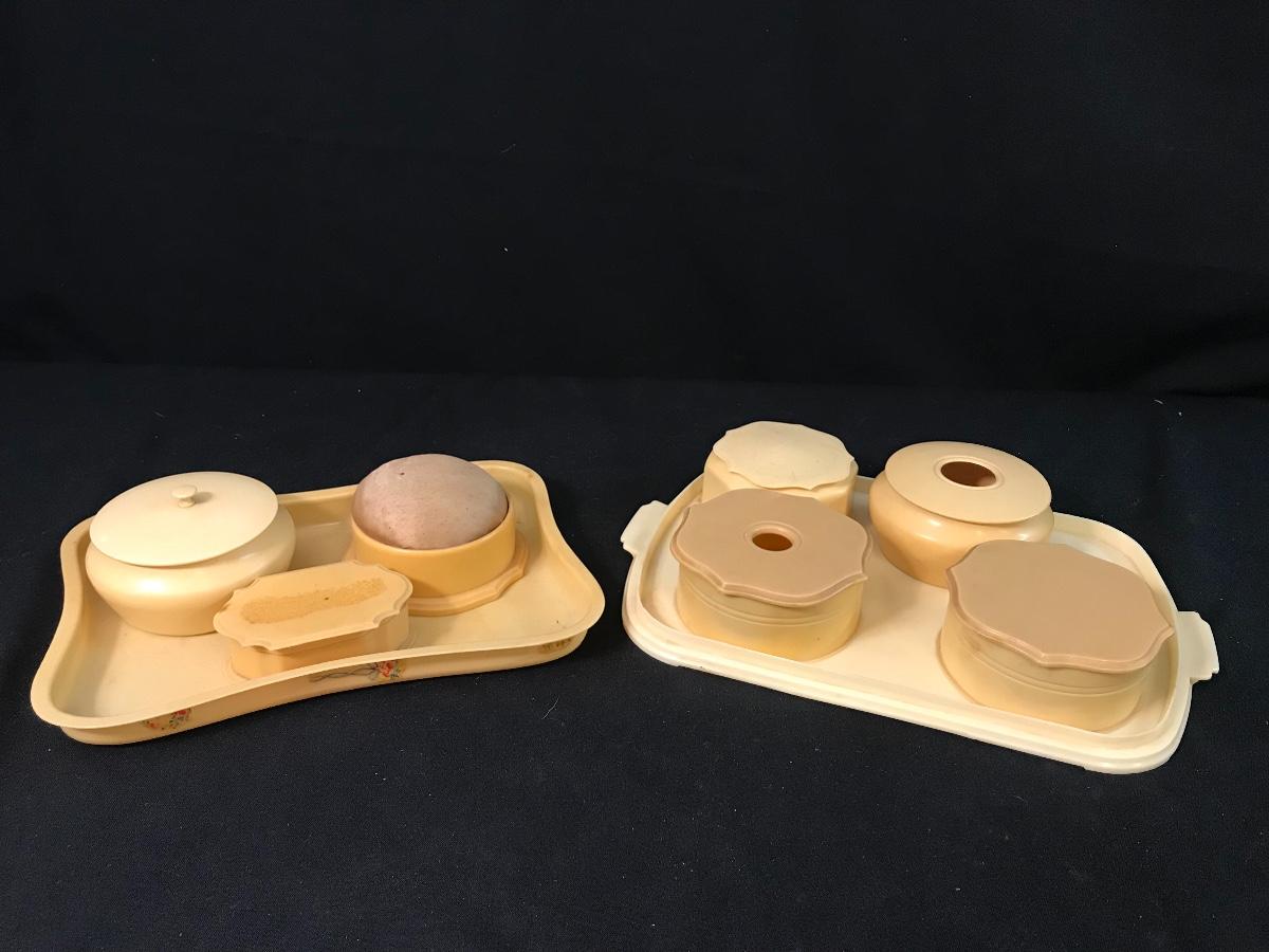 Celluloid Vanity Sets. Please see all pictures as they are the best representation of the items. The pictures show condition, measurements if taken, and what is included in the lot. Due to the large amount that we photograph and the time frame, we are not always able to take measurements. All items unless noted, are pre-owned and have been used. If you purchased furniture, you must bring help. We do not allow one person to carry large furniture out on their own. Bring help, tools and a truck for the safety of our client’s homes, and your personal safety. Company policy. Thank you.