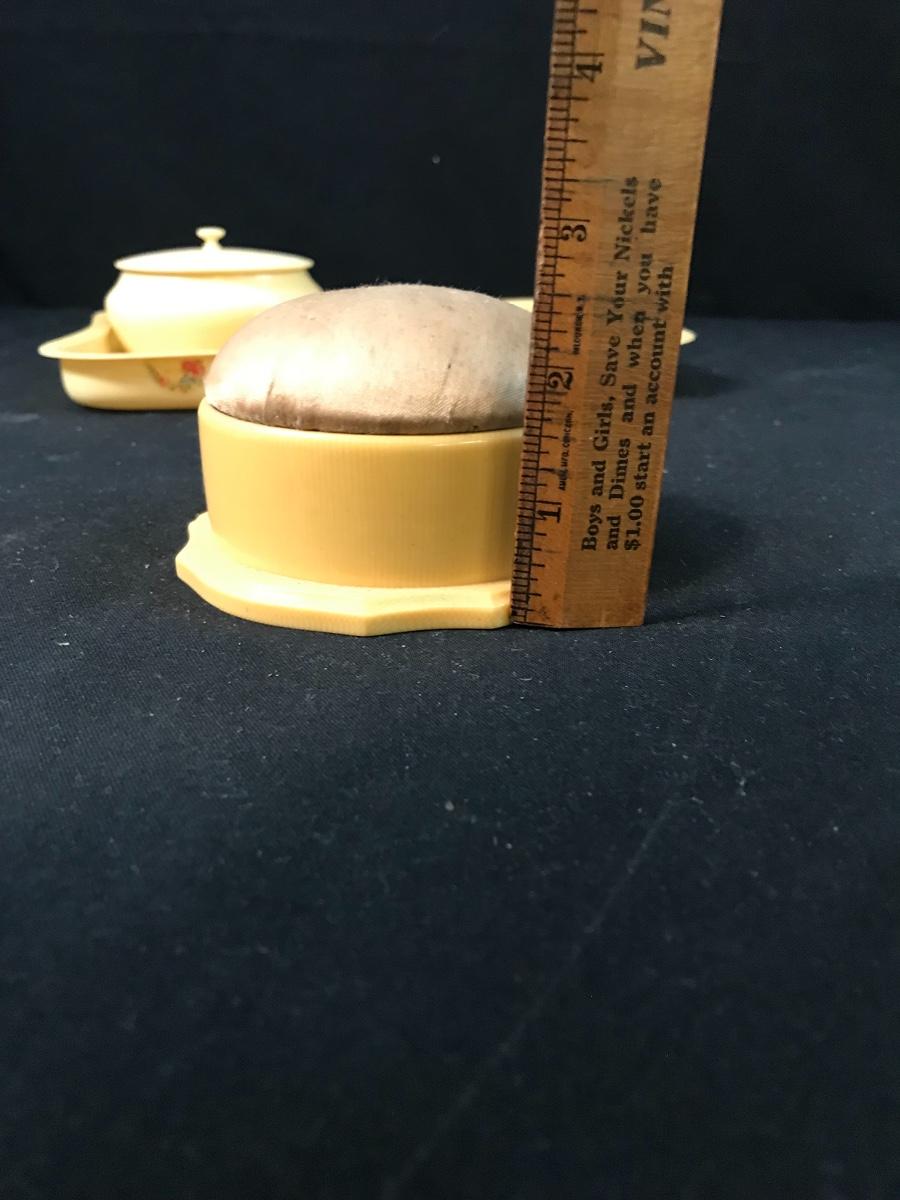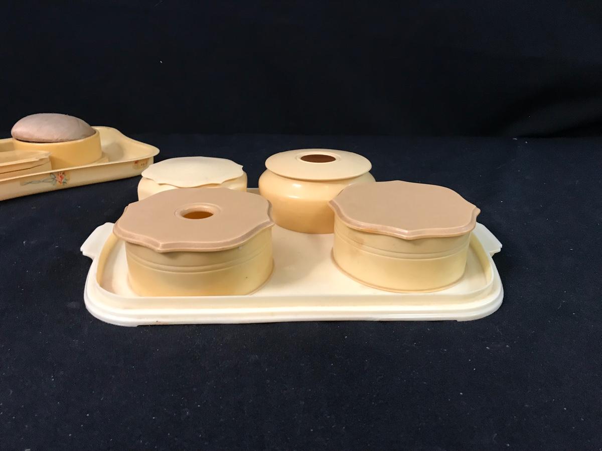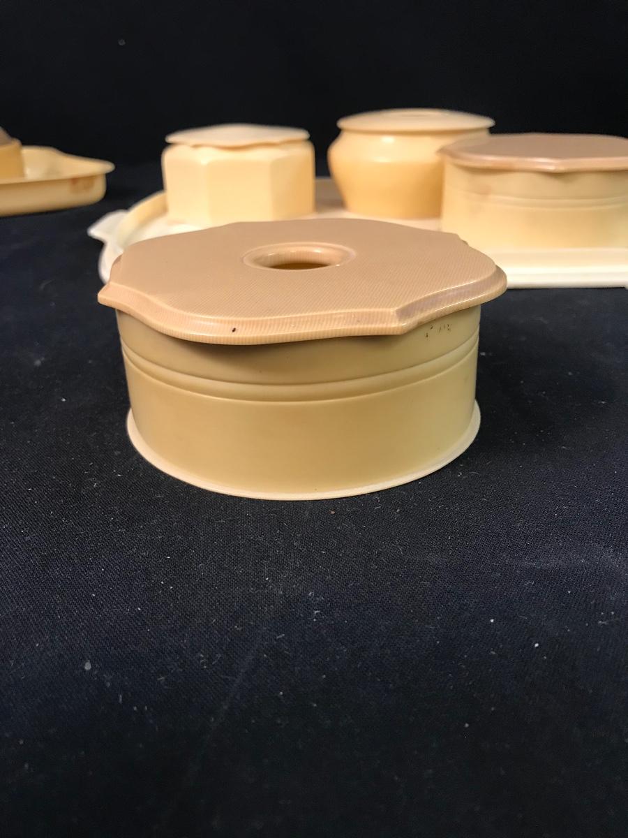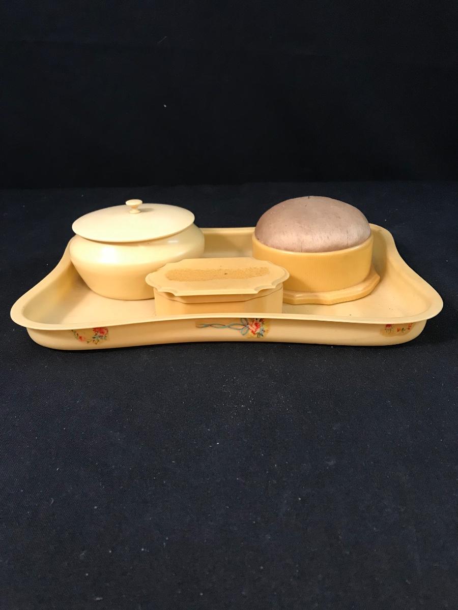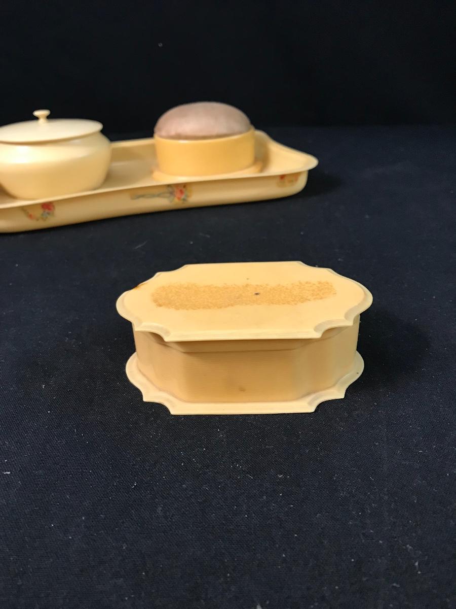 Celluloid Vanity Sets. Please see all pictures as they are the best representation of the items. The pictures show condition, measurements if taken, and what is included in the lot. Due to the large amount that we photograph and the time frame, we are not always able to take measurements. All items unless noted, are pre-owned and have been used. If you purchased furniture, you must bring help. We do not allow one person to carry large furniture out on their own. Bring help, tools and a truck for the safety of our client’s homes, and your personal safety. Company policy. Thank you.