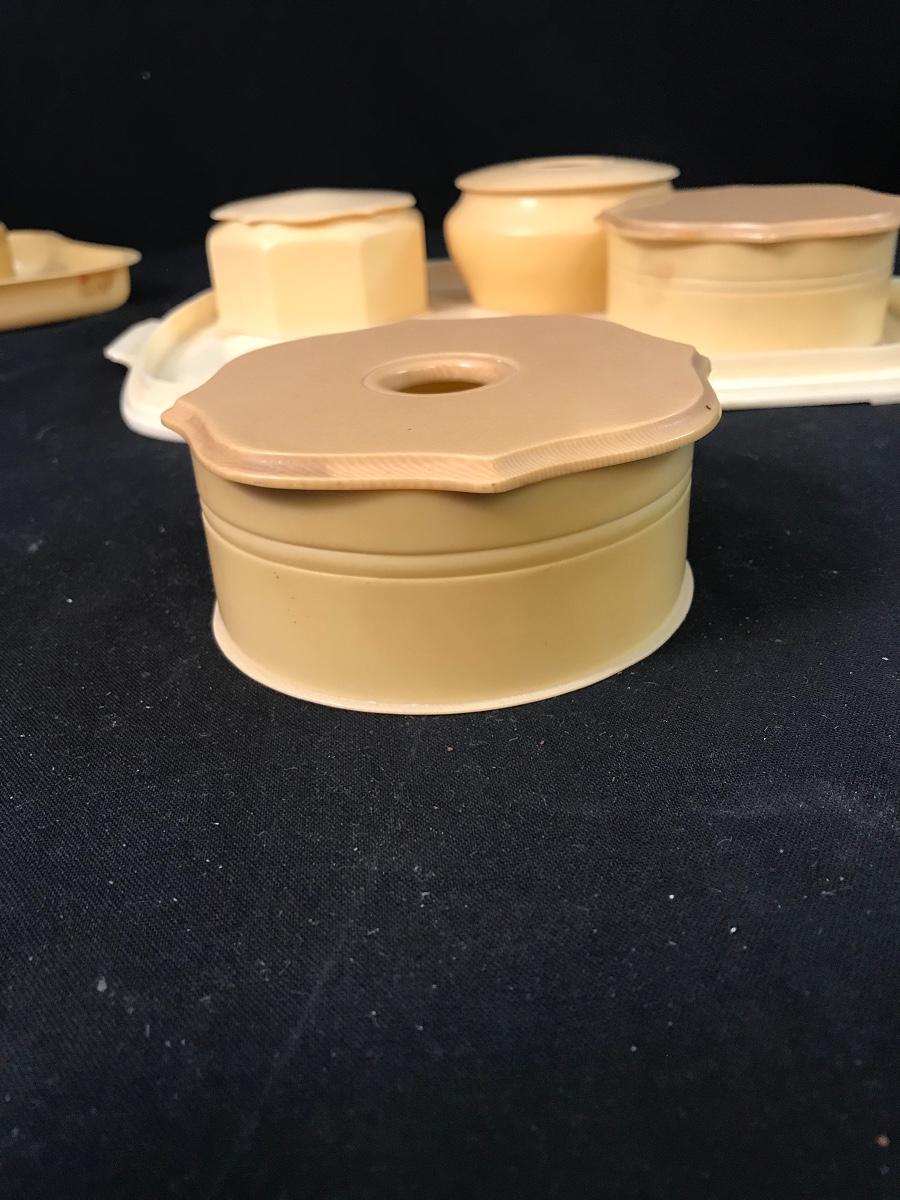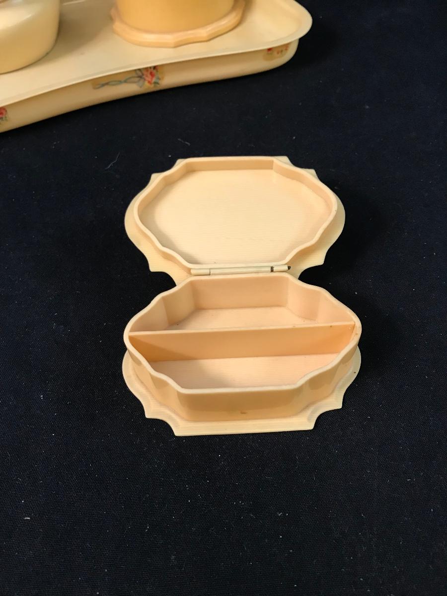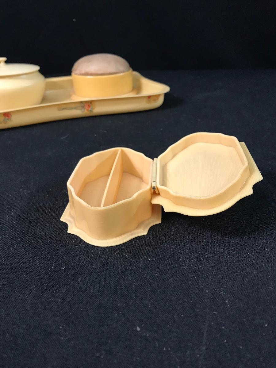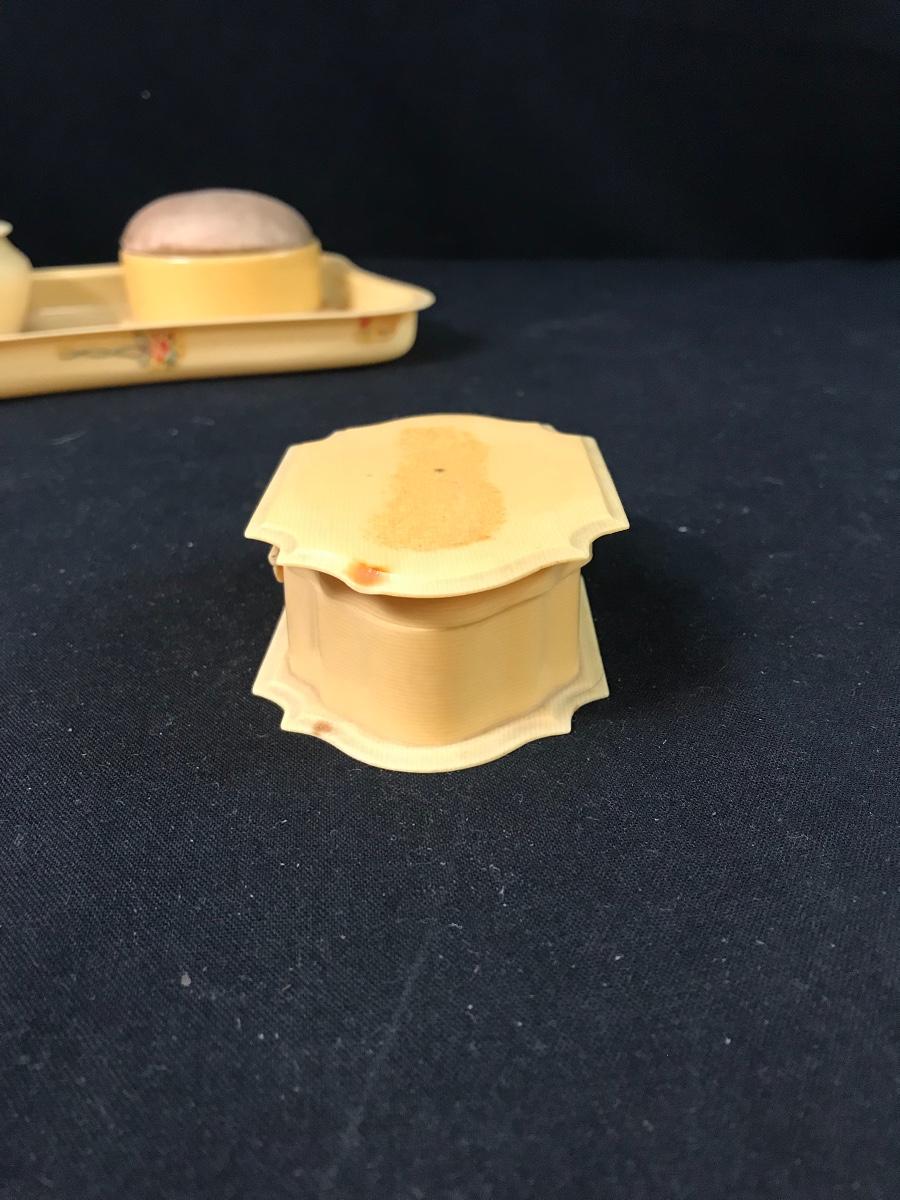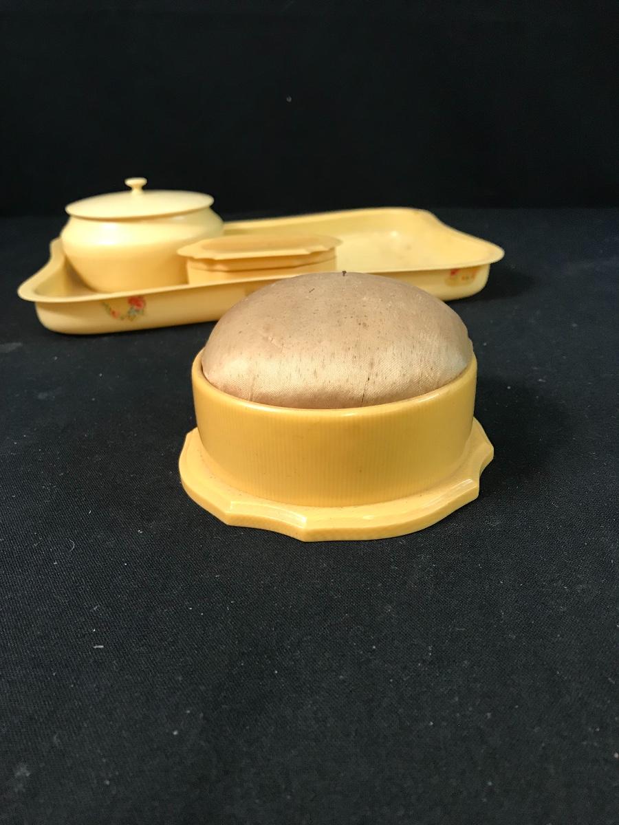 Celluloid Vanity Sets. Please see all pictures as they are the best representation of the items. The pictures show condition, measurements if taken, and what is included in the lot. Due to the large amount that we photograph and the time frame, we are not always able to take measurements. All items unless noted, are pre-owned and have been used. If you purchased furniture, you must bring help. We do not allow one person to carry large furniture out on their own. Bring help, tools and a truck for the safety of our client’s homes, and your personal safety. Company policy. Thank you.
