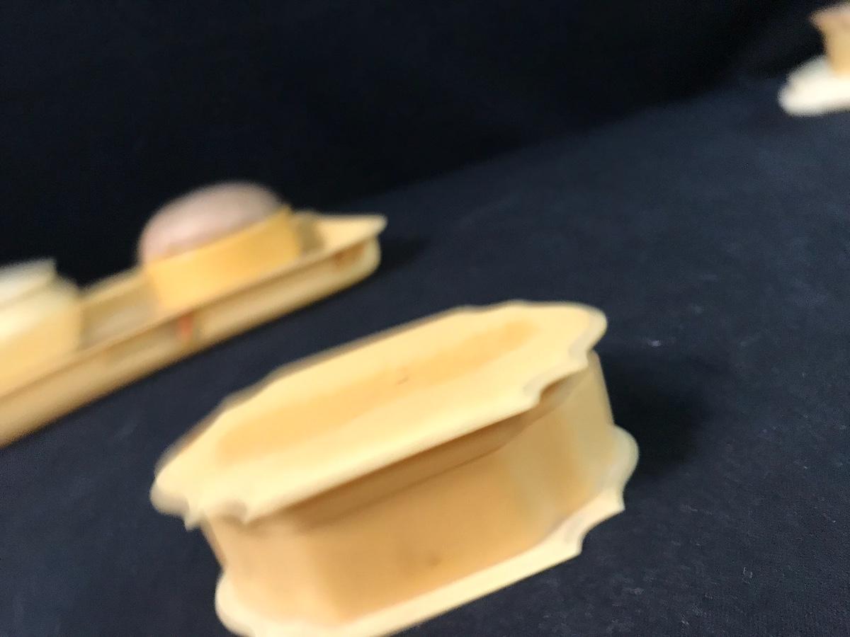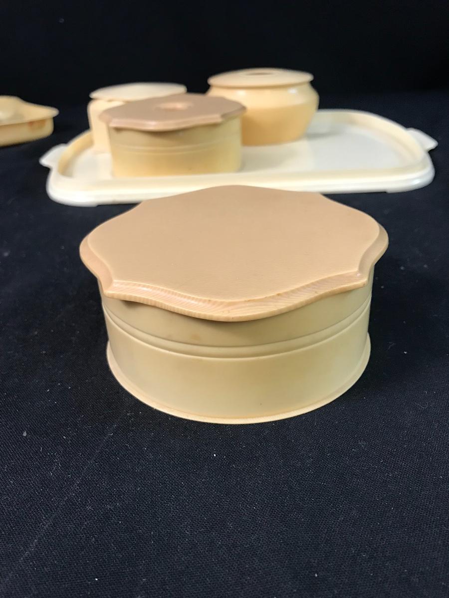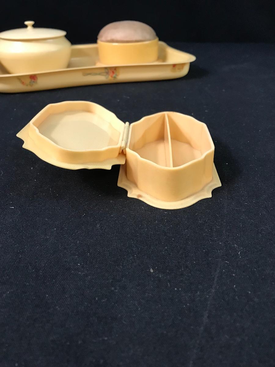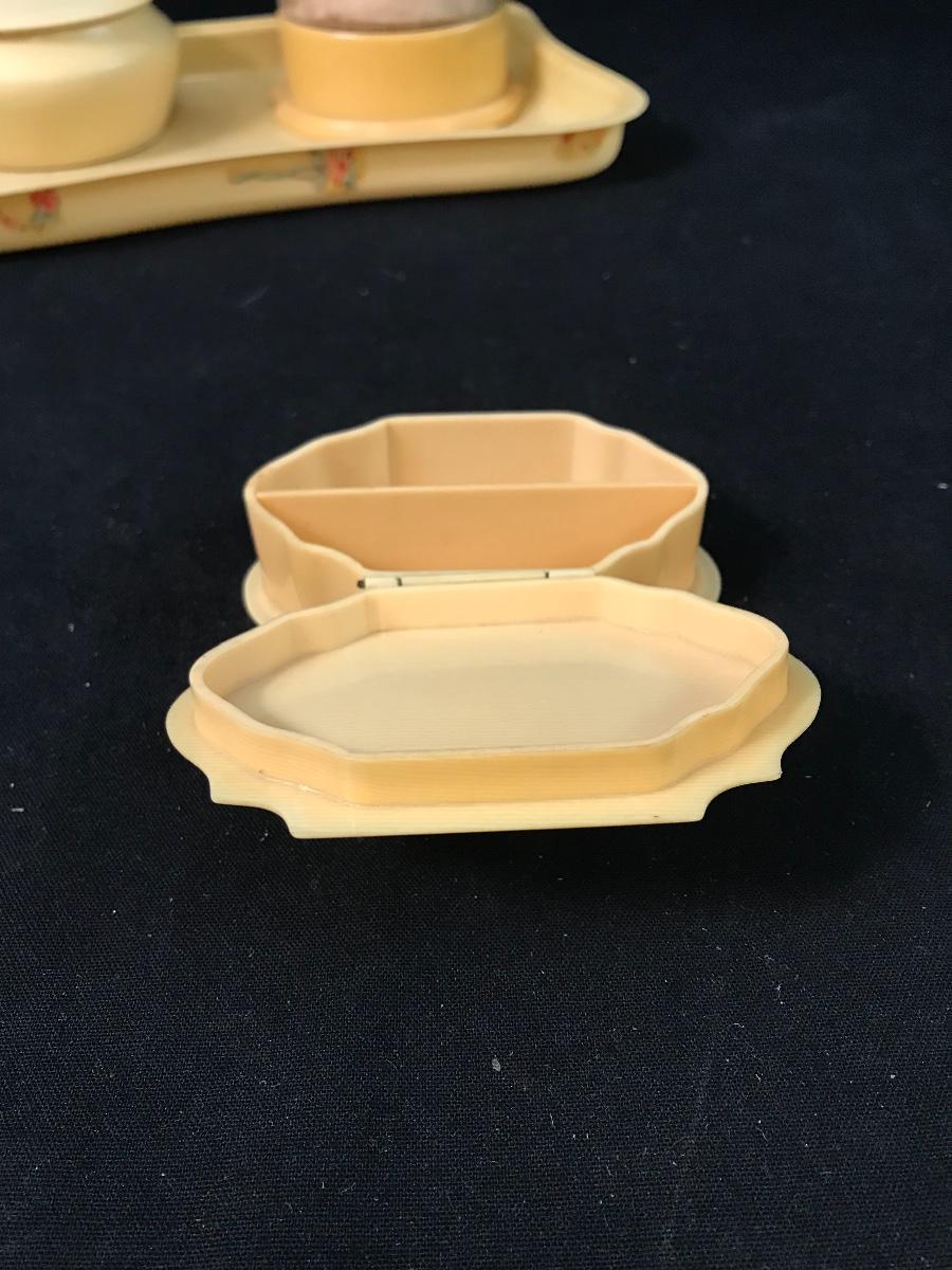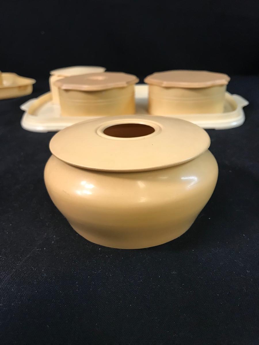 Celluloid Vanity Sets. Please see all pictures as they are the best representation of the items. The pictures show condition, measurements if taken, and what is included in the lot. Due to the large amount that we photograph and the time frame, we are not always able to take measurements. All items unless noted, are pre-owned and have been used. If you purchased furniture, you must bring help. We do not allow one person to carry large furniture out on their own. Bring help, tools and a truck for the safety of our client’s homes, and your personal safety. Company policy. Thank you.