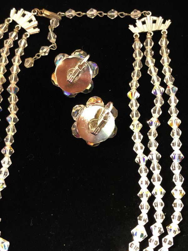 These came to me together, but in looking at the glass beads, I don't believe that they originated that way. Most of the beads on the necklace are pointed while the clip-on earrings are all round. But you will look so stunning wearing this set that no one will notice!