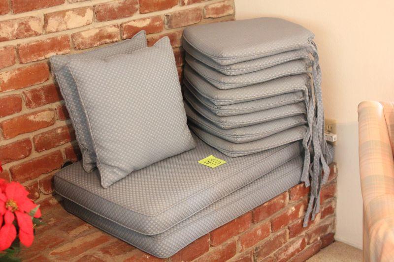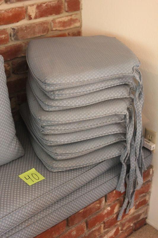 Lot 40 Custom Made Blue Bench Seats, Pillows, Chair Cushions
