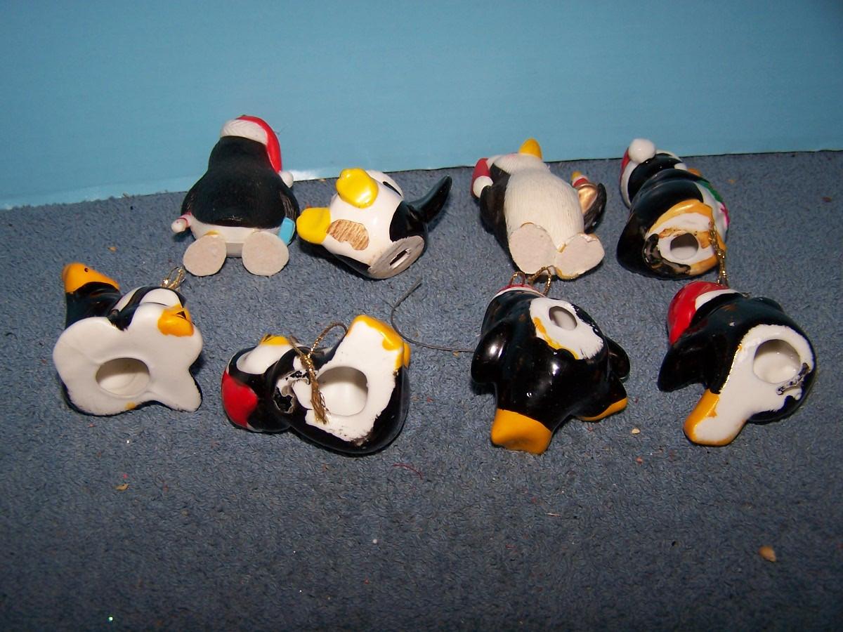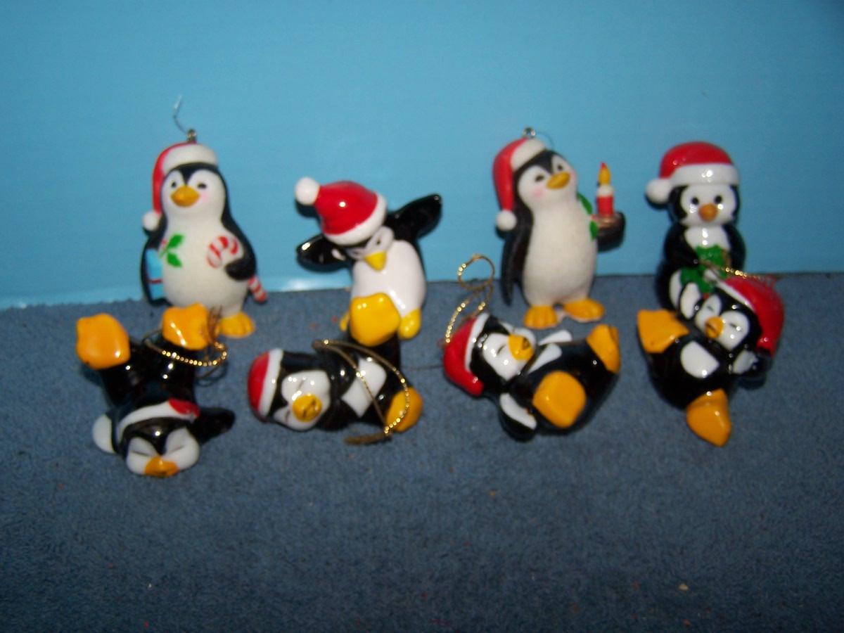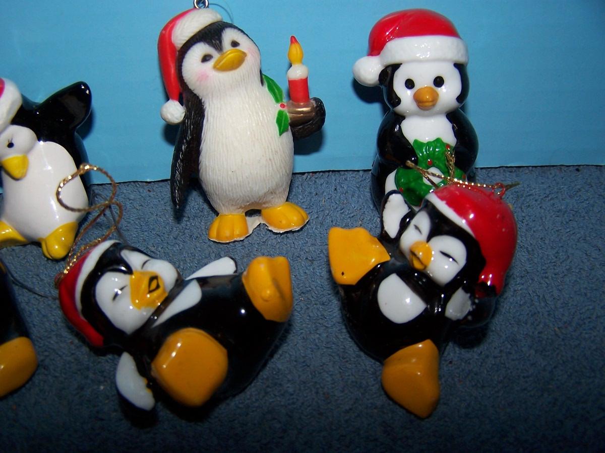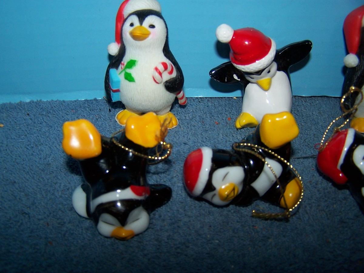 THESE ARE CUTE CHRISTMAS PENGUINS!!! 2 PLASTIC ONES ARE 3'' TALL.. REST ARE CERAMIC.. LIGHT WEAR..