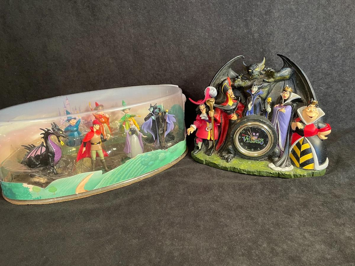 Lot 40  Disney Villains Clock plus Maleficent Figurines