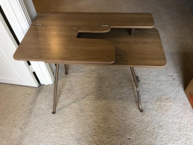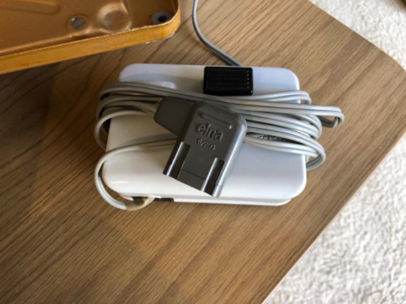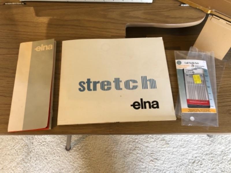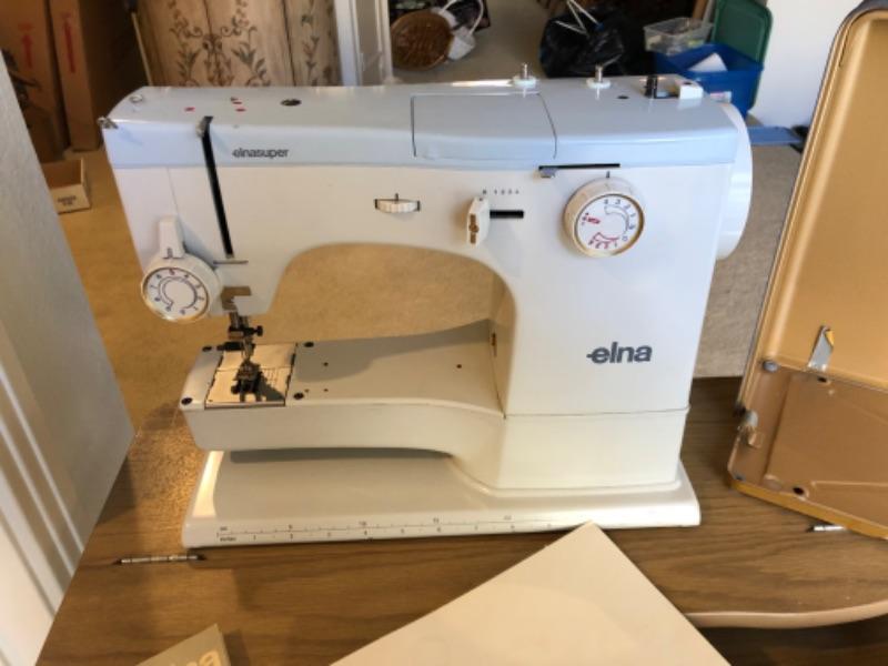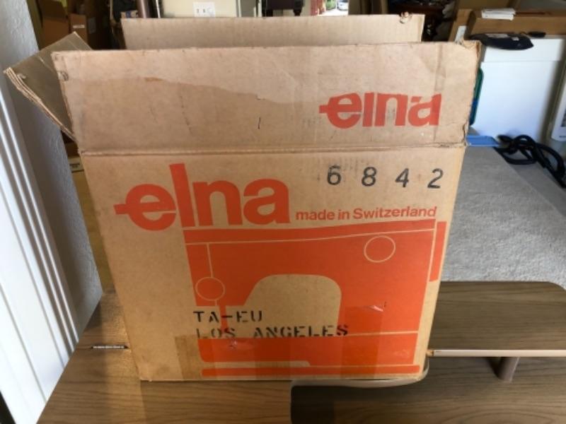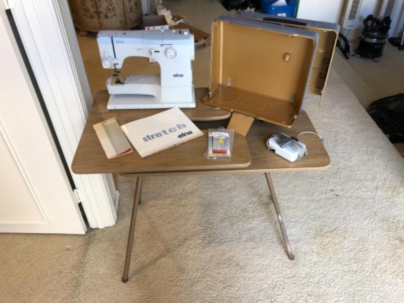 Lot 40. Elna sewing machine in original box with foot pedal and folding table--WAS $125““NOW $93.75