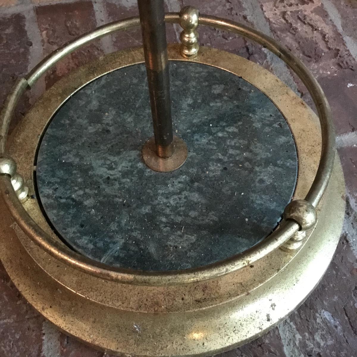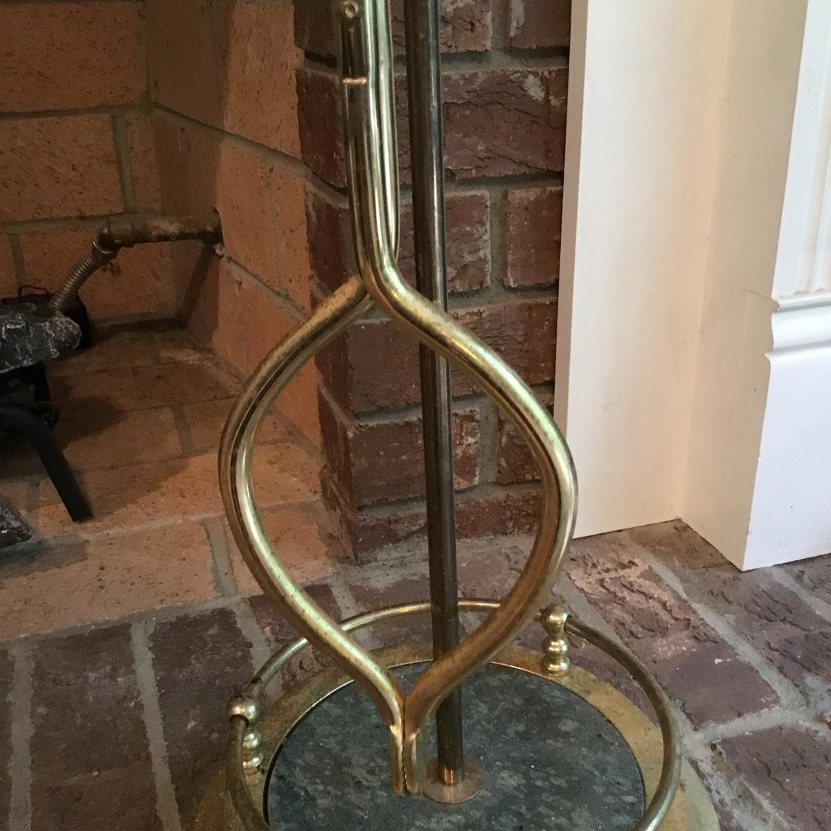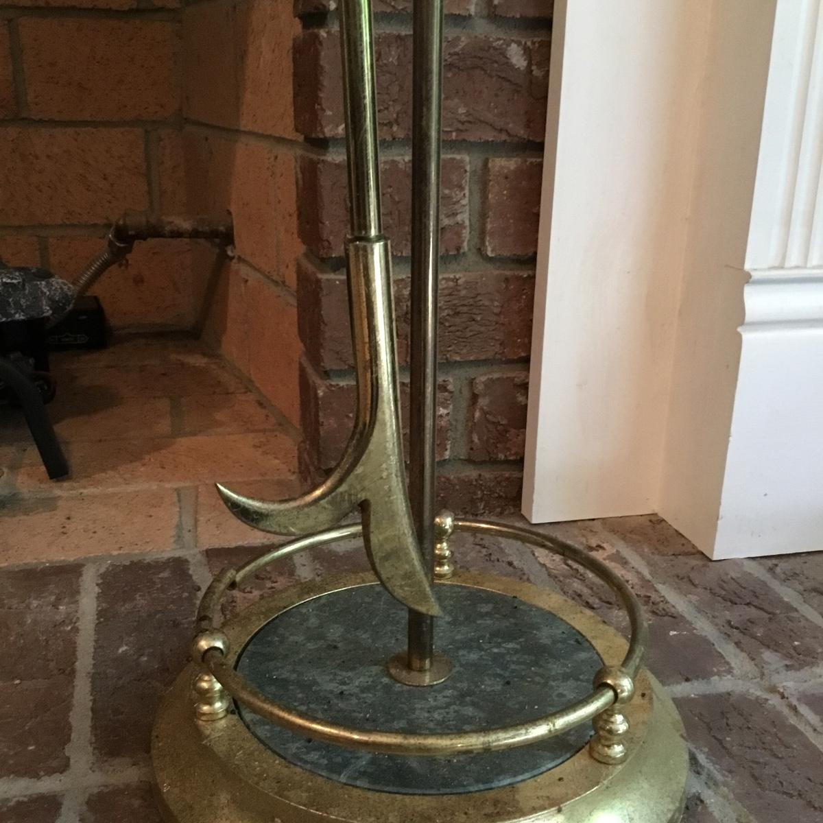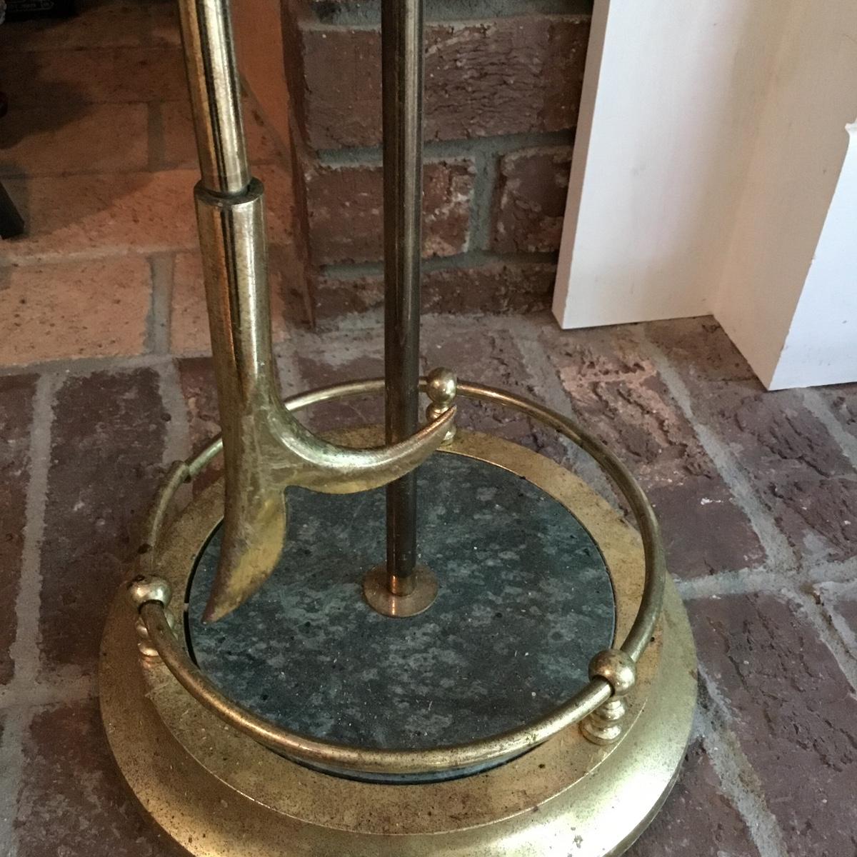 Lot includes a fireplace screen that can fold out to be 52” long and stands 32” tall. Fireplace screen is a trifold and can adjust to your fireplace! Lot also includes a nice set of fireplace tools that are a brass color with green marble like handles. Four different tools are all hanging on a small stand together. See photos for details. Fireplace tool stand measures 33” tall.