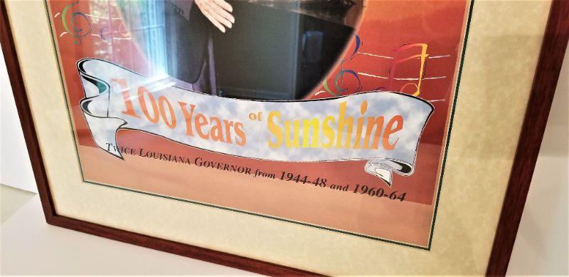 Jimmy Davis, known as the "Singing Governor" for his rendition of "You are my Sunshine", lived to be 100 years old. Hard to find commemorative (done in 1999) of the man who served as Louisiana governor twice - the last time from 1960 - 1964. Measures 22.75" x 28".
